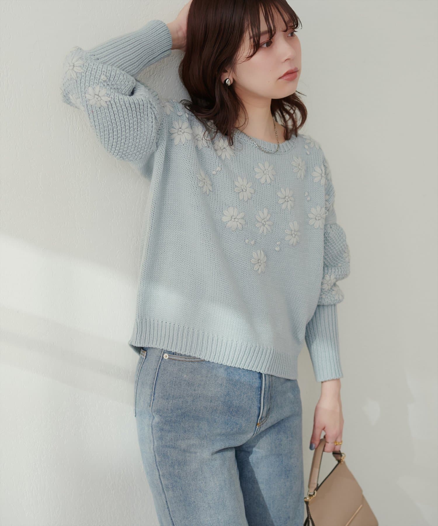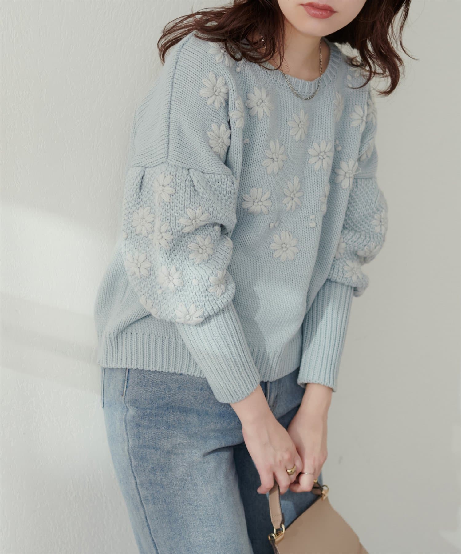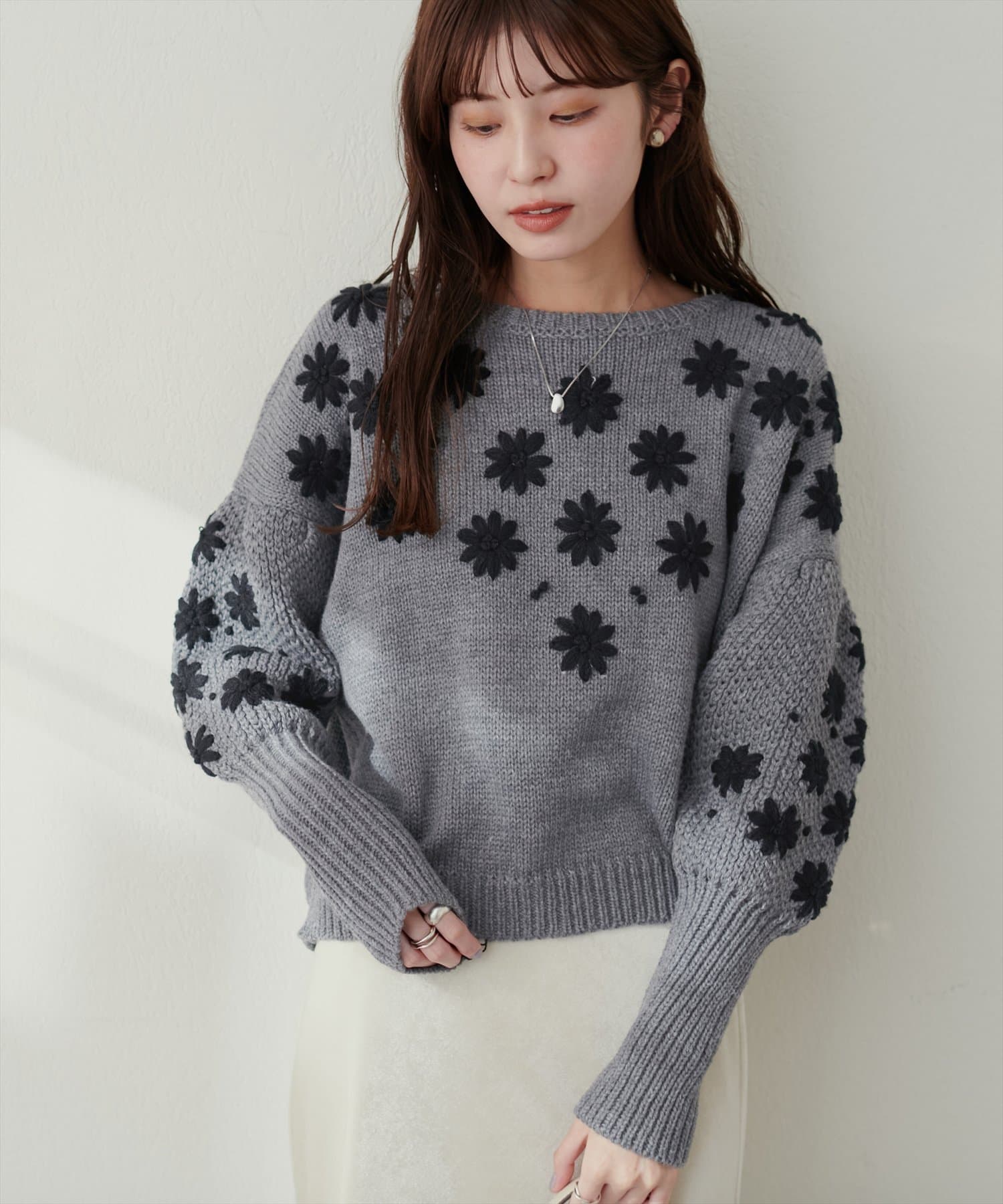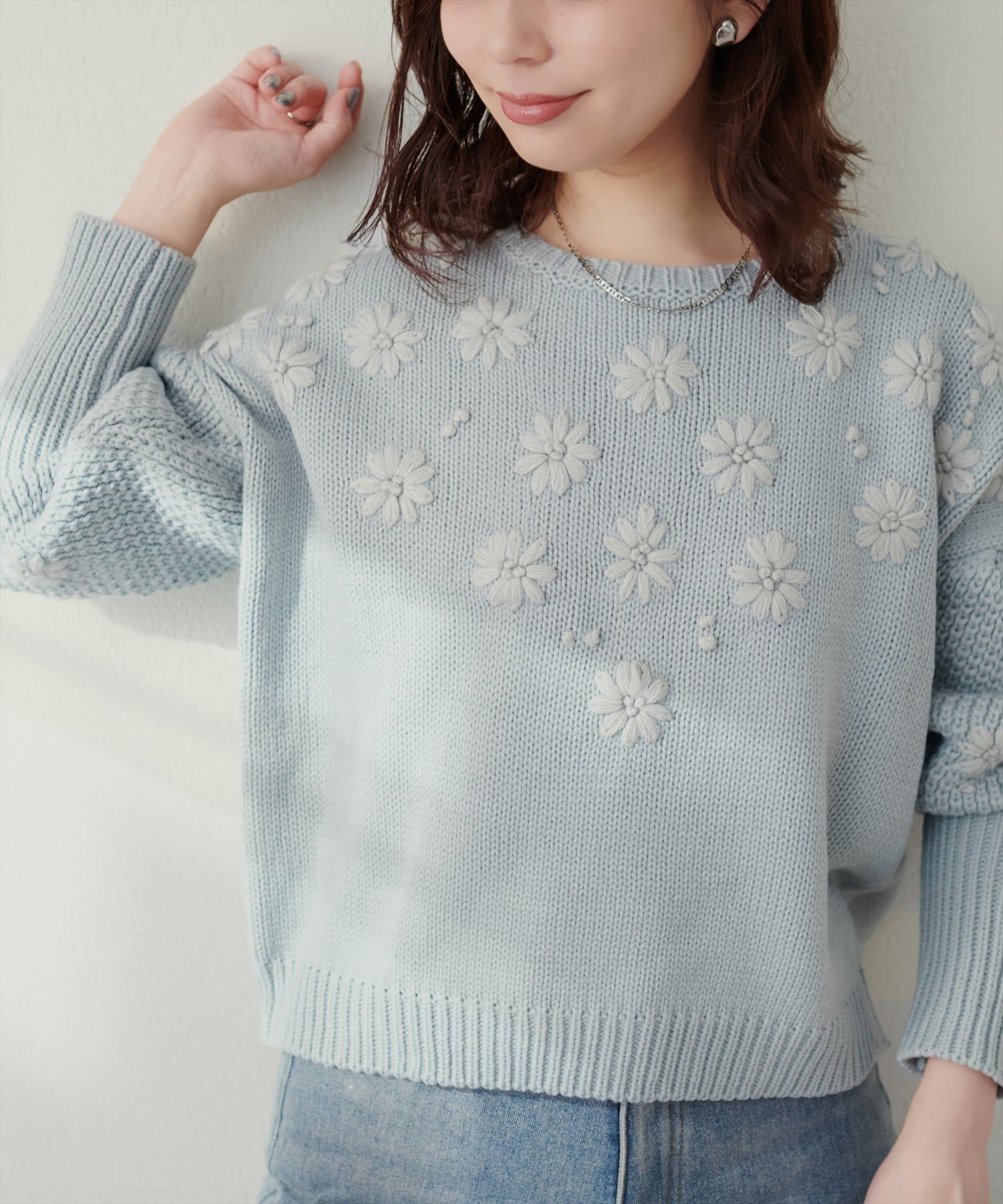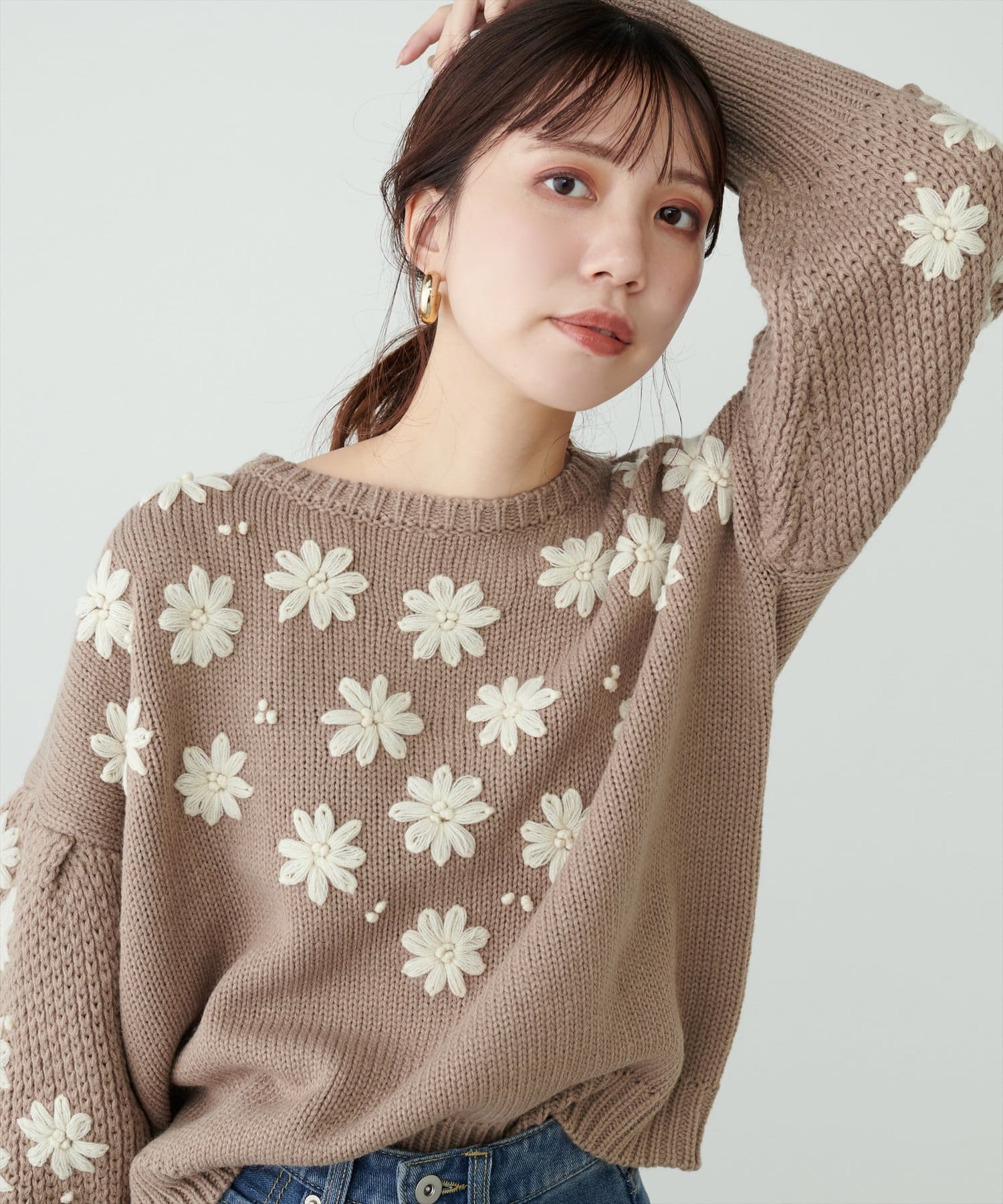 【お気に入り総選挙5位!】【WEB限定】お花刺繍ニット