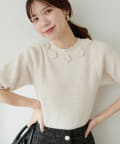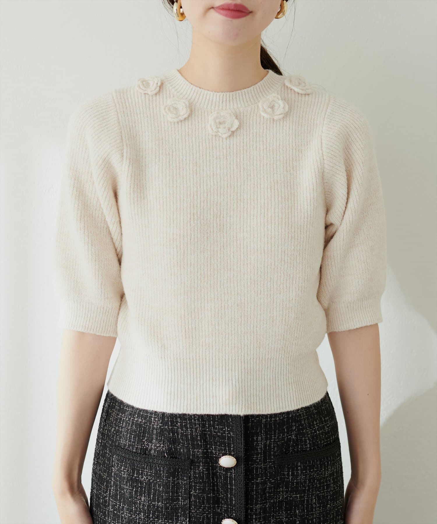 お花モチーフ半袖ニット