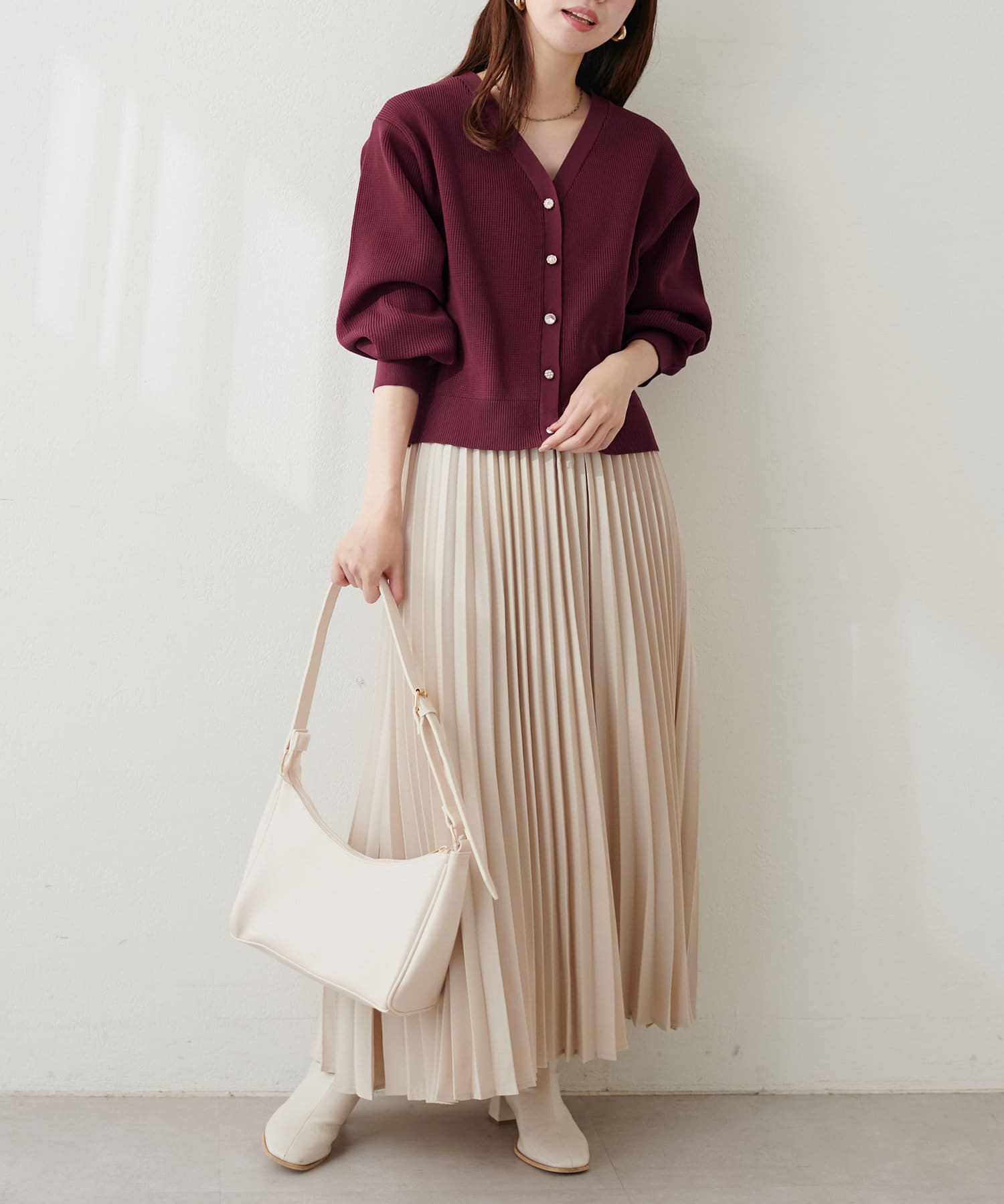 マーメイドスカートやフレアスカートと合わせても甘くなり過ぎず、デニムでカジュアルダウンしても品良くきまります。