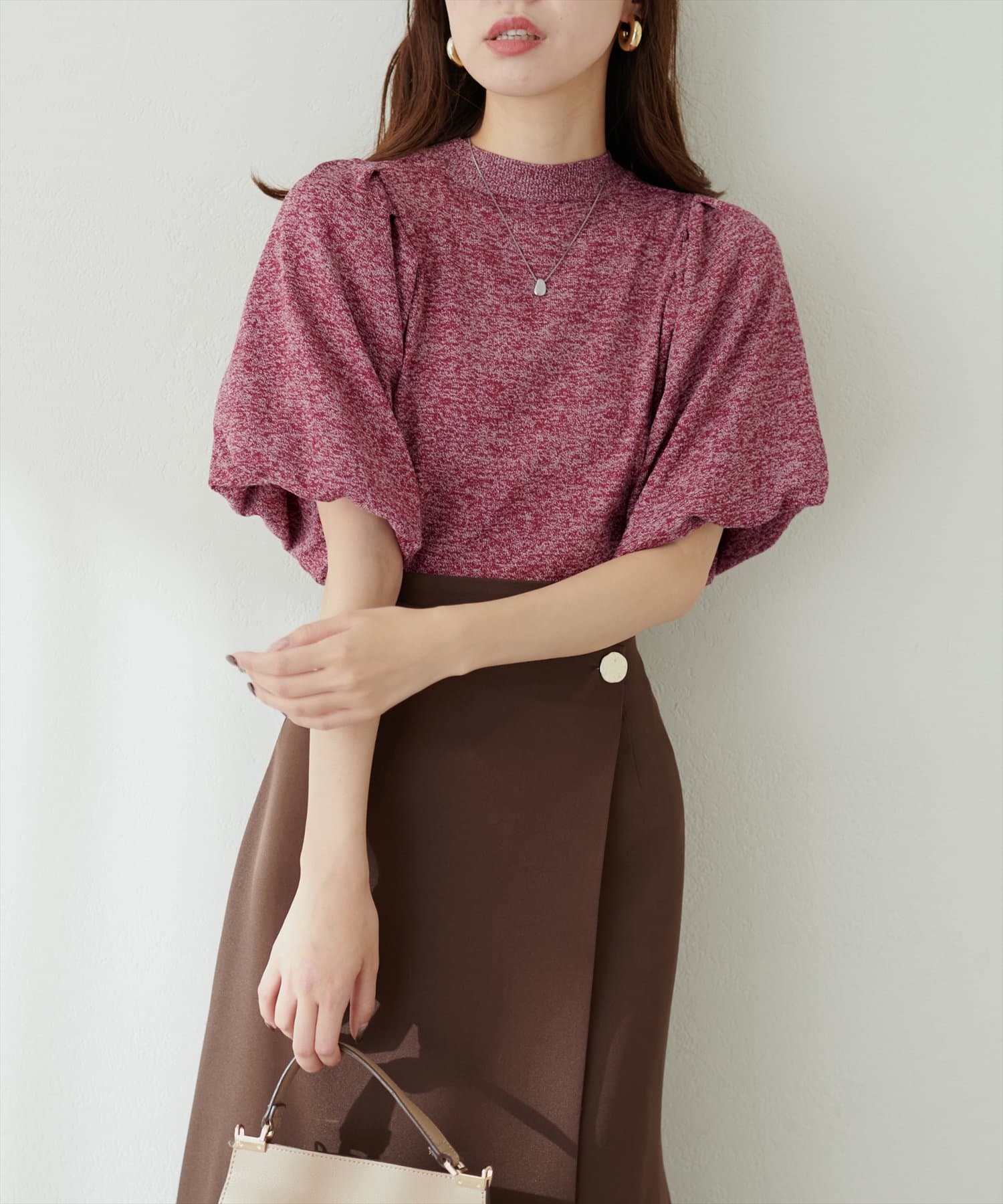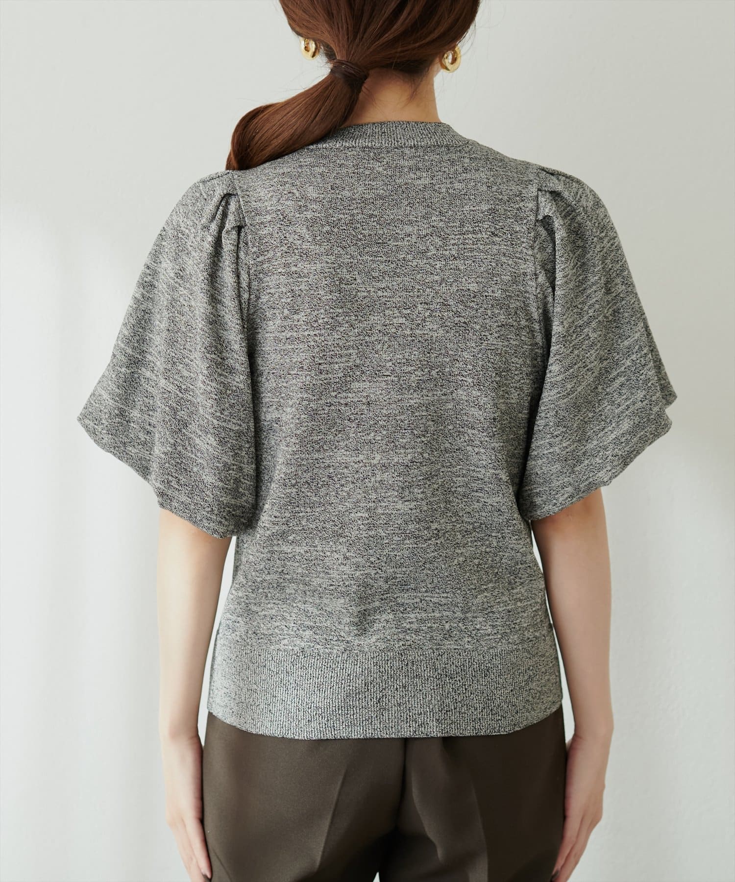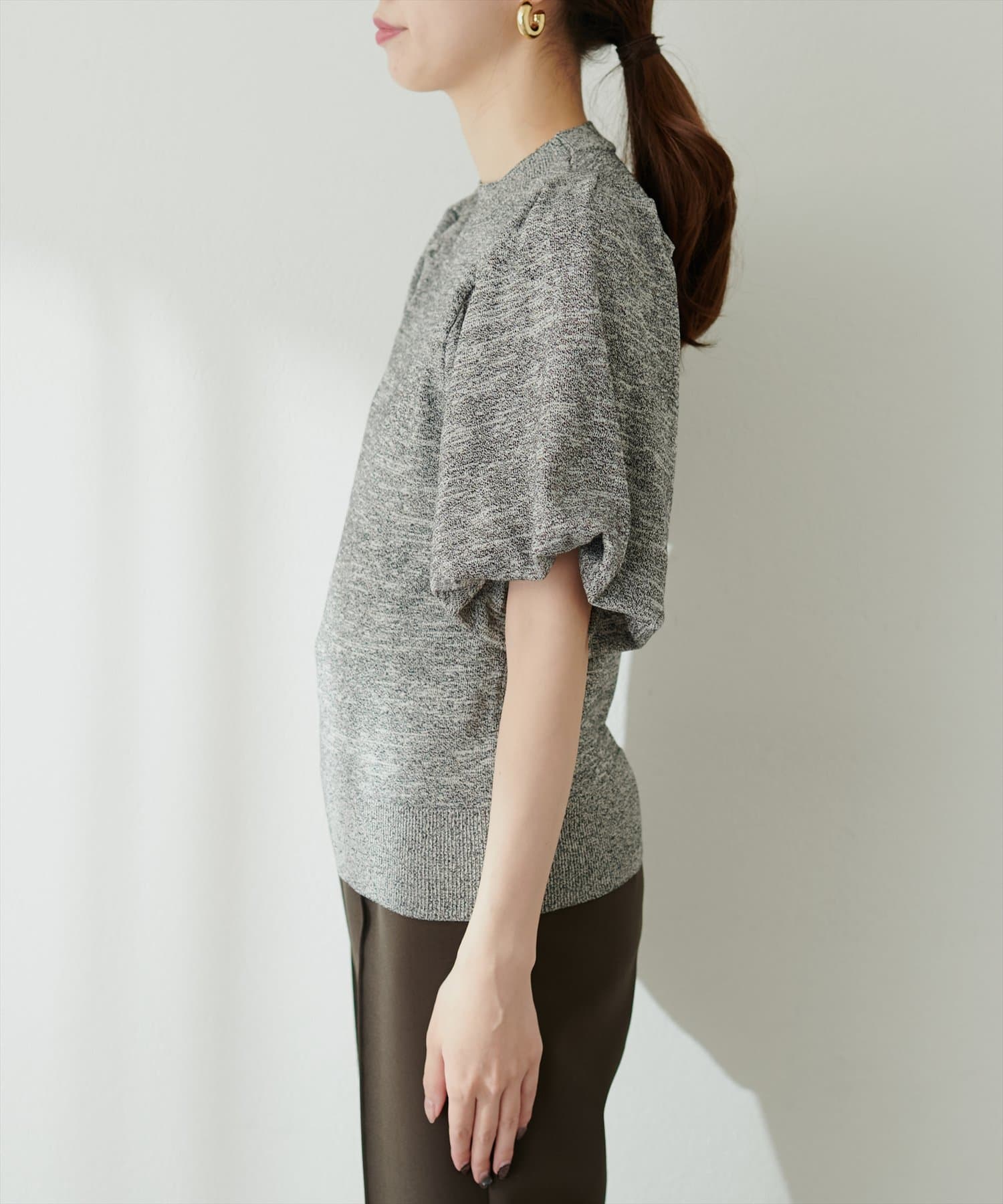 バルーンスリーブメランジニット