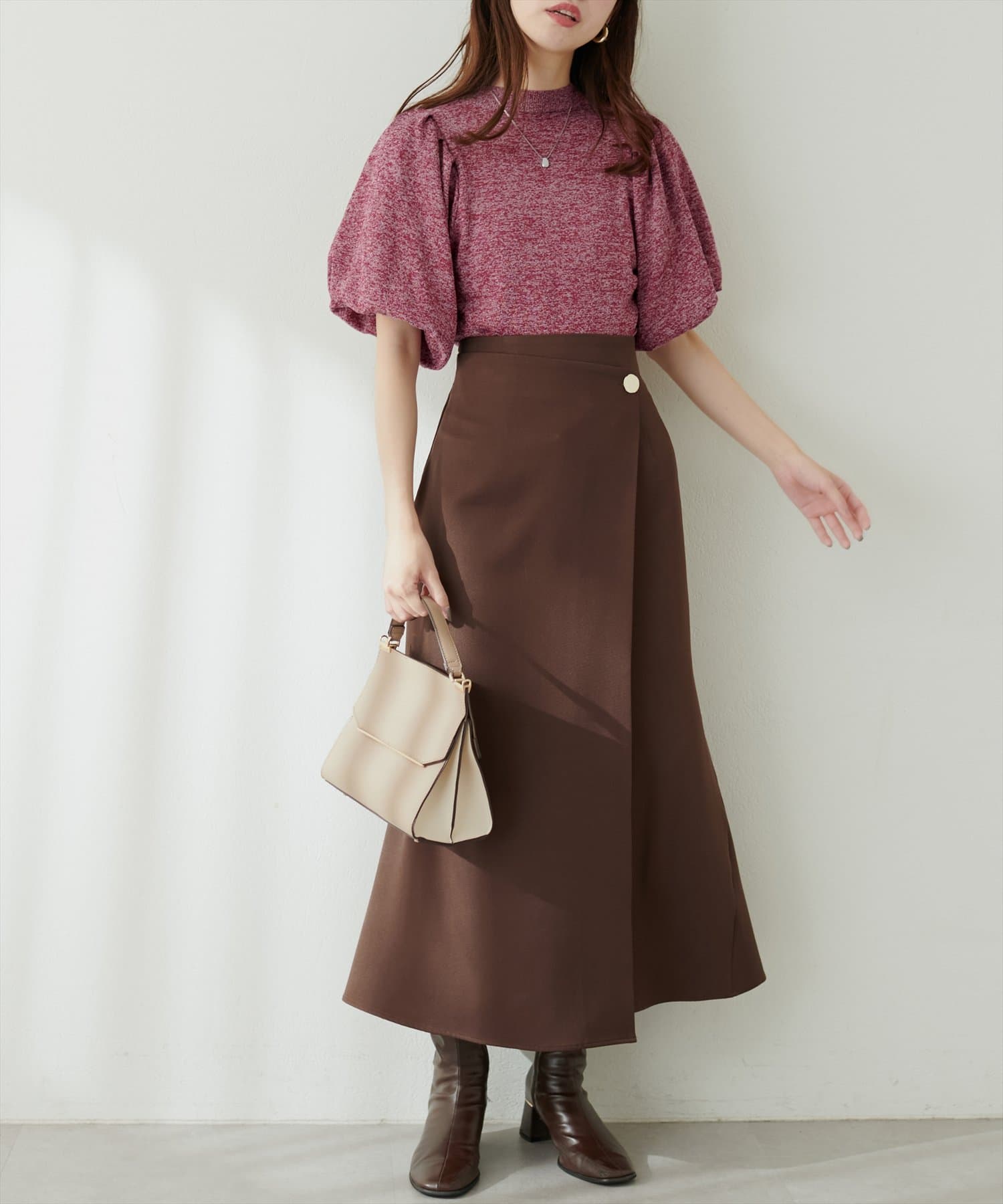 ボリューム感のあるボトムと合わせるとスタイリング映え間違いなし。