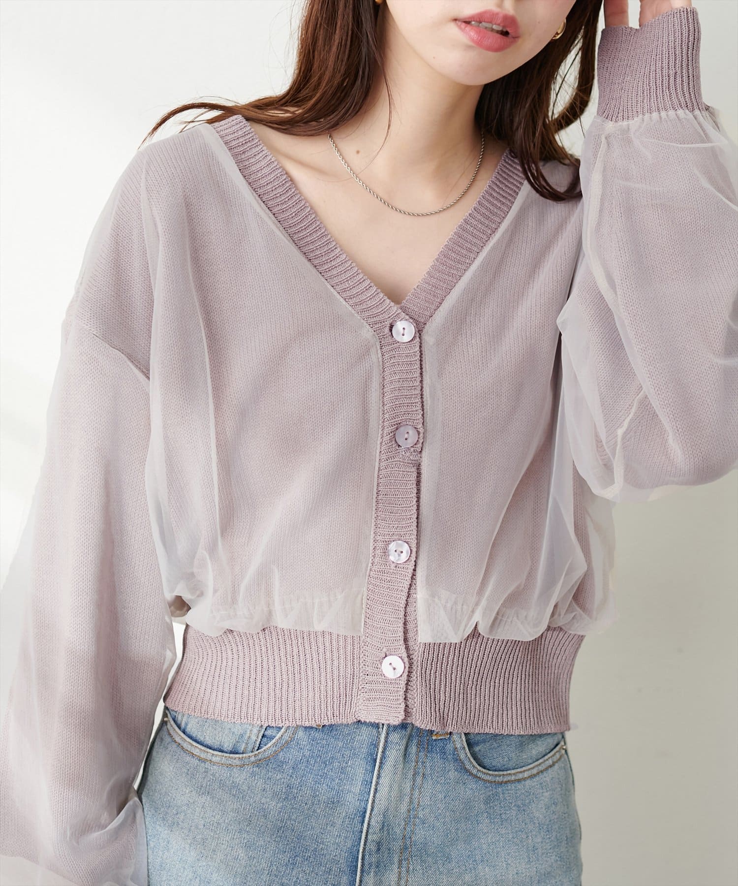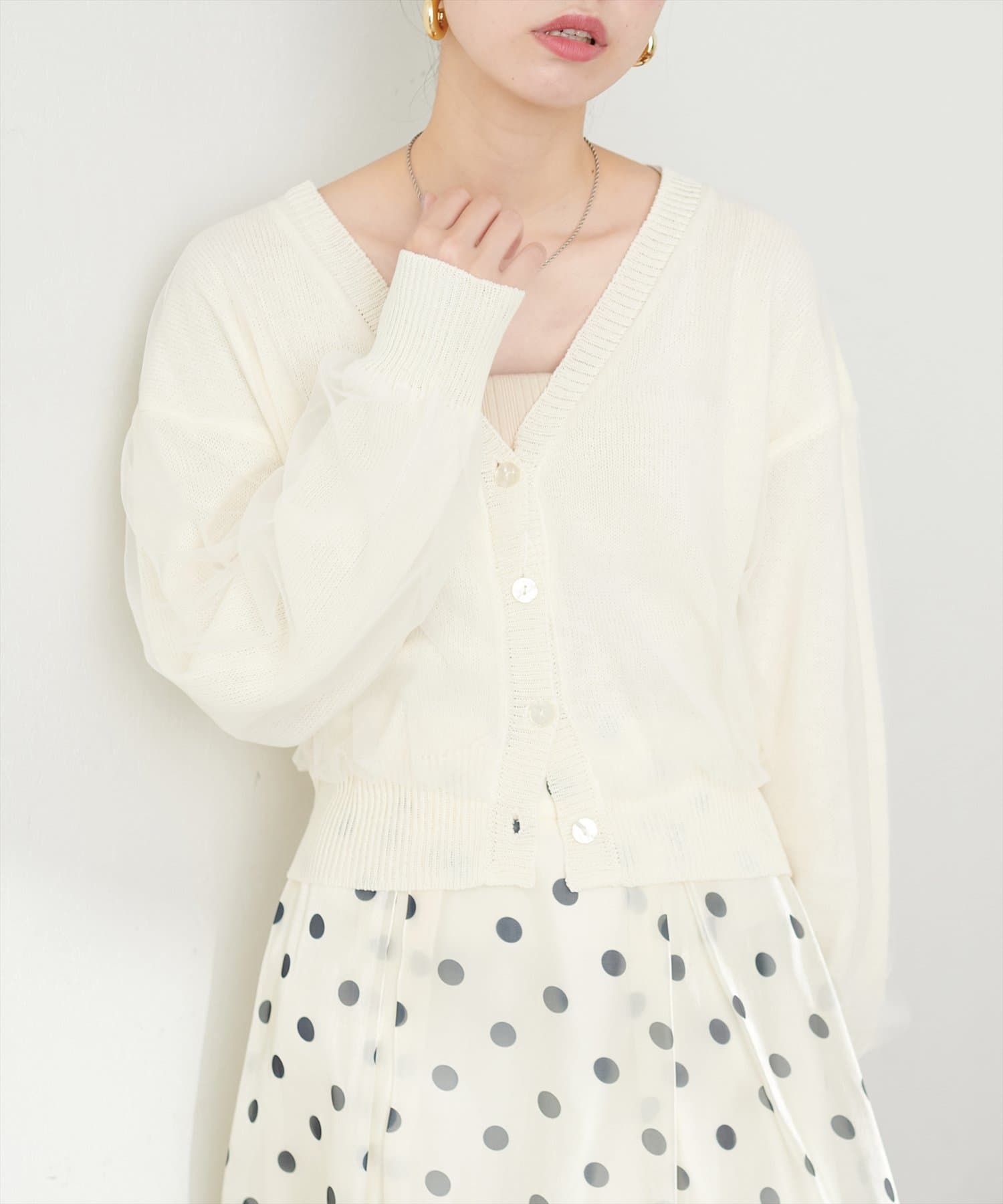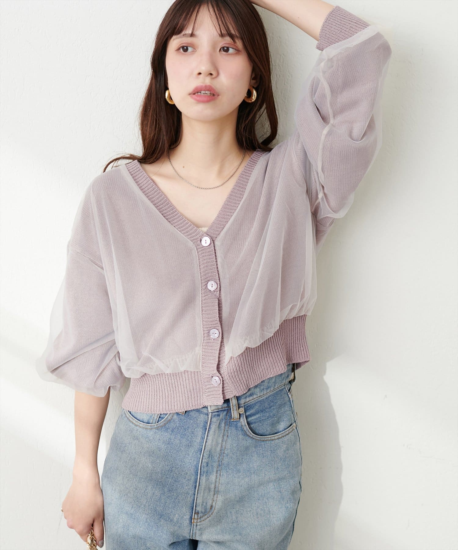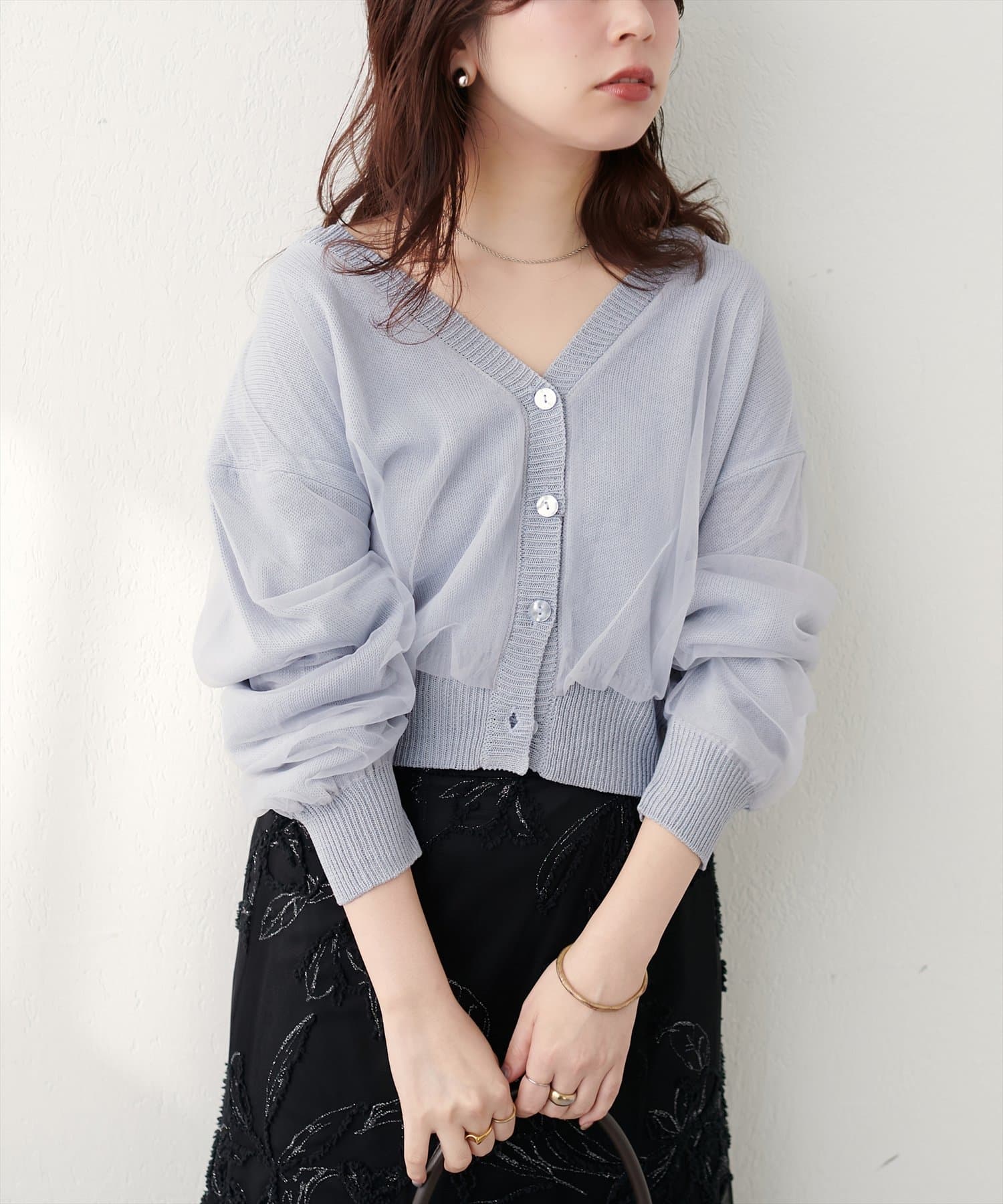 ふんわりチュール重ねカーデ