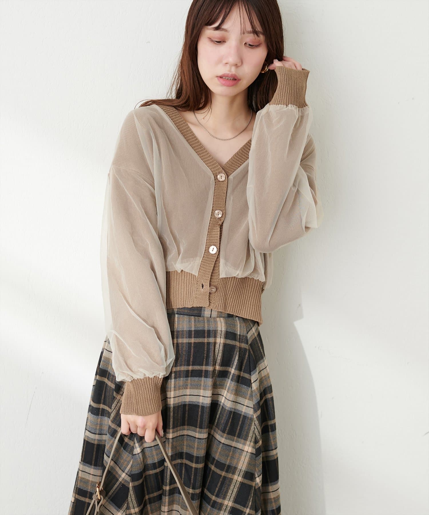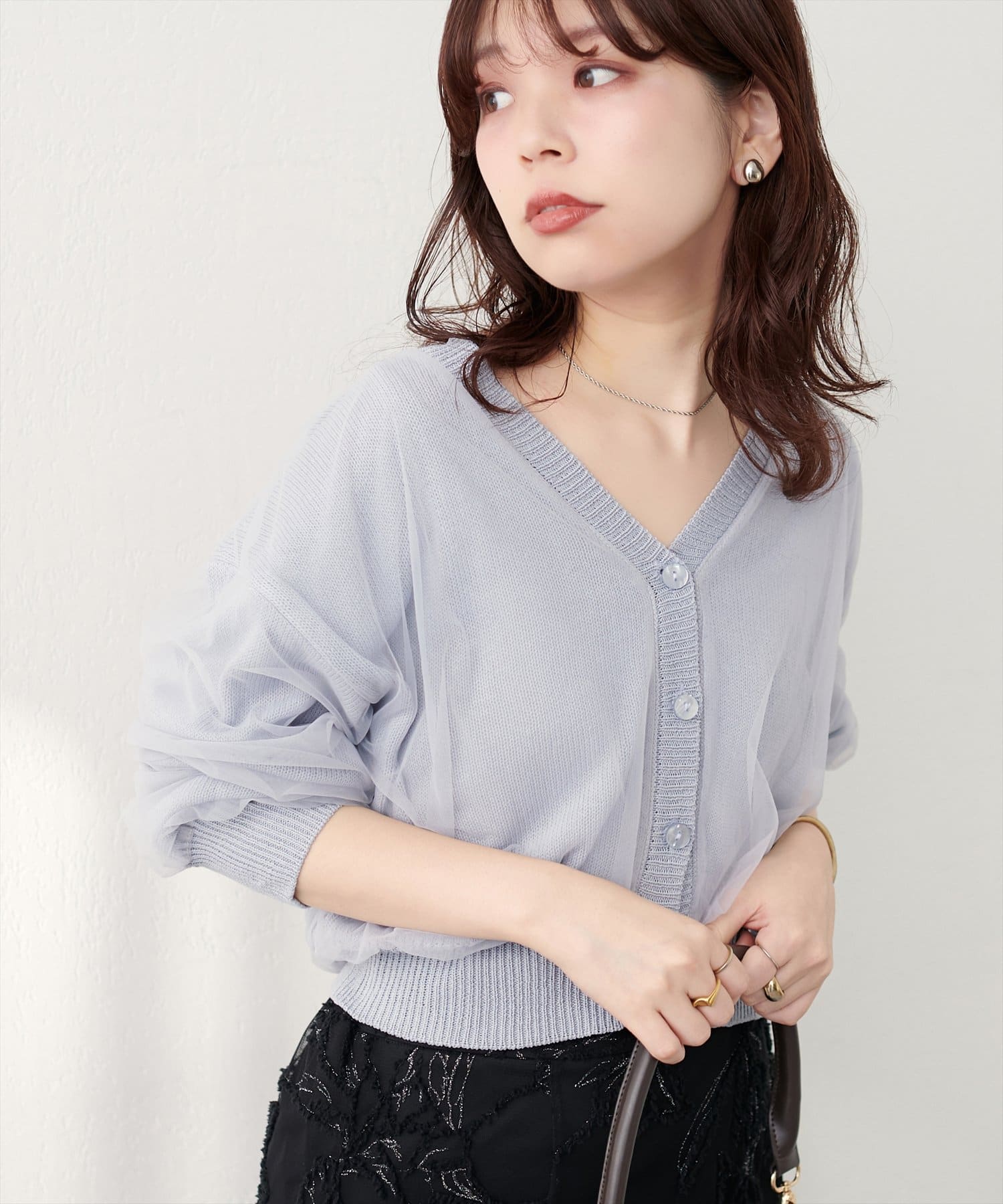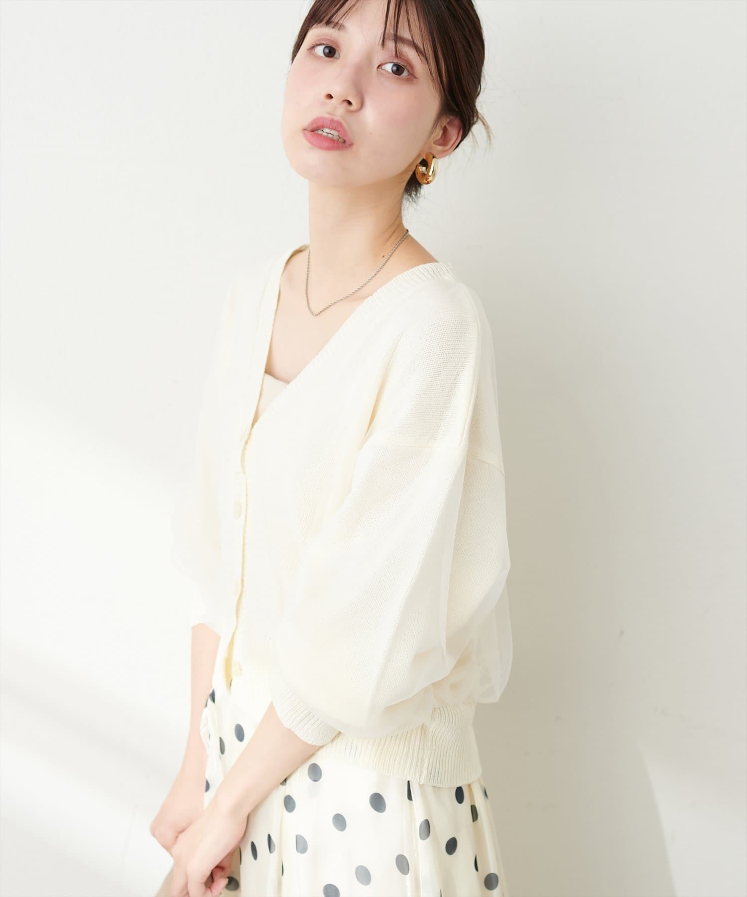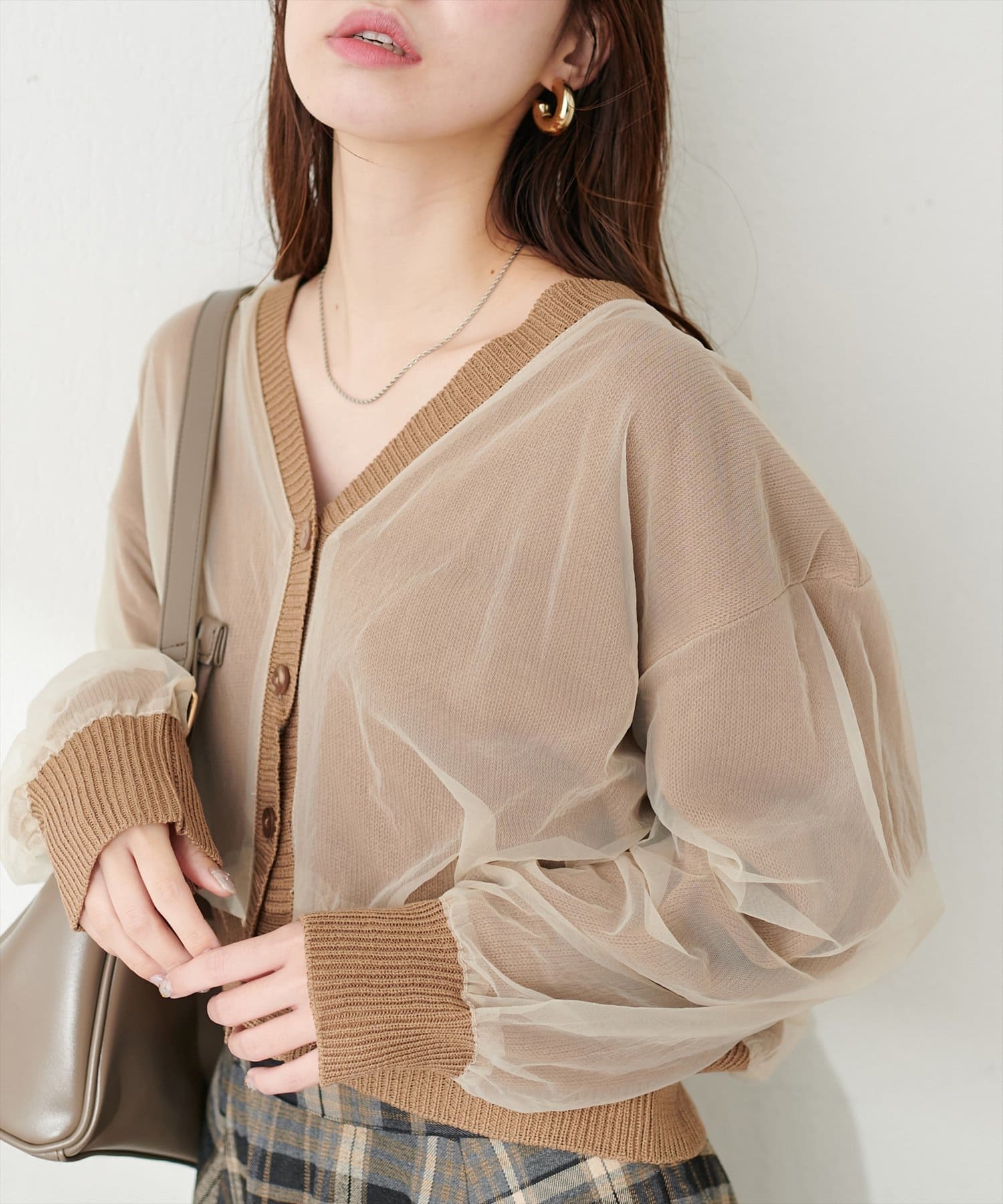 ふんわりチュール重ねカーデ