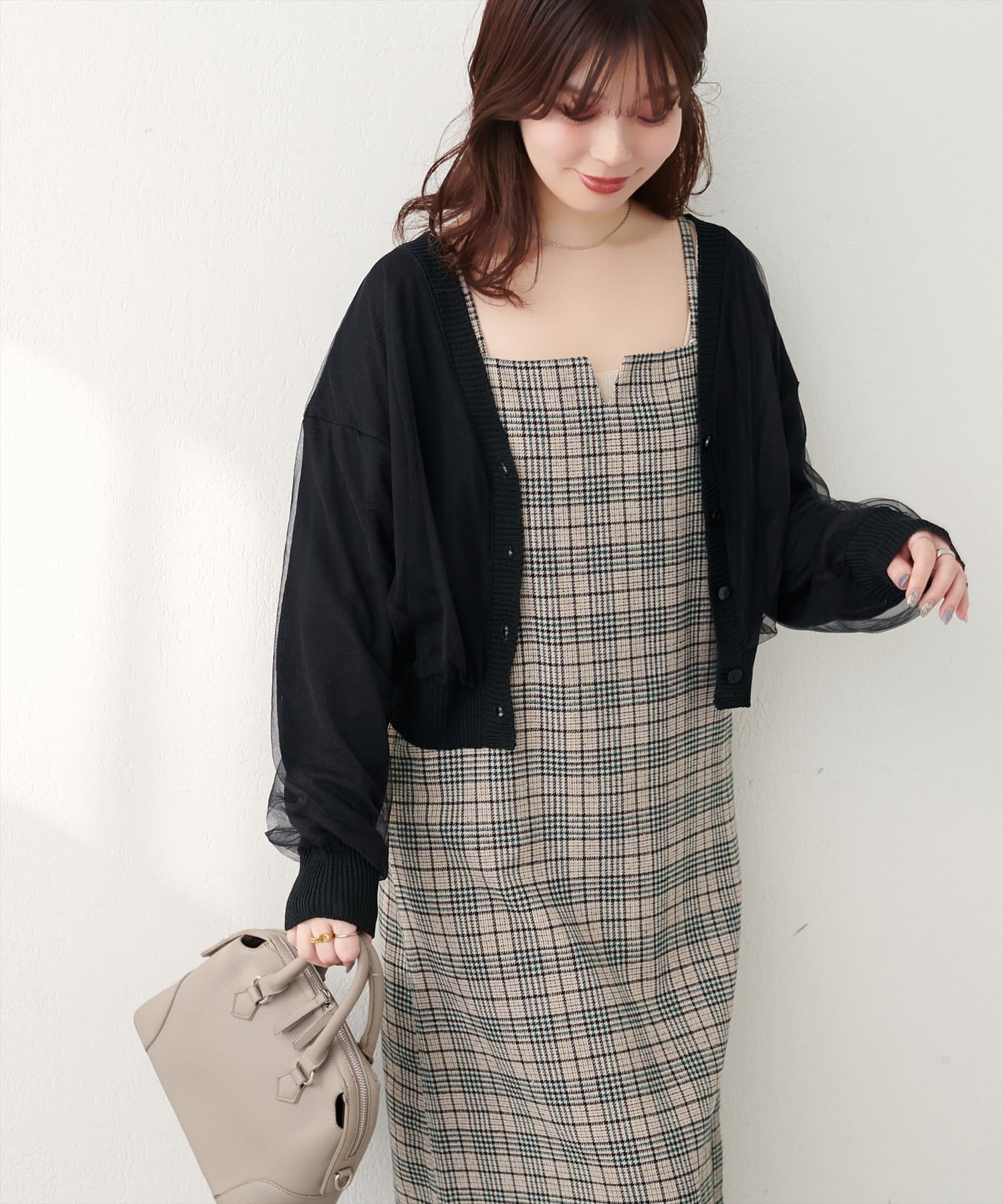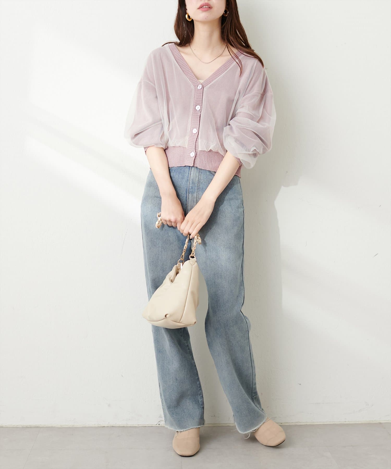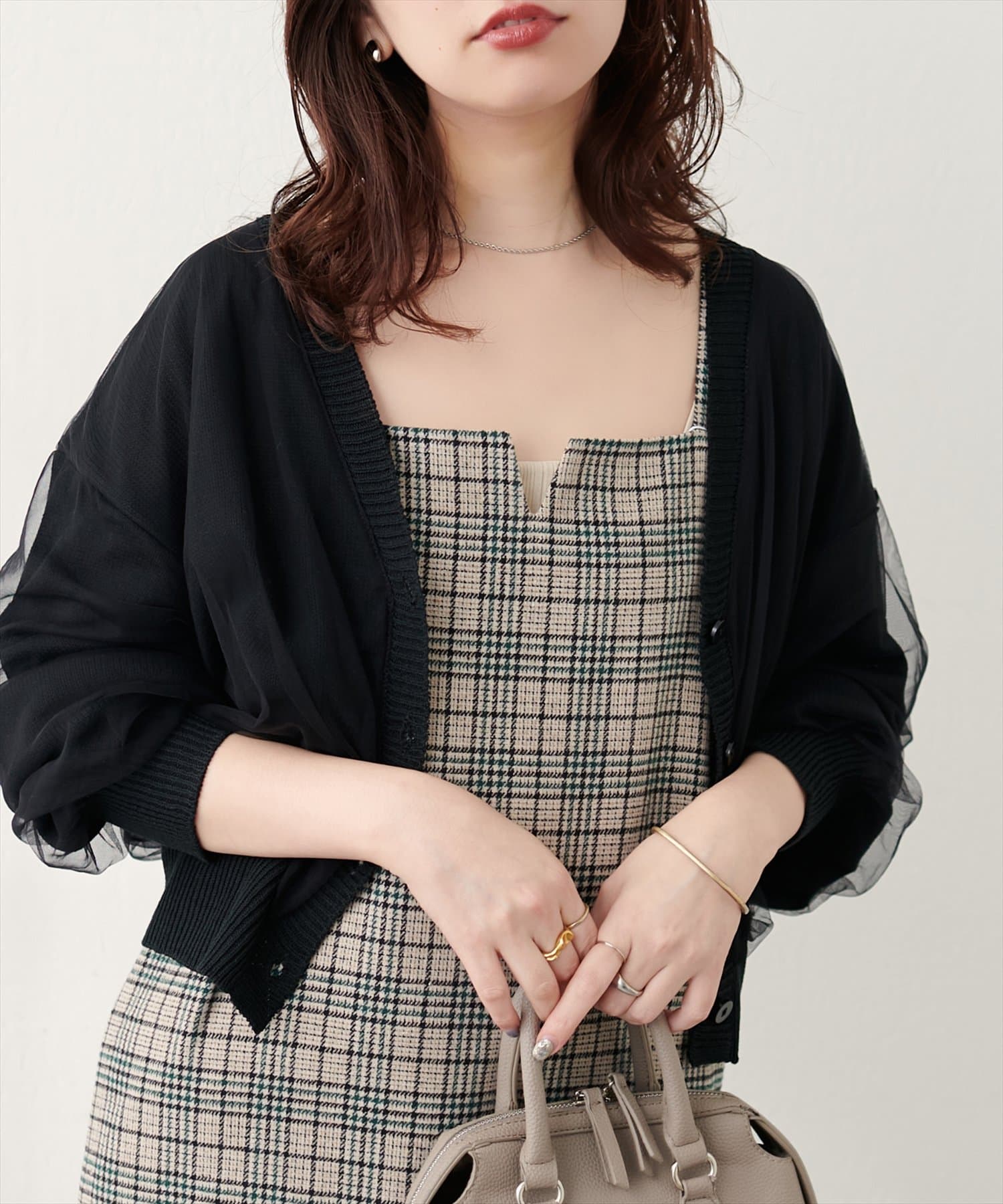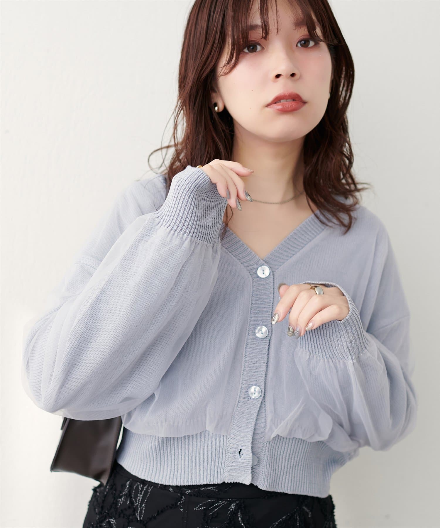ふんわりチュール重ねカーデ