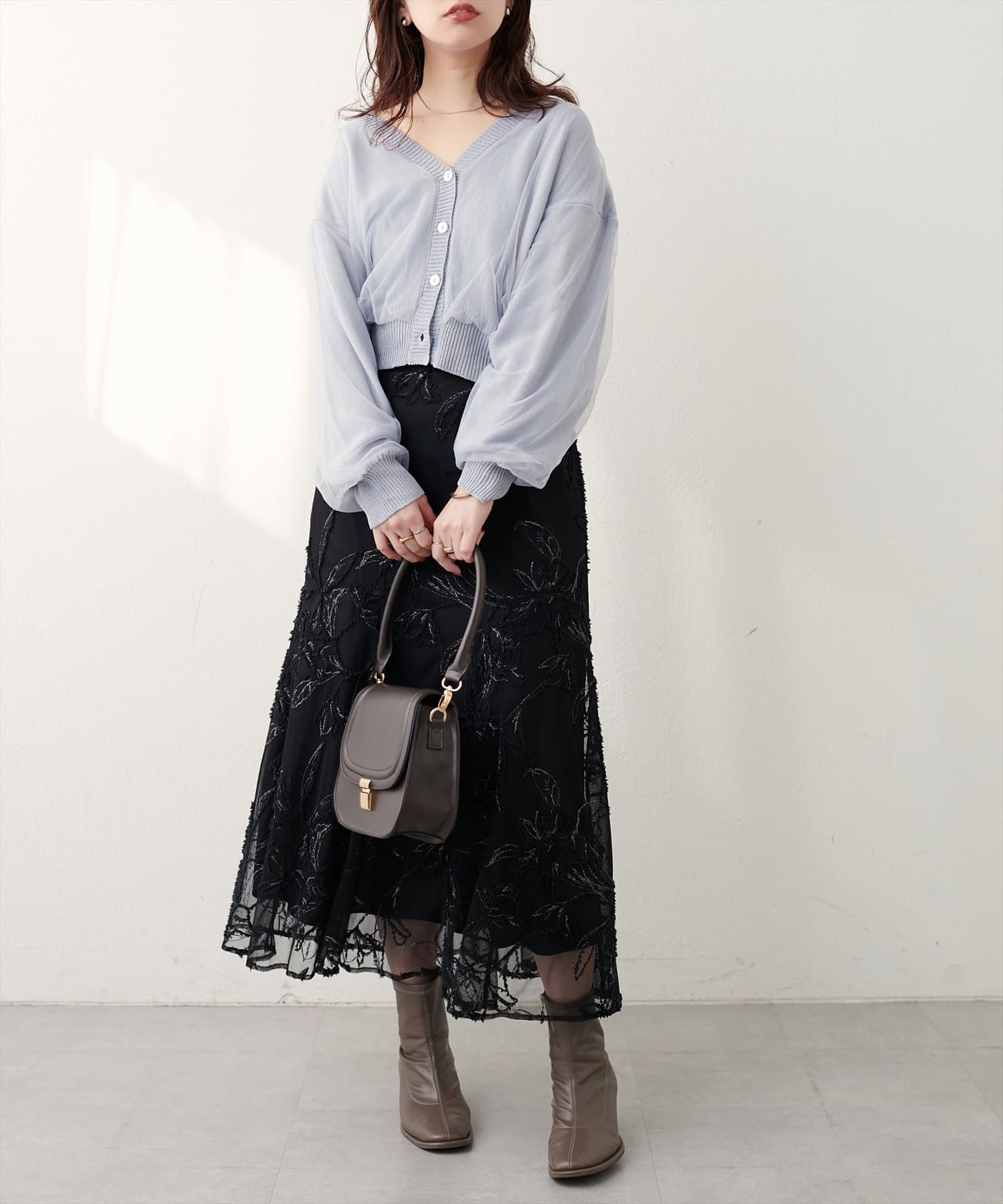 フレアスカートなどのボリュームのあるスカートとも相性が良く、