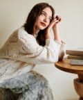 透かしハートで女性らしさを演出するゆるニット。