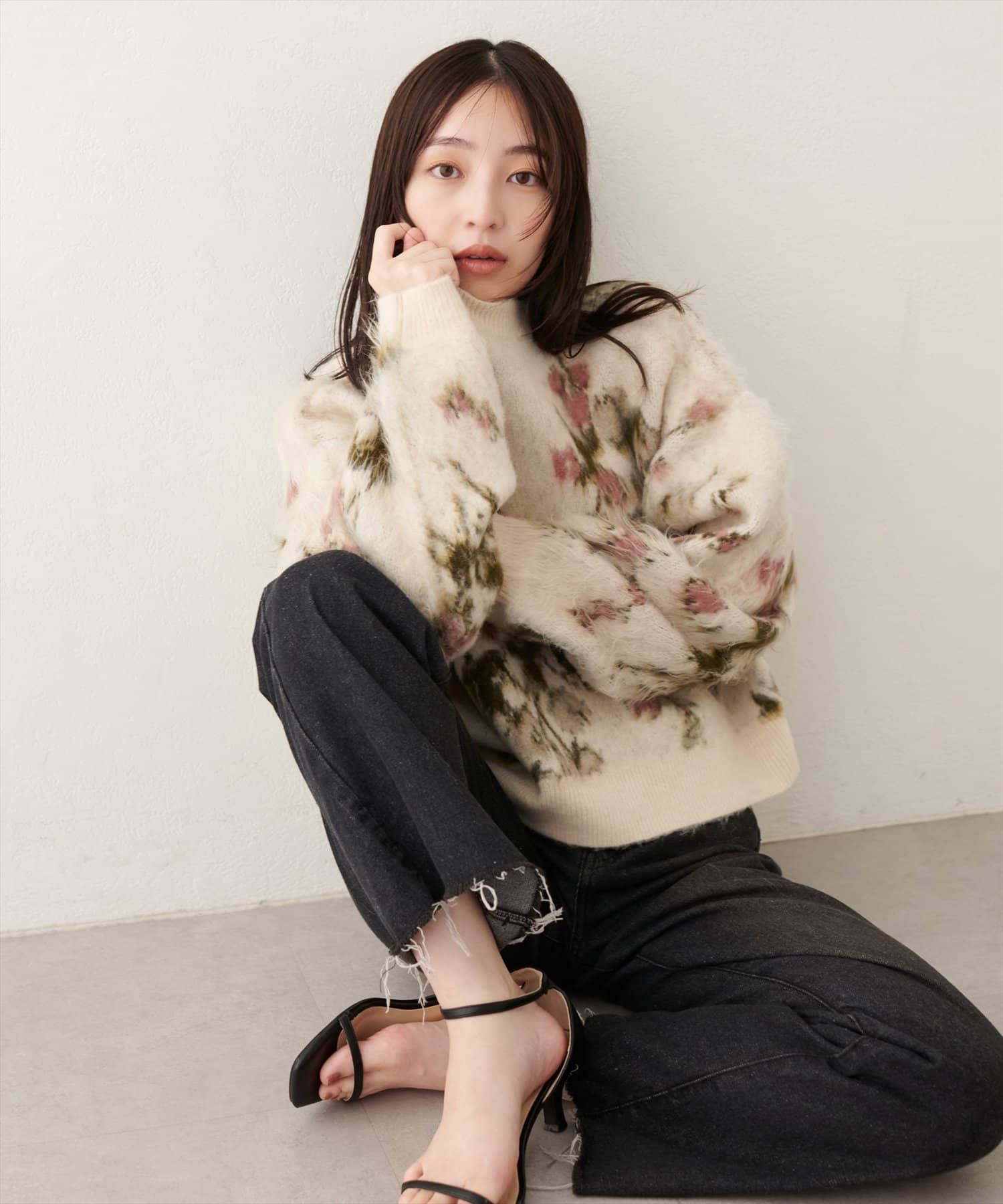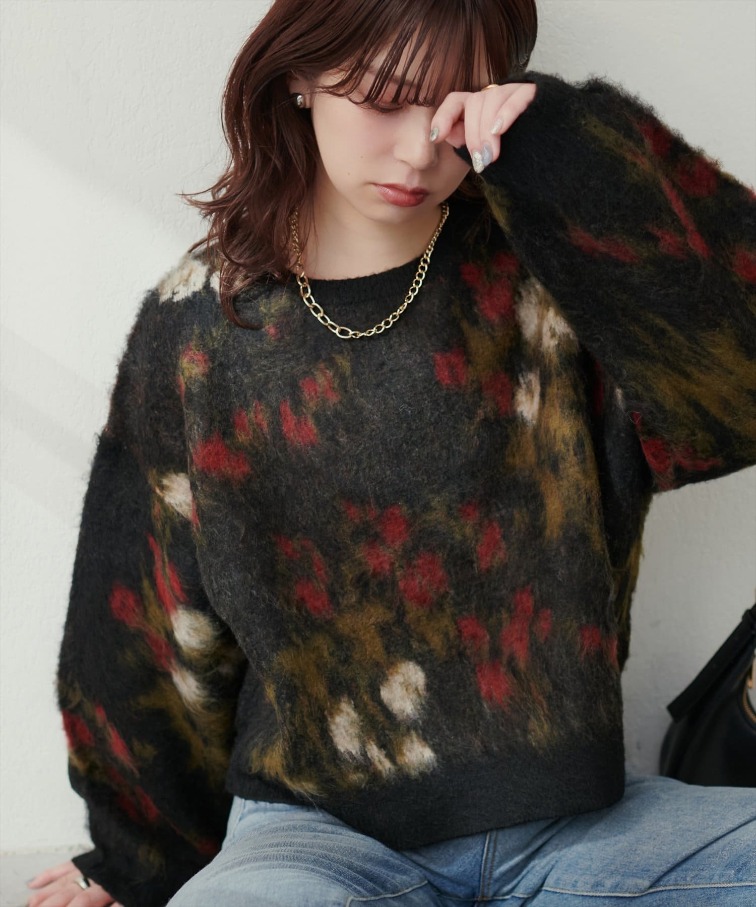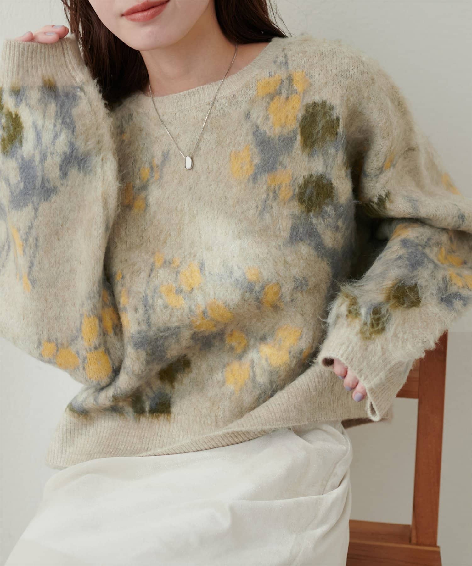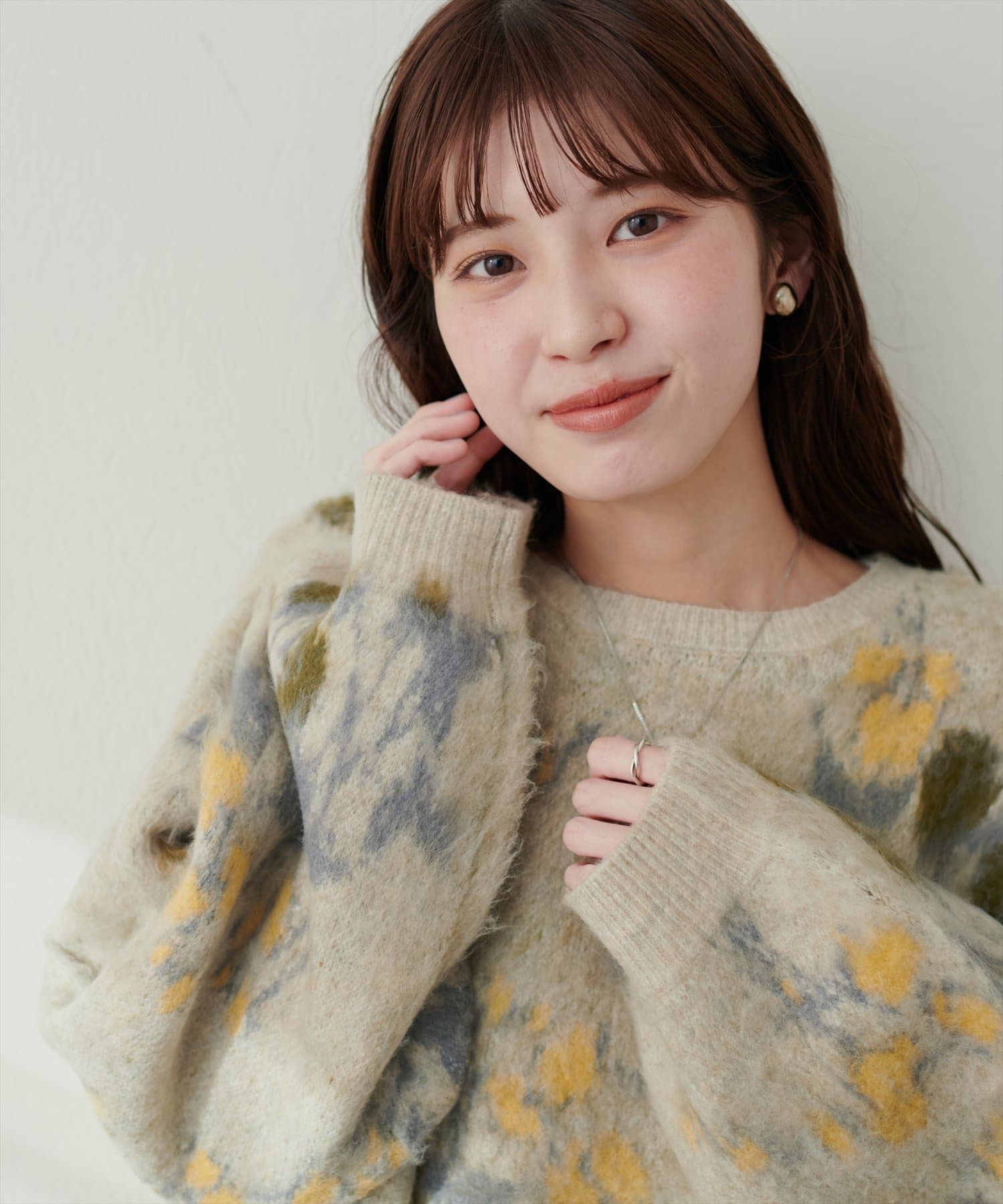 ふわふわとした毛並みが特徴のニットプルオーバー。