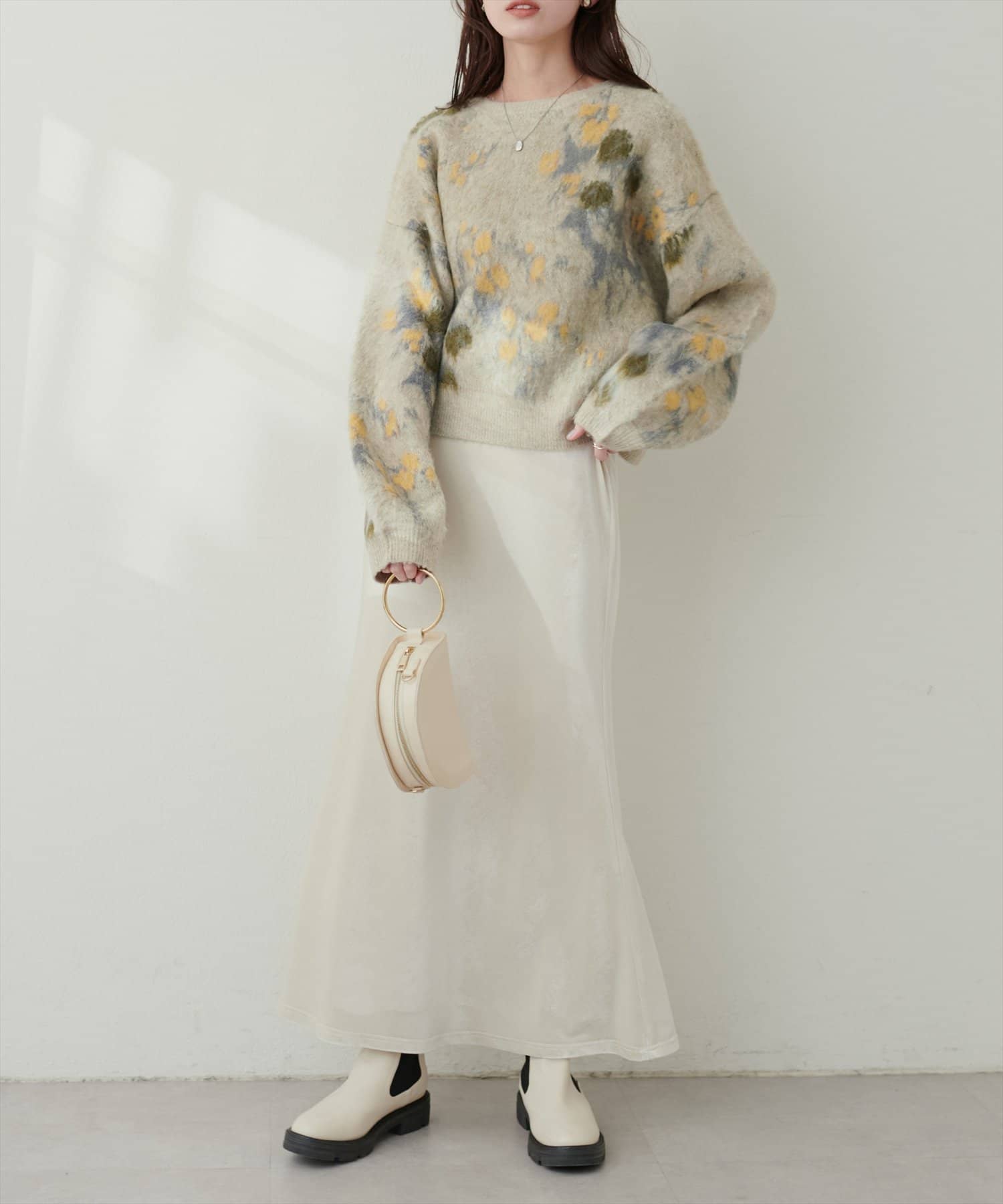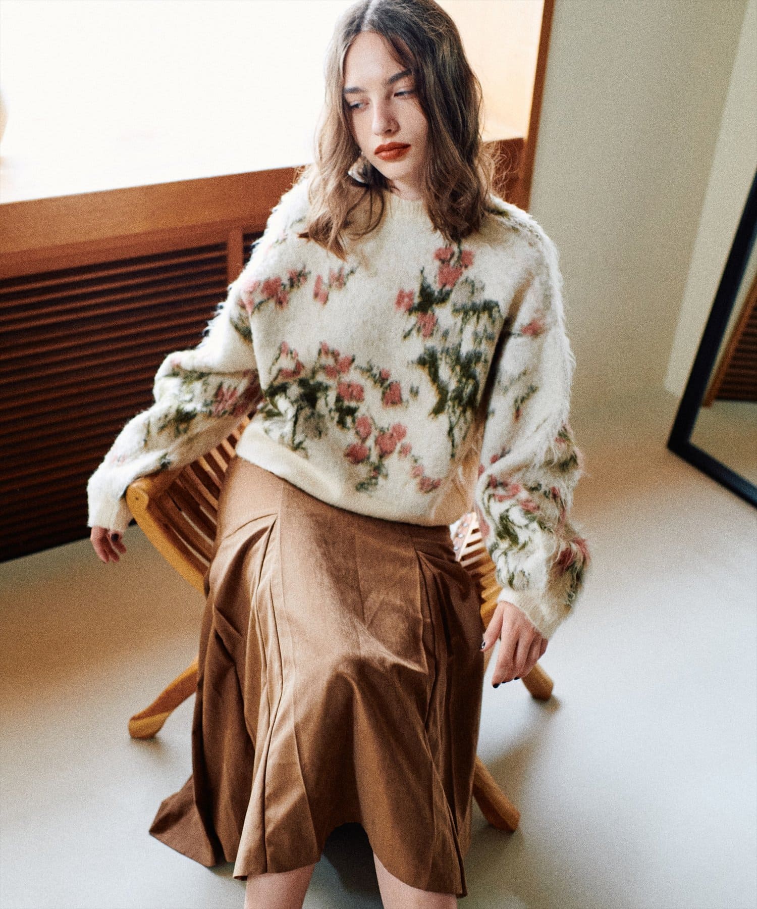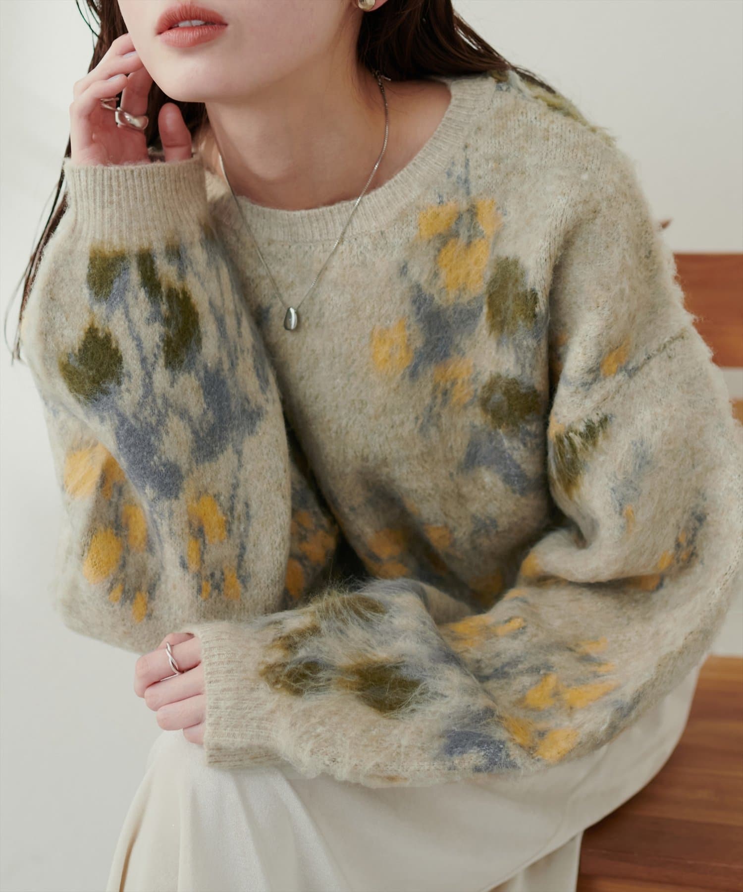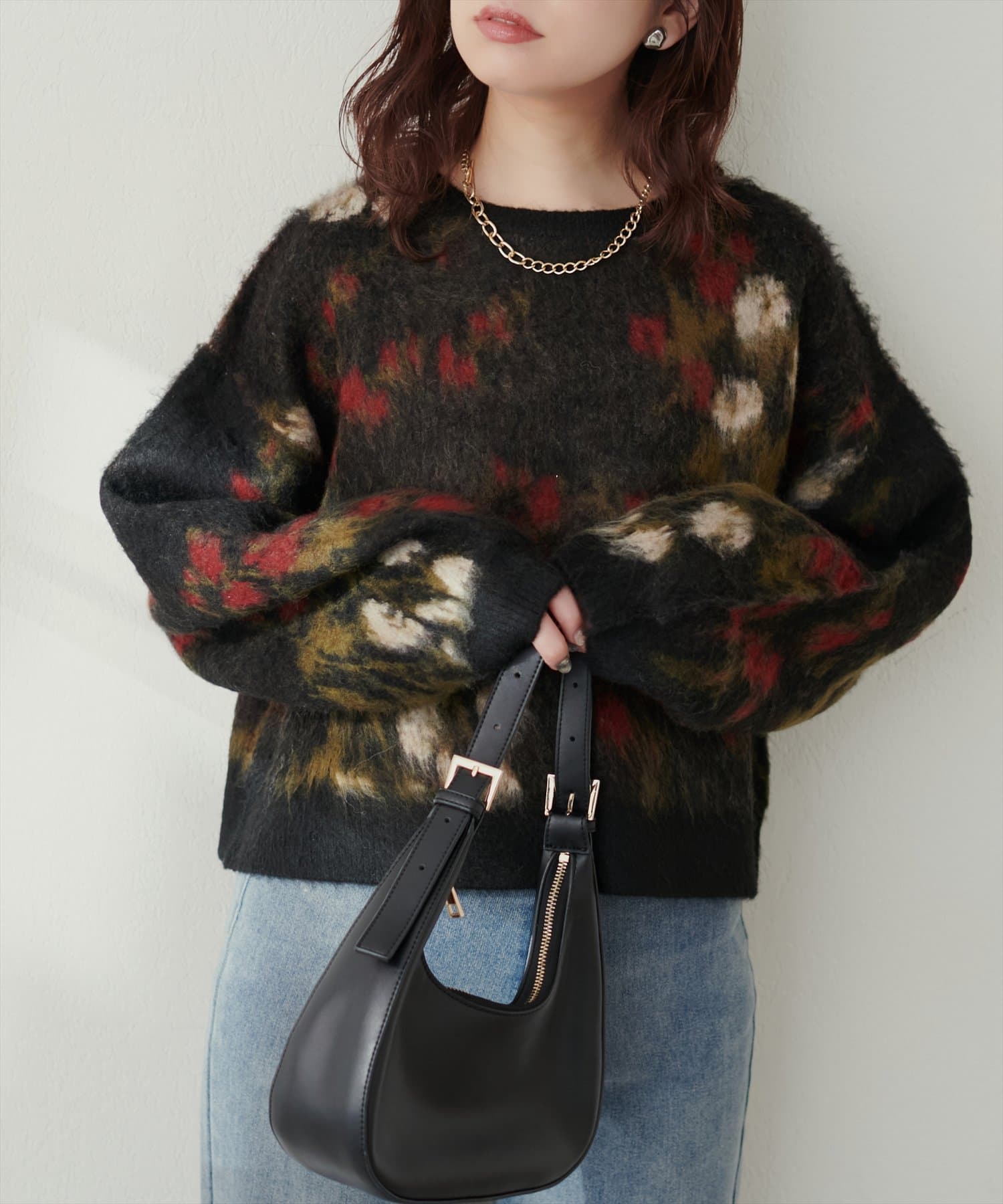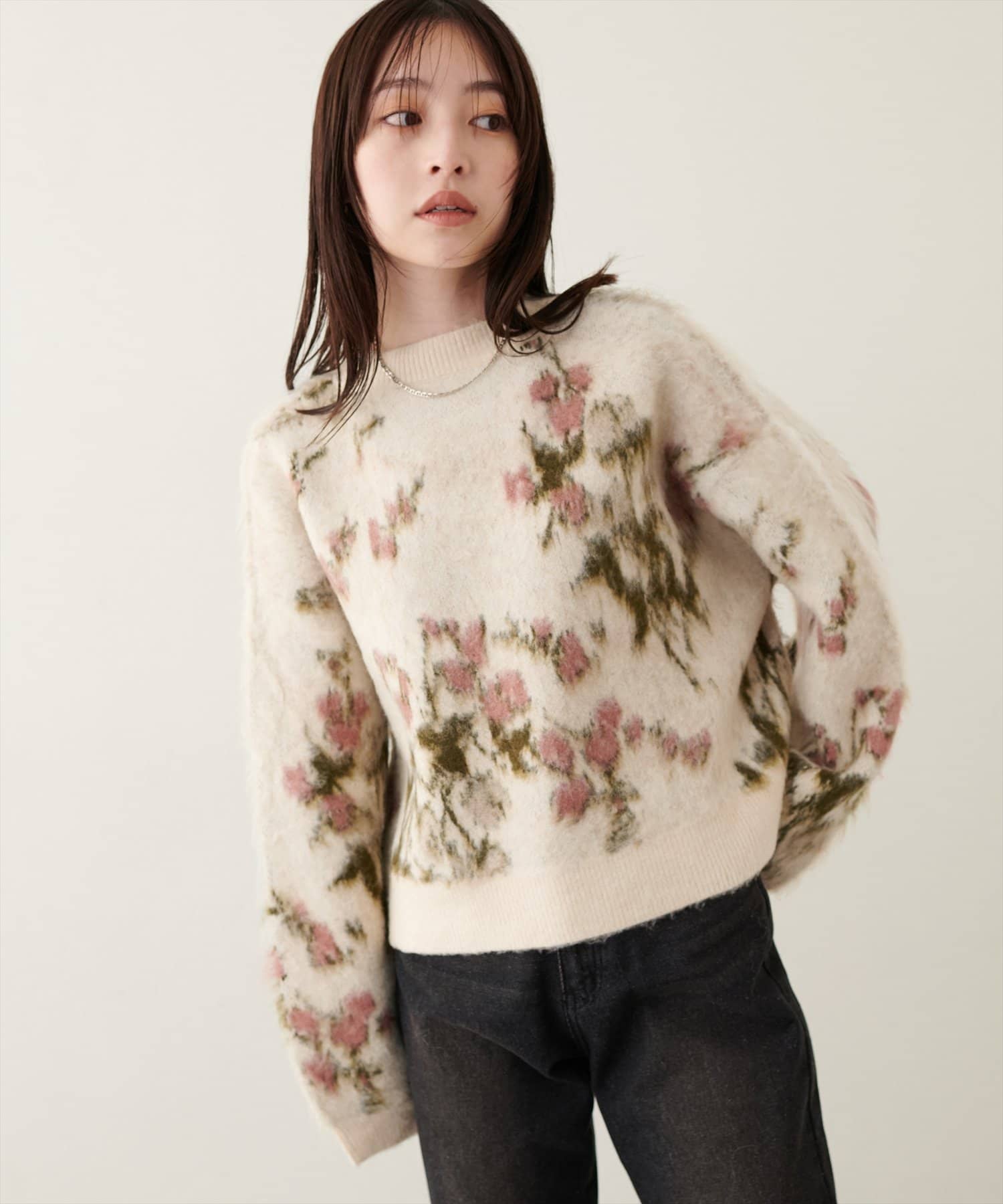ふわふわとした毛並みが特徴のニットプルオーバー。