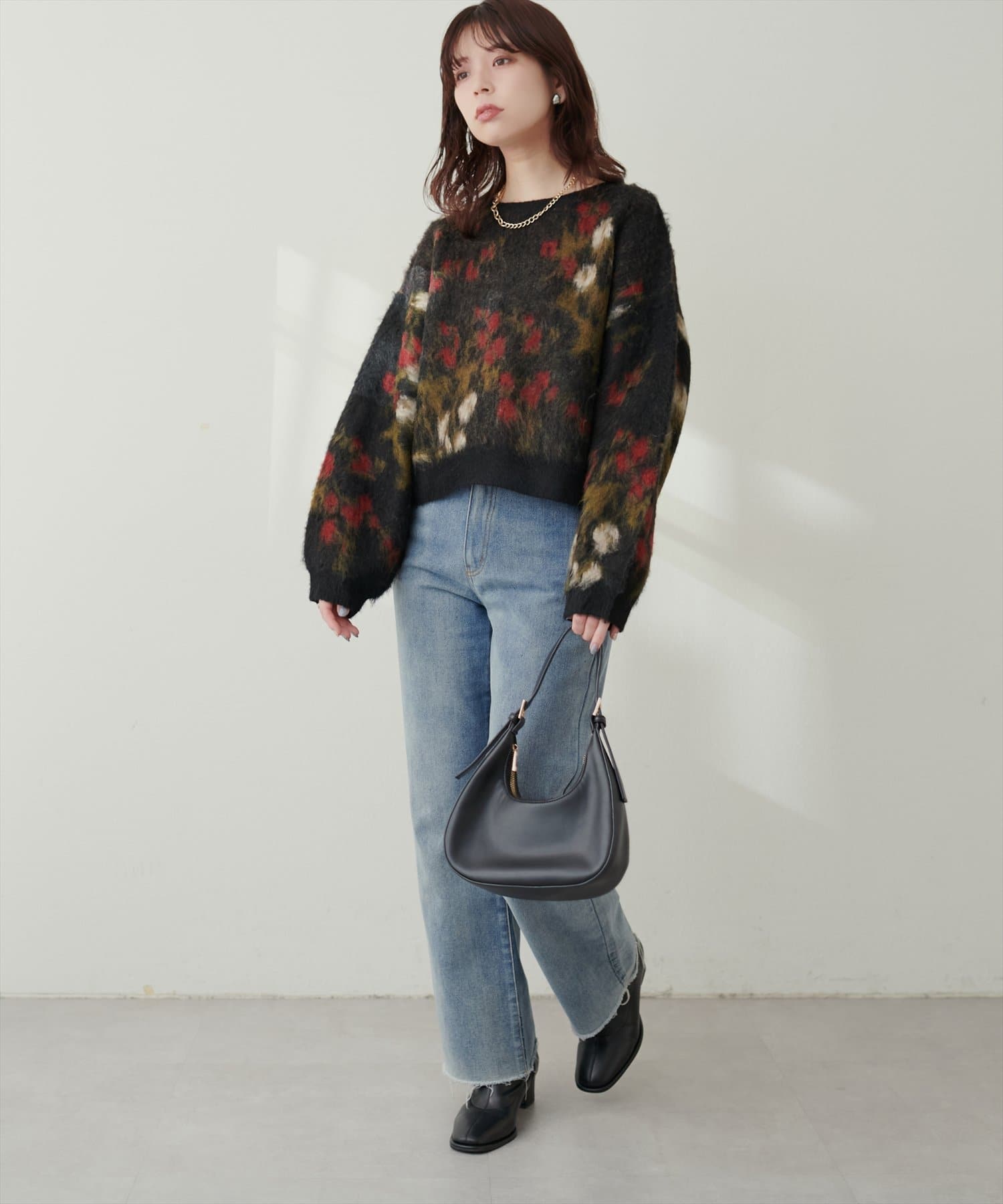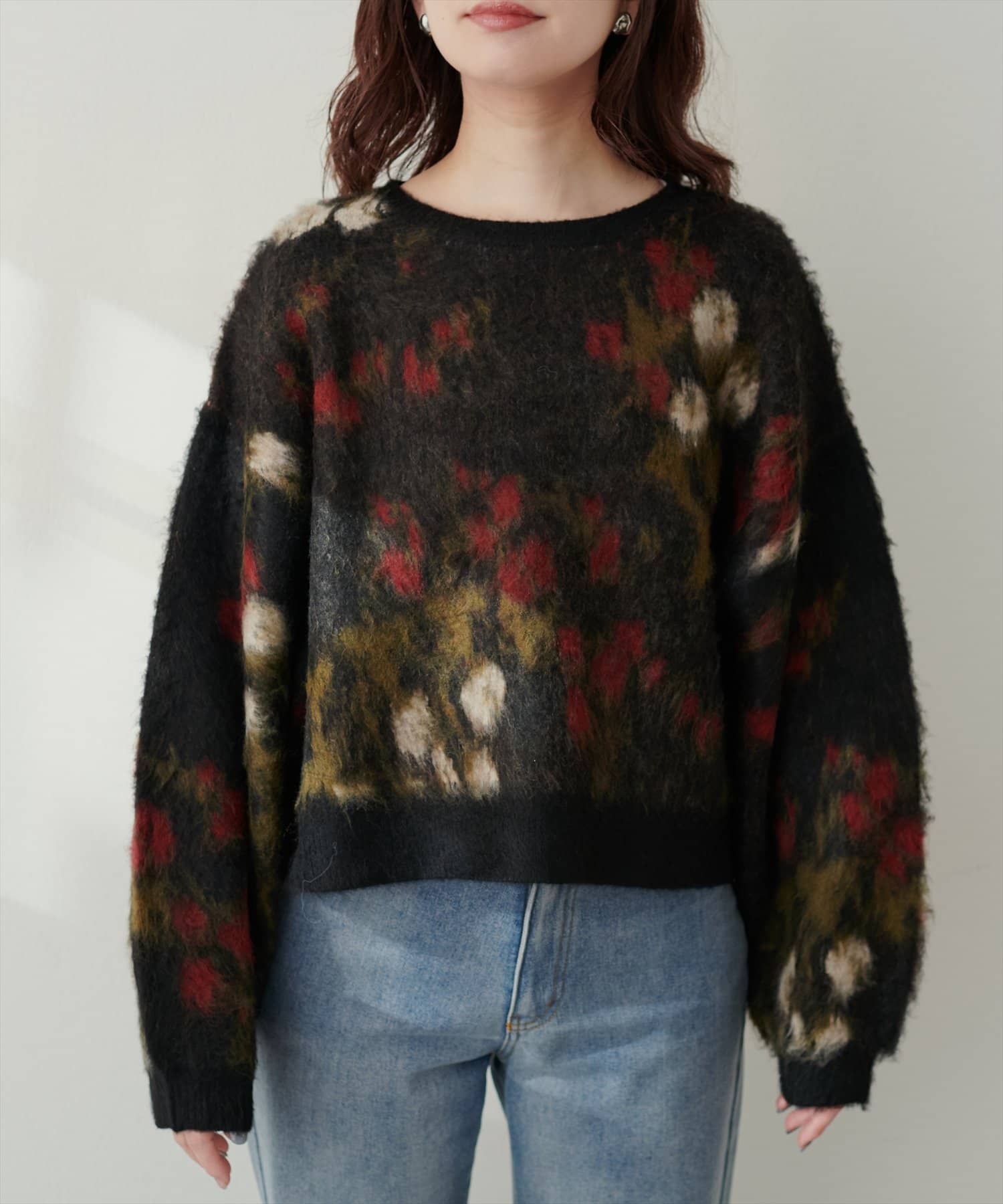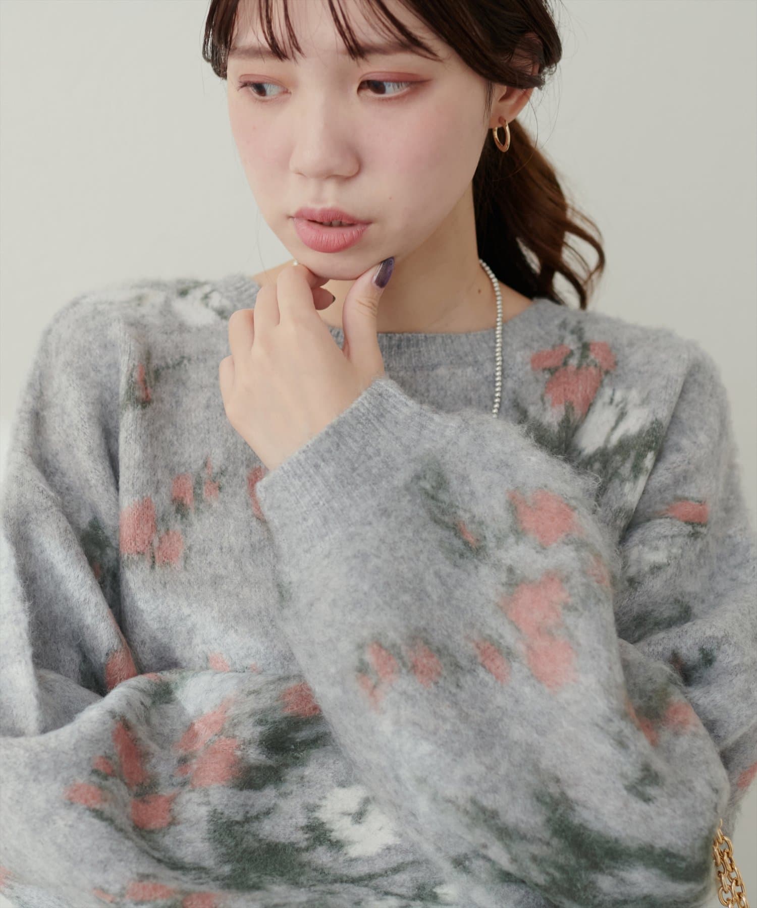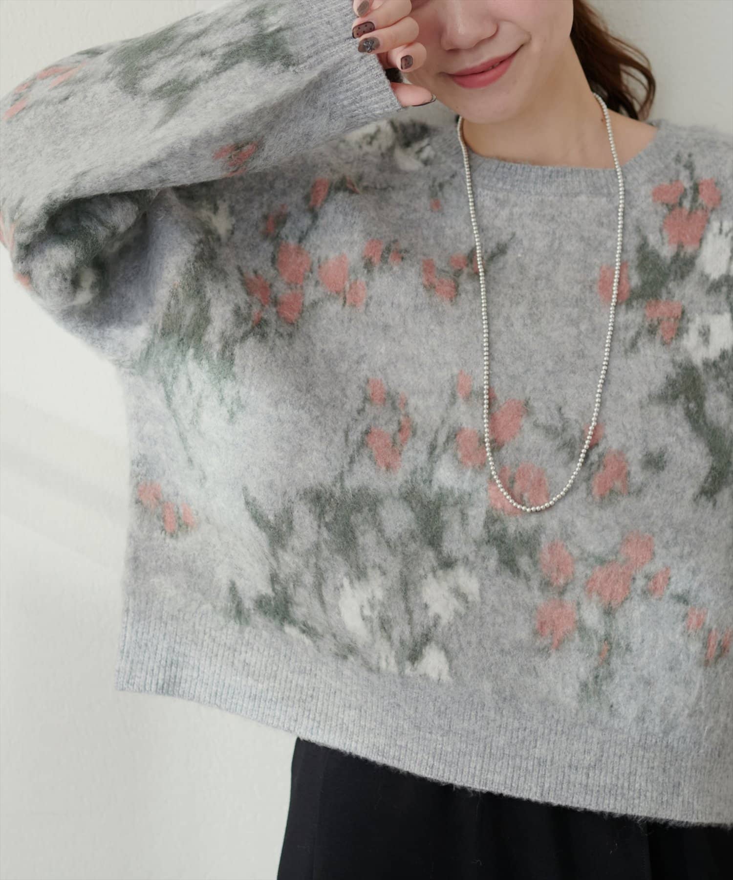 ふわふわとした毛並みが特徴のニットプルオーバー。