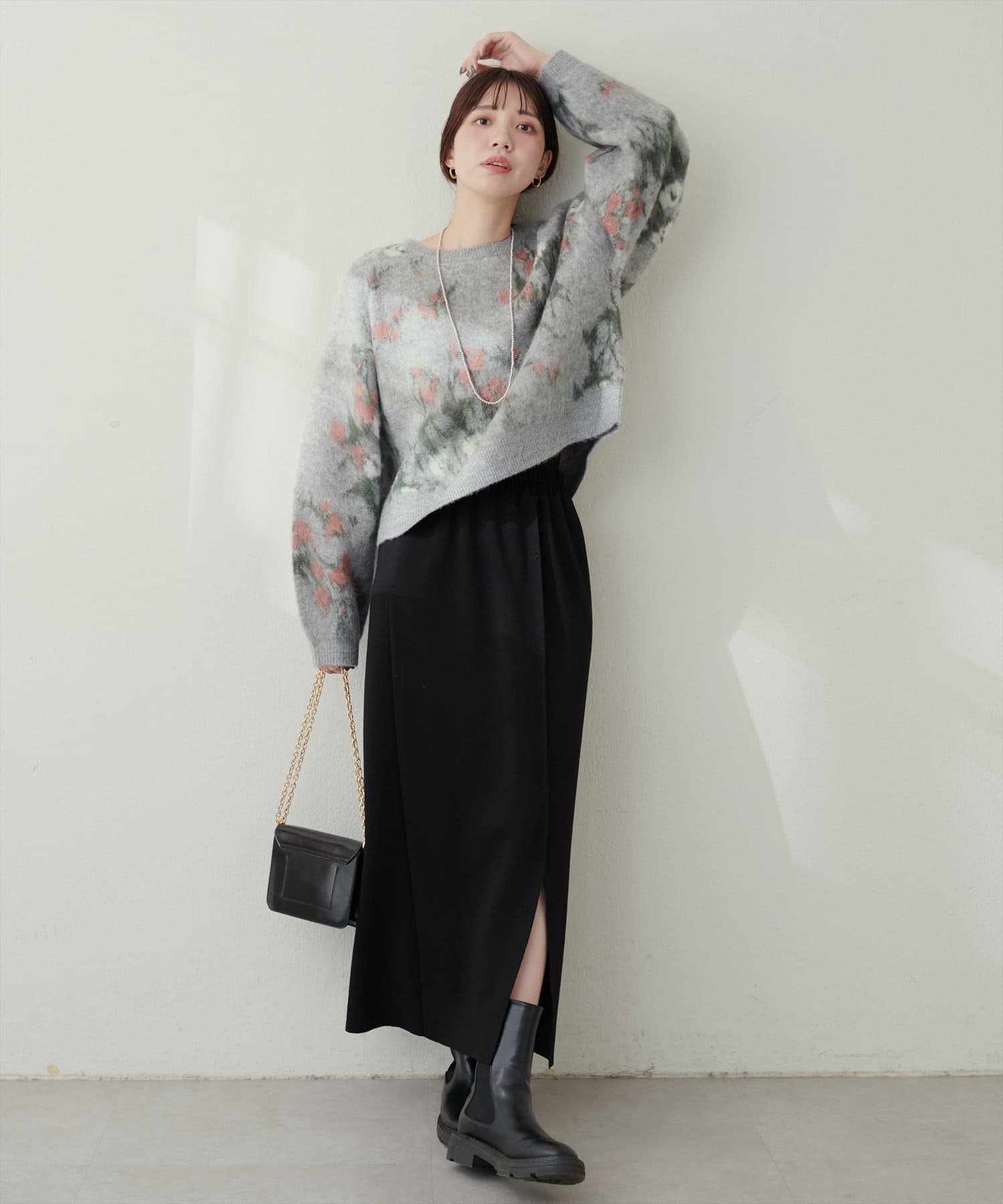 全体に施された花柄は、控えめながらも存在感がありコーデのワンポイントに。