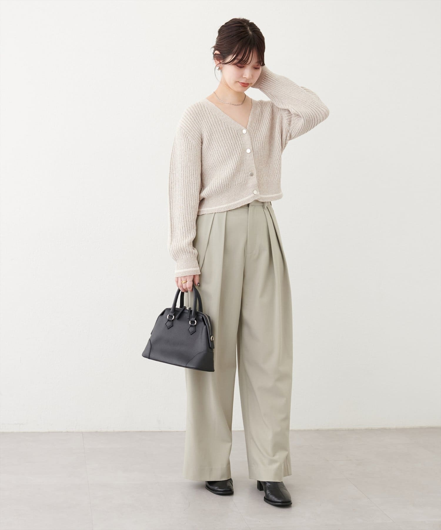マットな釦がアクセントになって、ニュアンスのある上品さがポイントに。