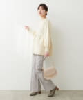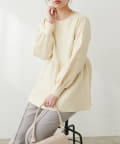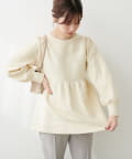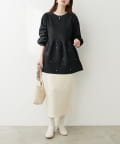チュニック丈で裾に向かって緩やかに広がるデザインなので、ボトムはナロースカートなど身体に優しく添う形がおすすめです。