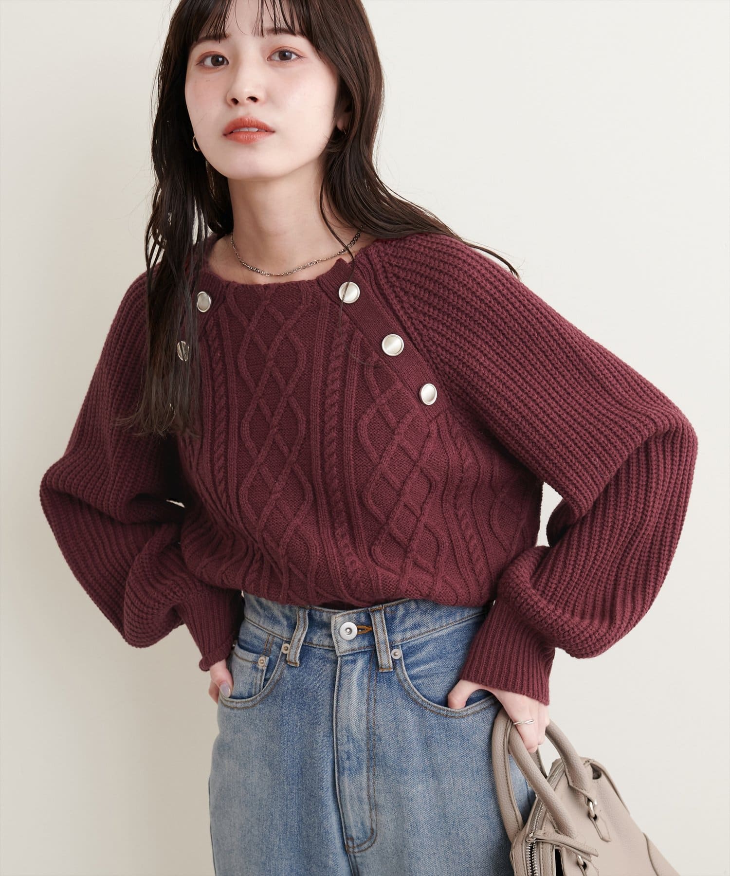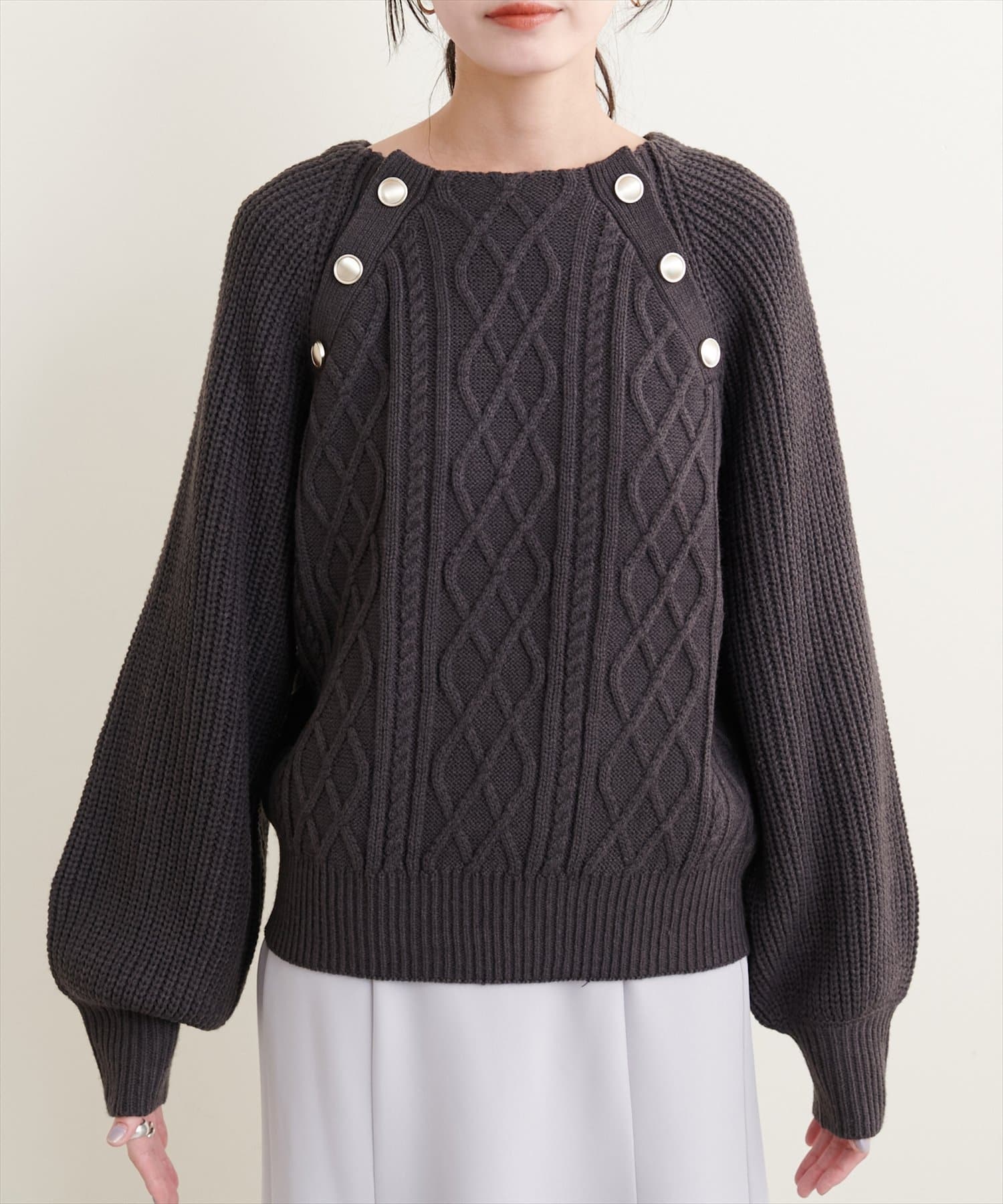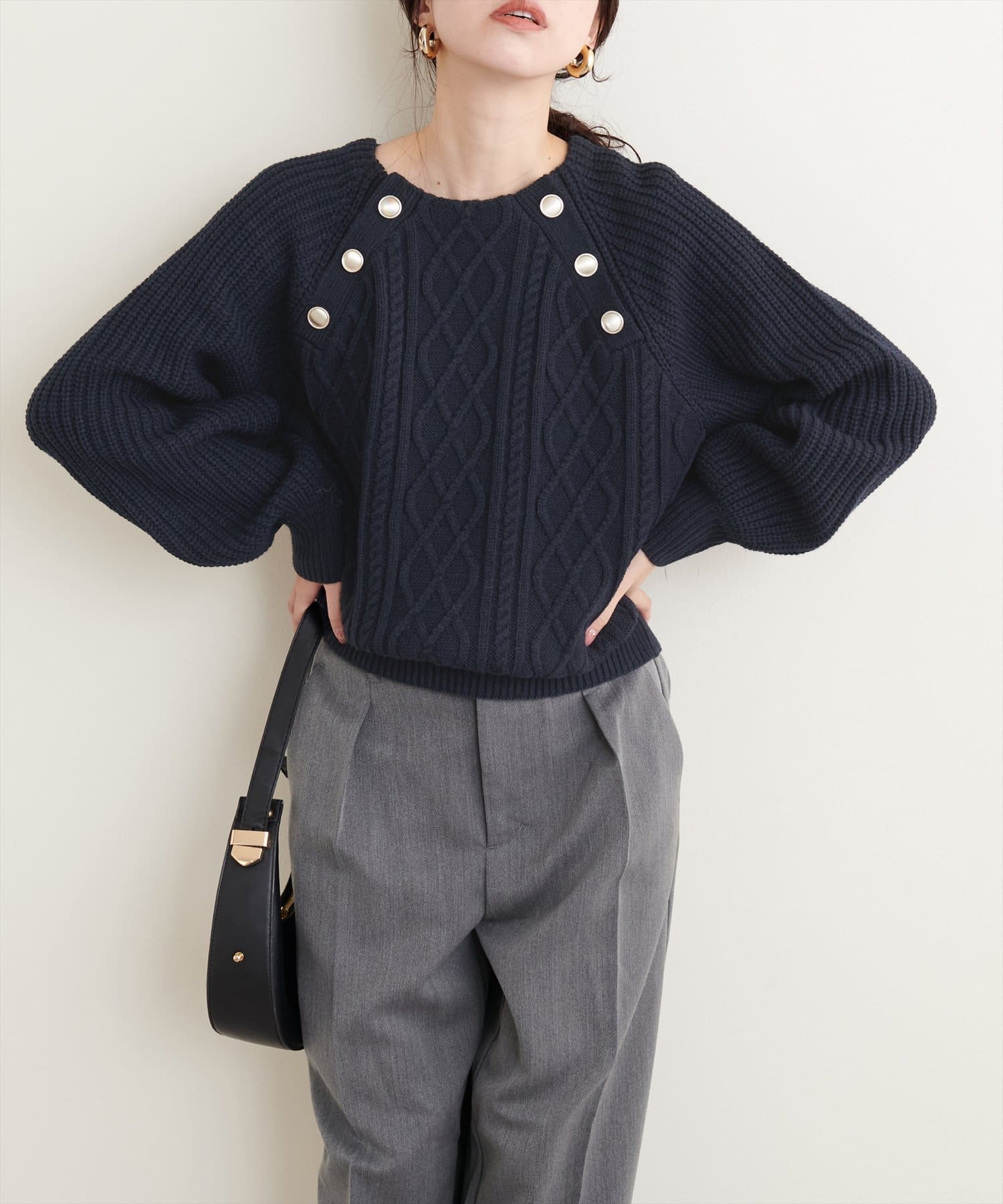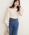 ほのかにボリュームのあるお袖と裾のリブは、1枚で着用した際どの角度からでも女性らしく見えるポイント。