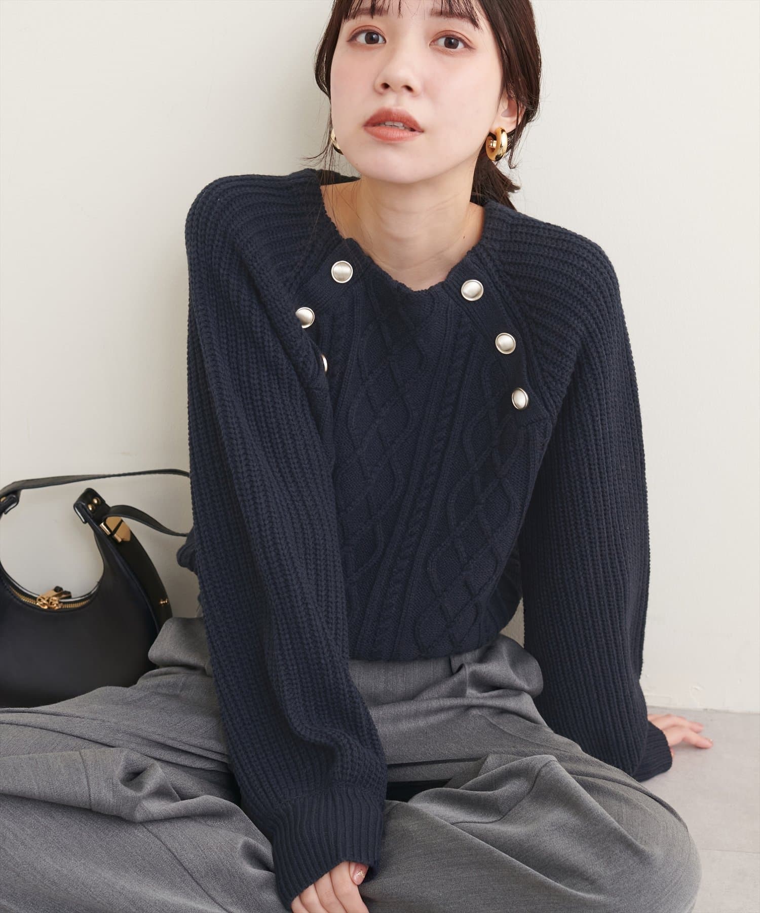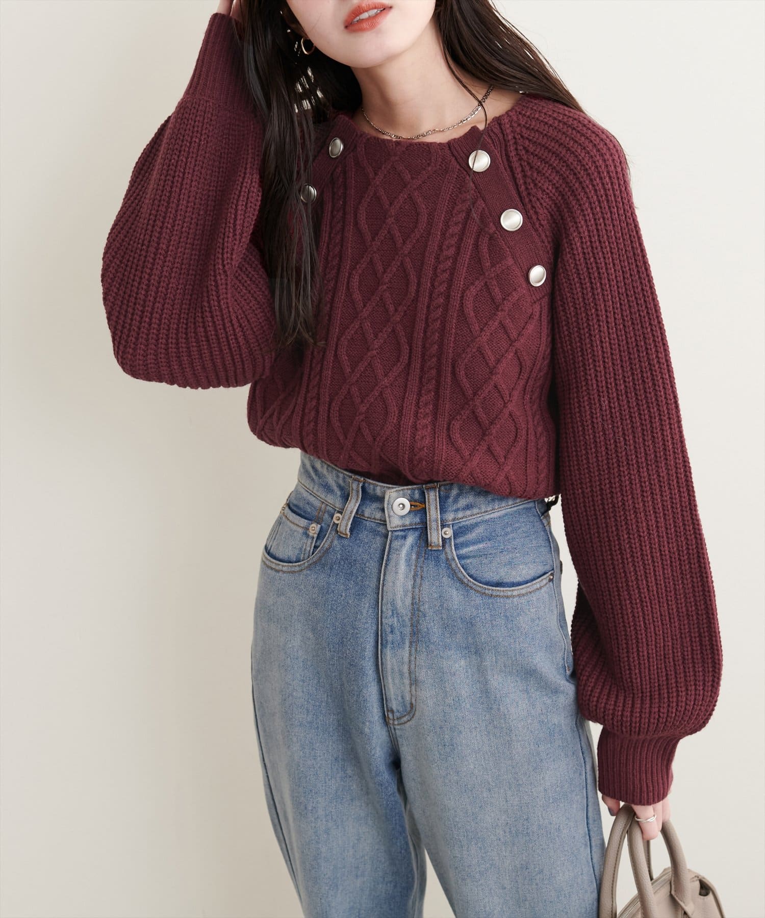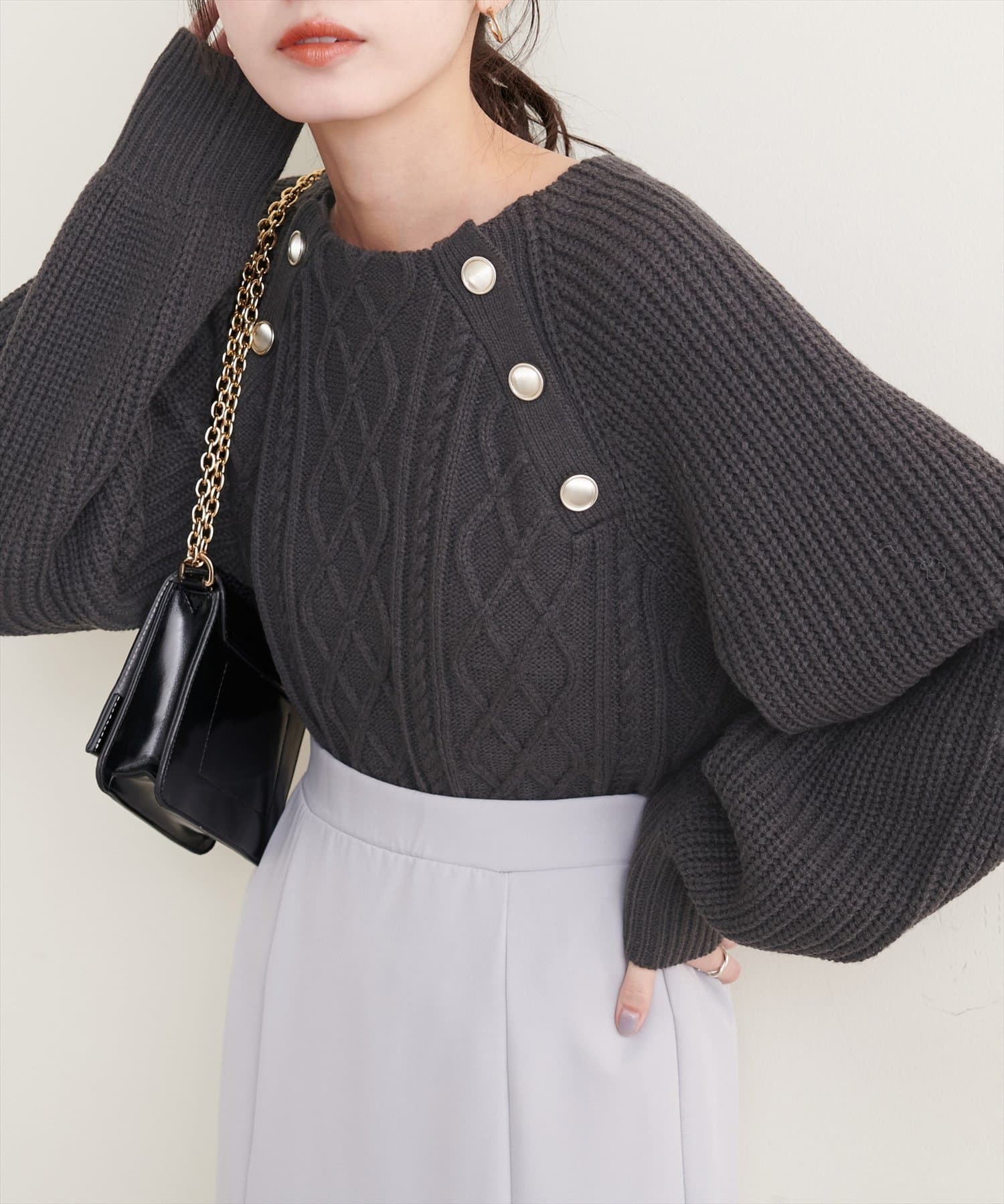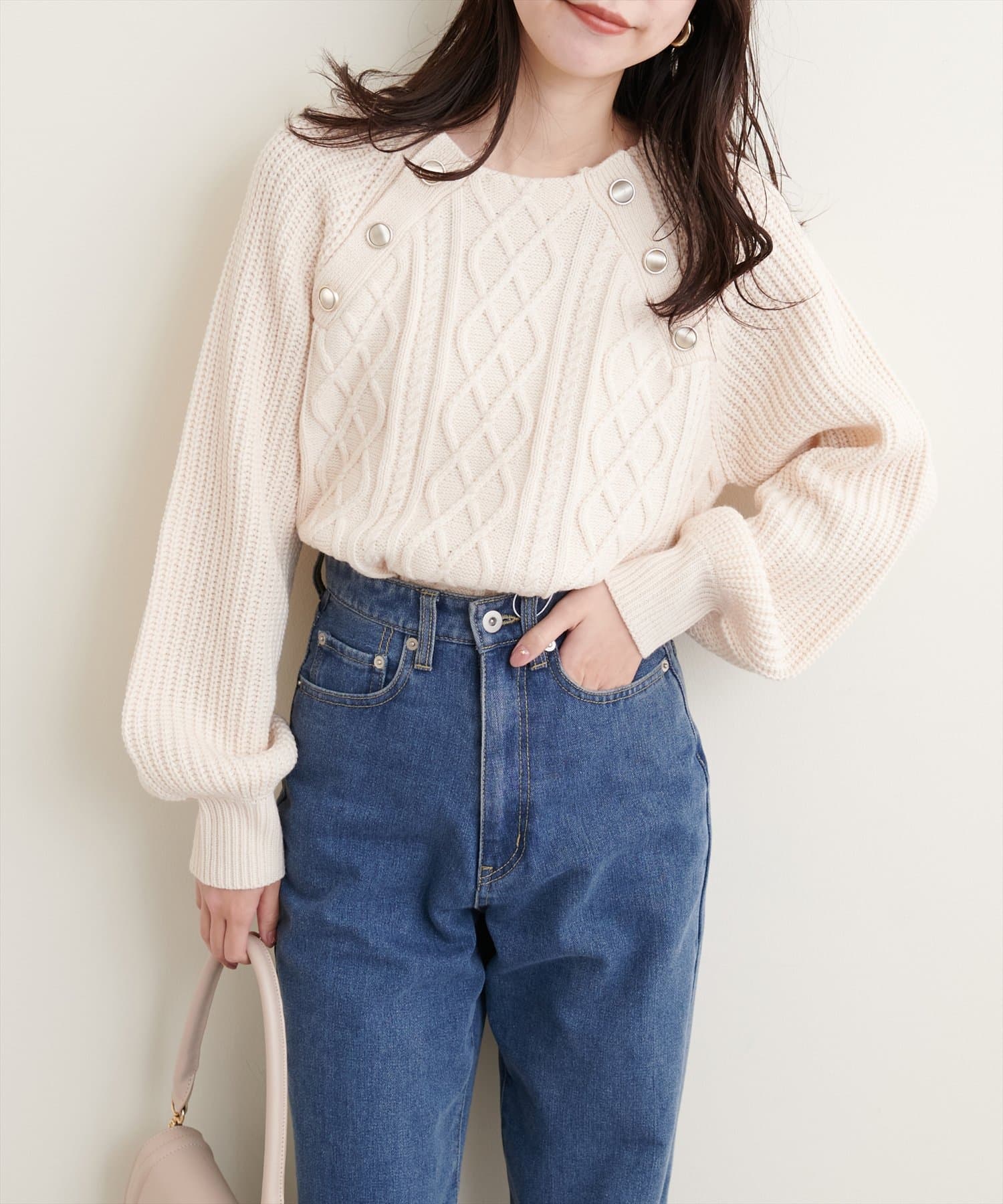 ほのかにボリュームのあるお袖と裾のリブは、1枚で着用した際どの角度からでも女性らしく見えるポイント。