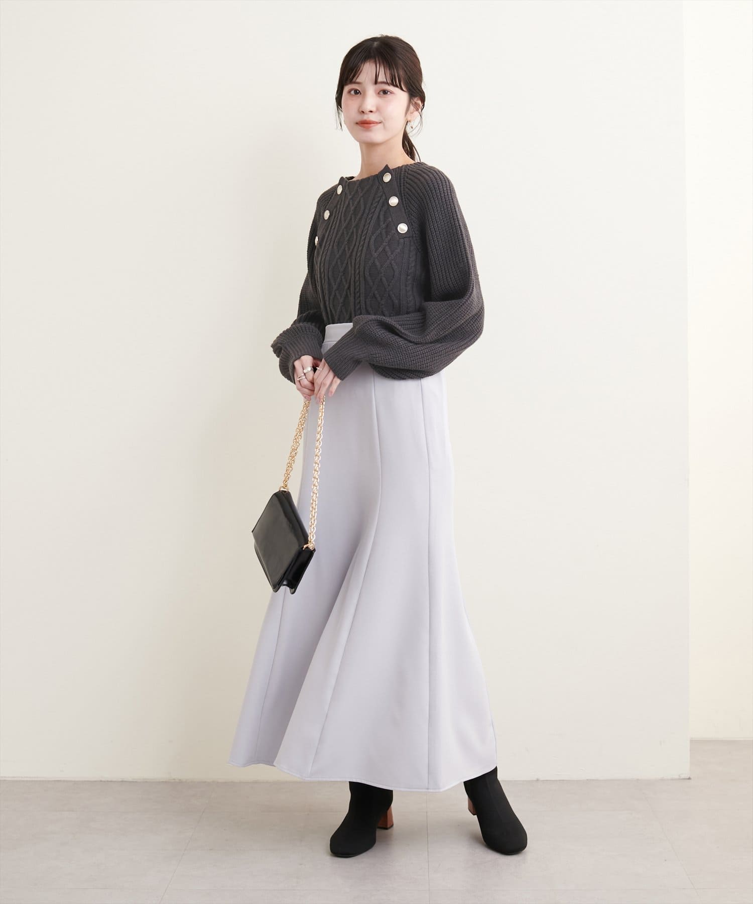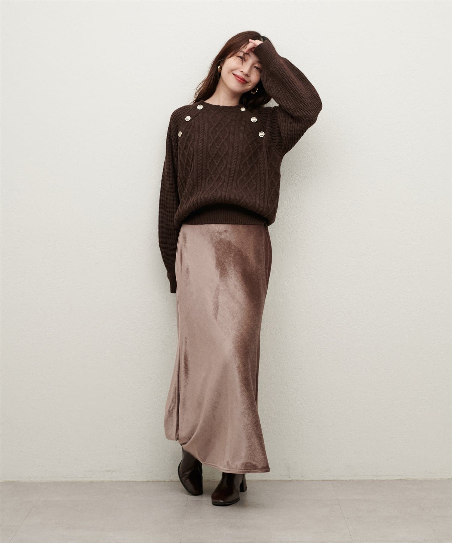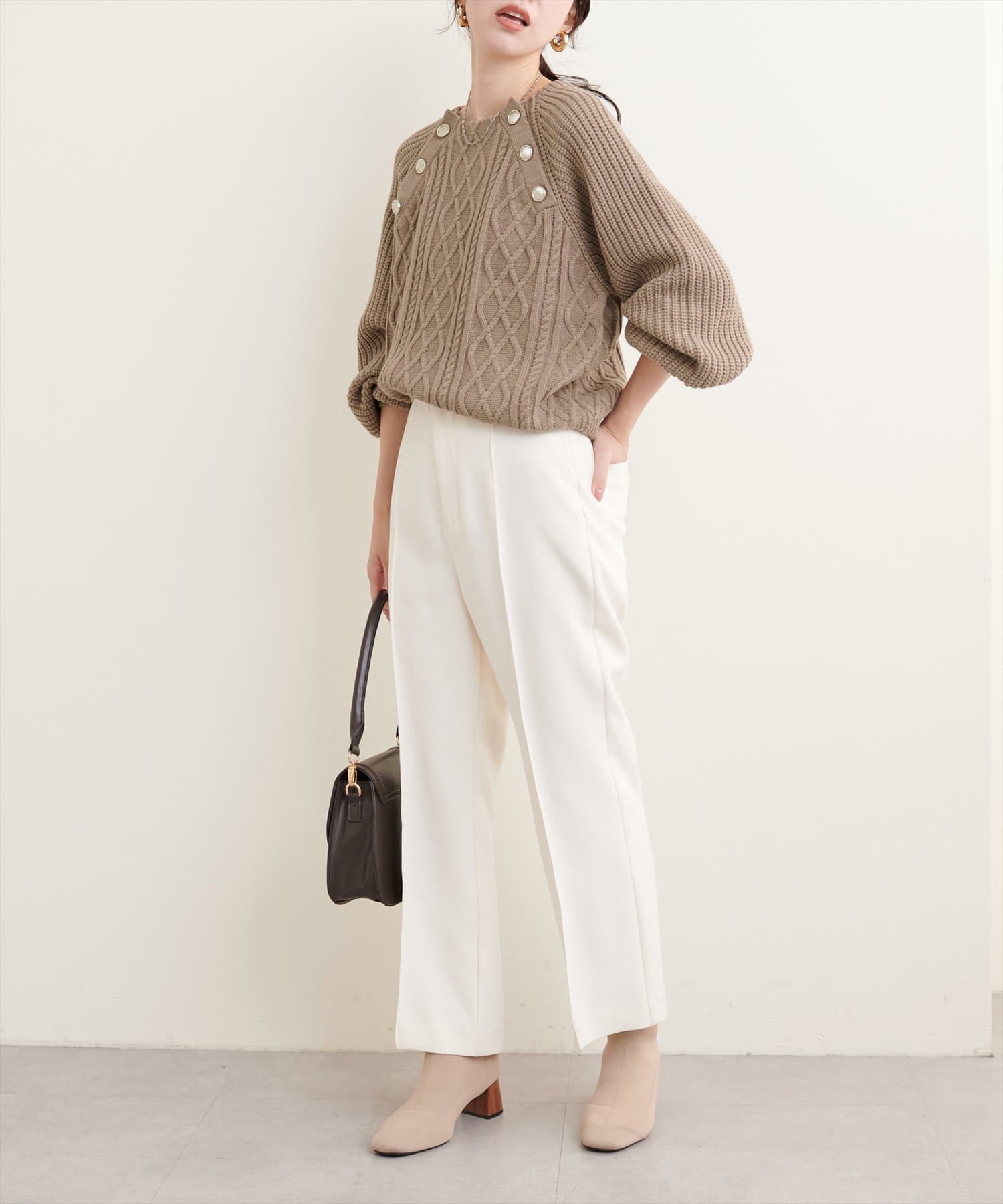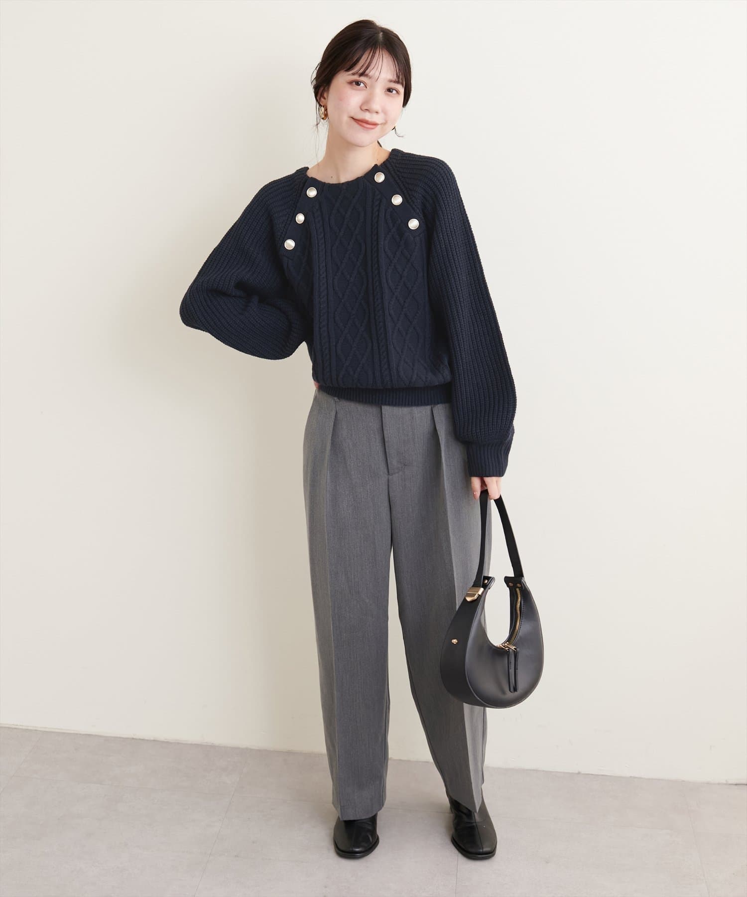 網目がザックりしているので、つるんとした生地のスカートやパンツ合わせがおすすめ。