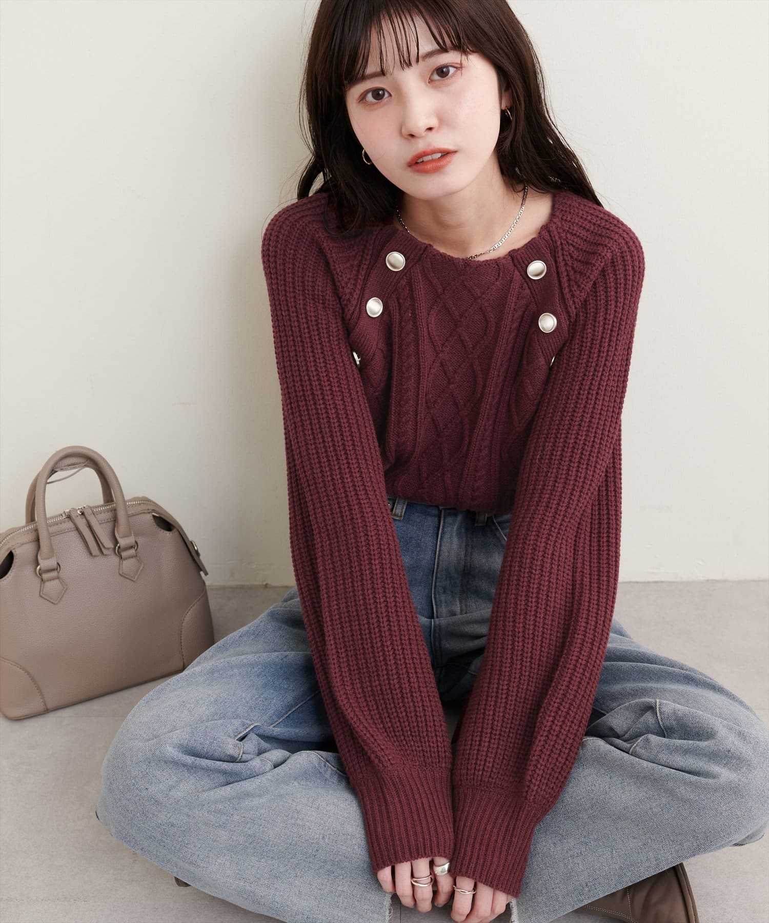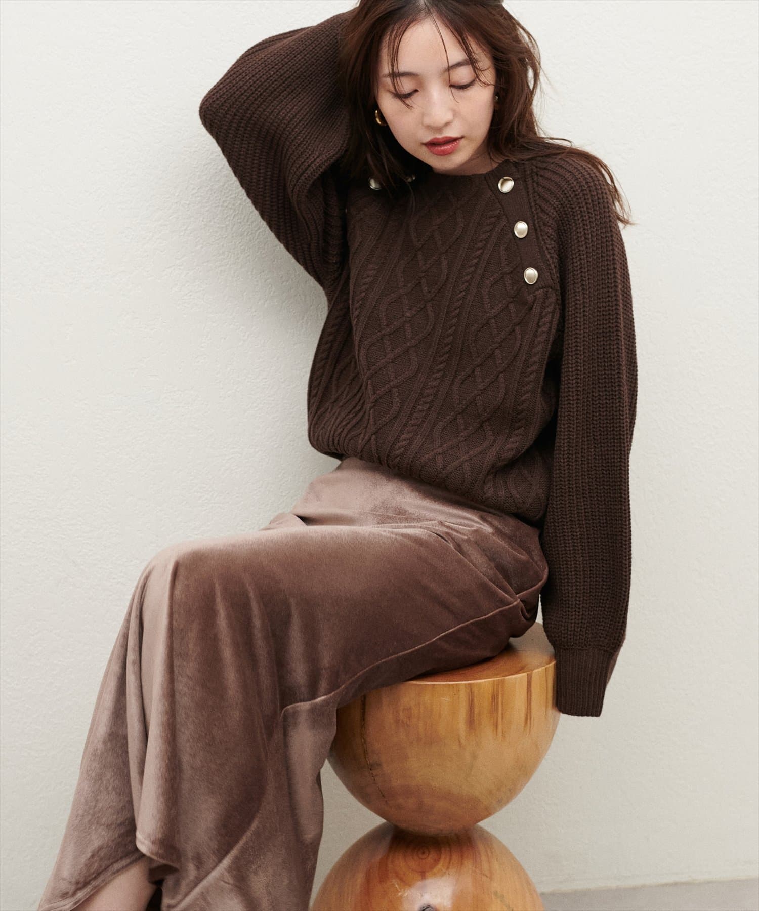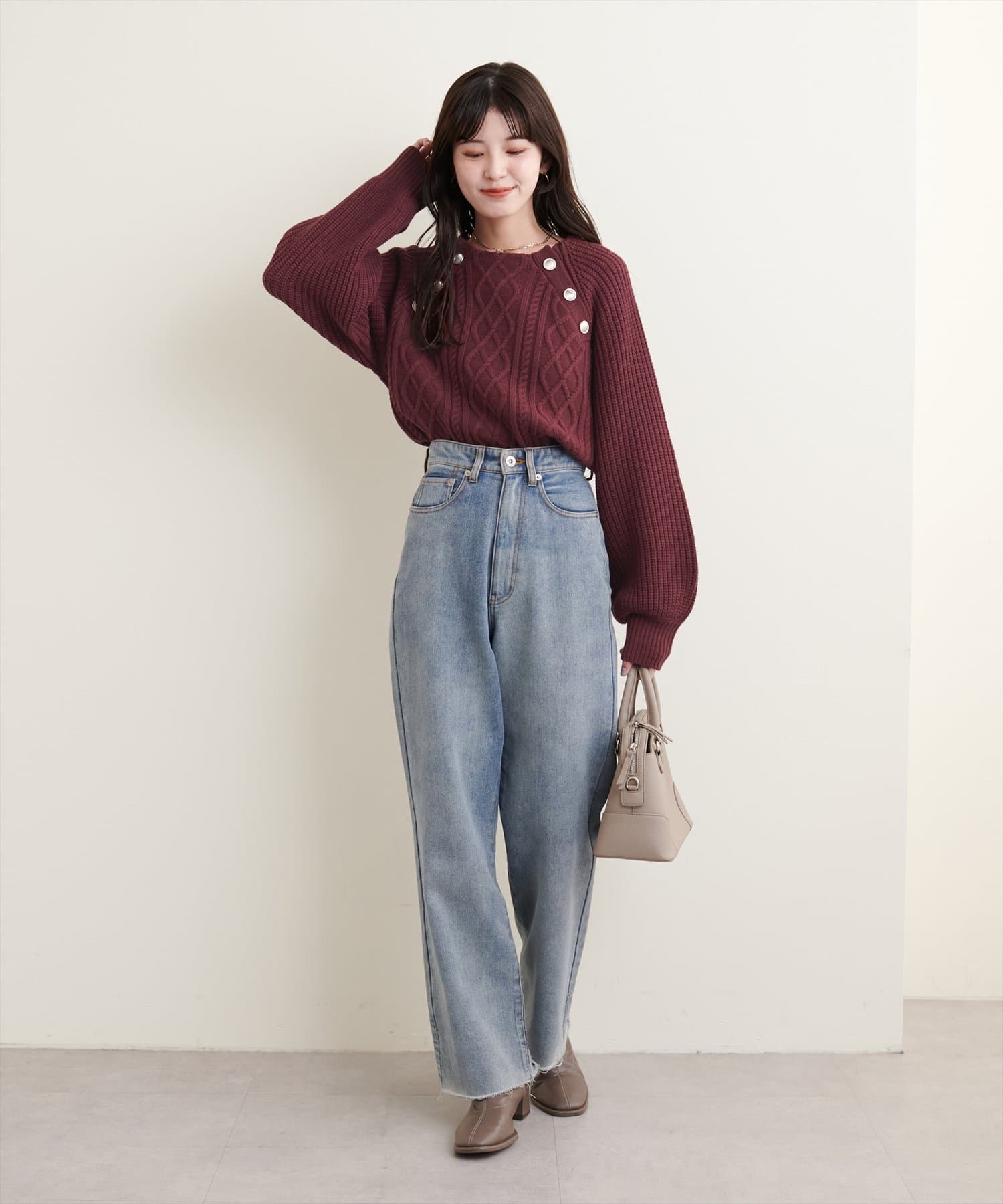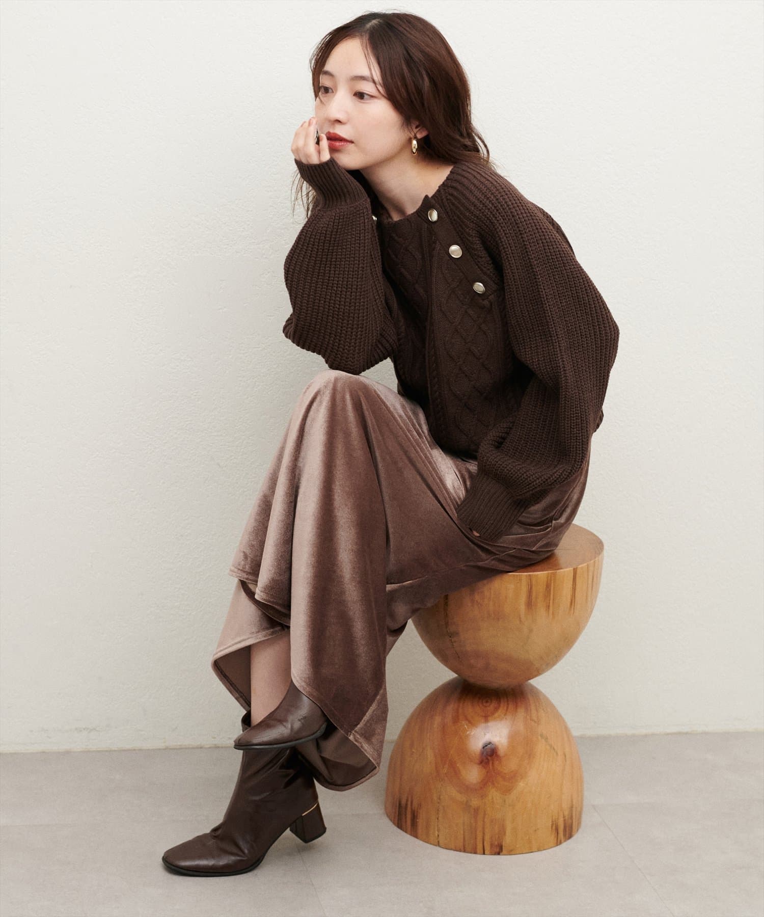 網目がザックりしているので、つるんとした生地のスカートやパンツ合わせがおすすめ。