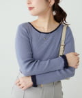 ボートネックのような広い襟ぐりは首もとをすっきりと見せてくれます。