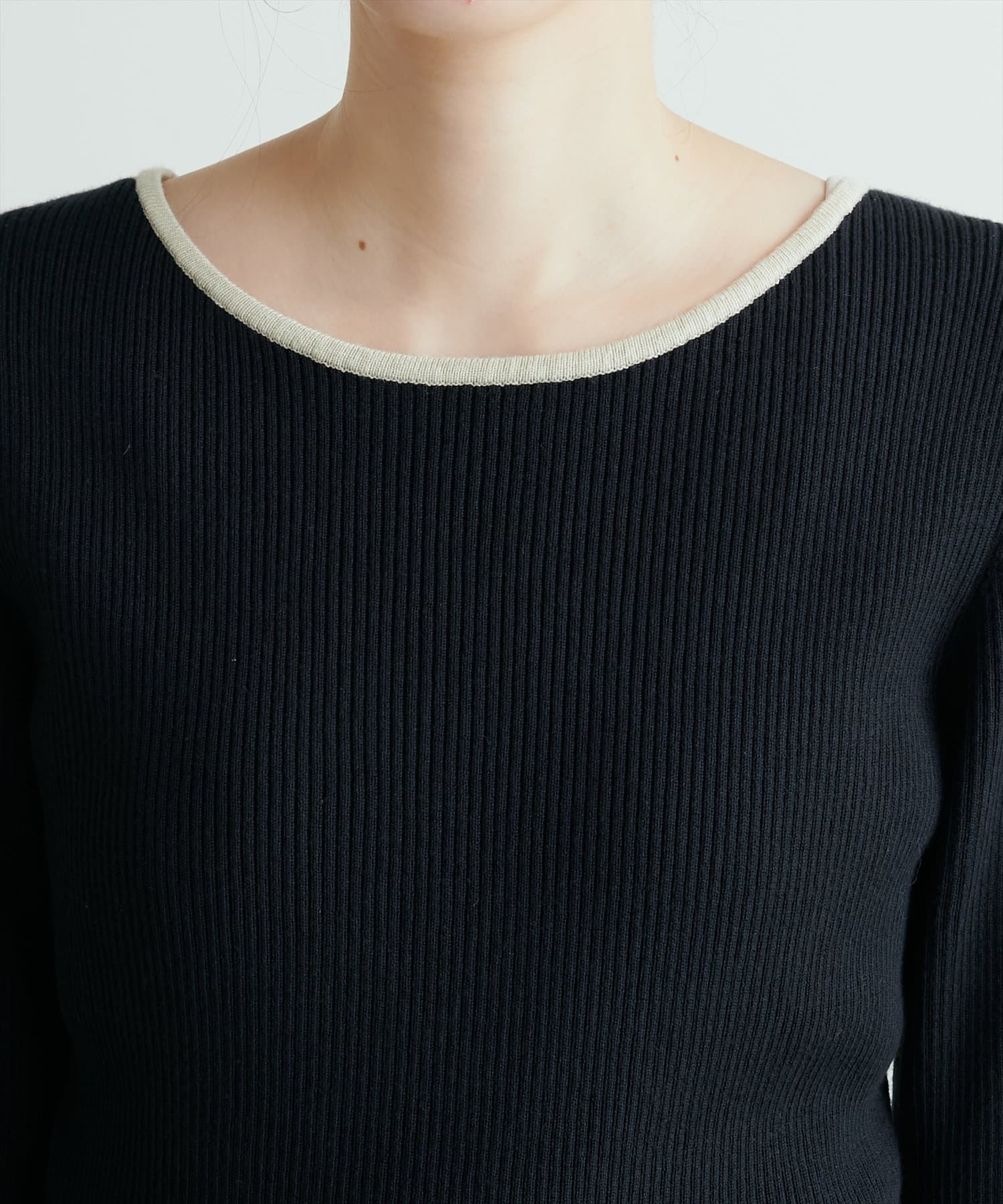 柔らかいリブ使いのニット地を採用。