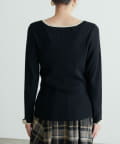 ボートネックのような広い襟ぐりは首もとをすっきりと見せてくれます。