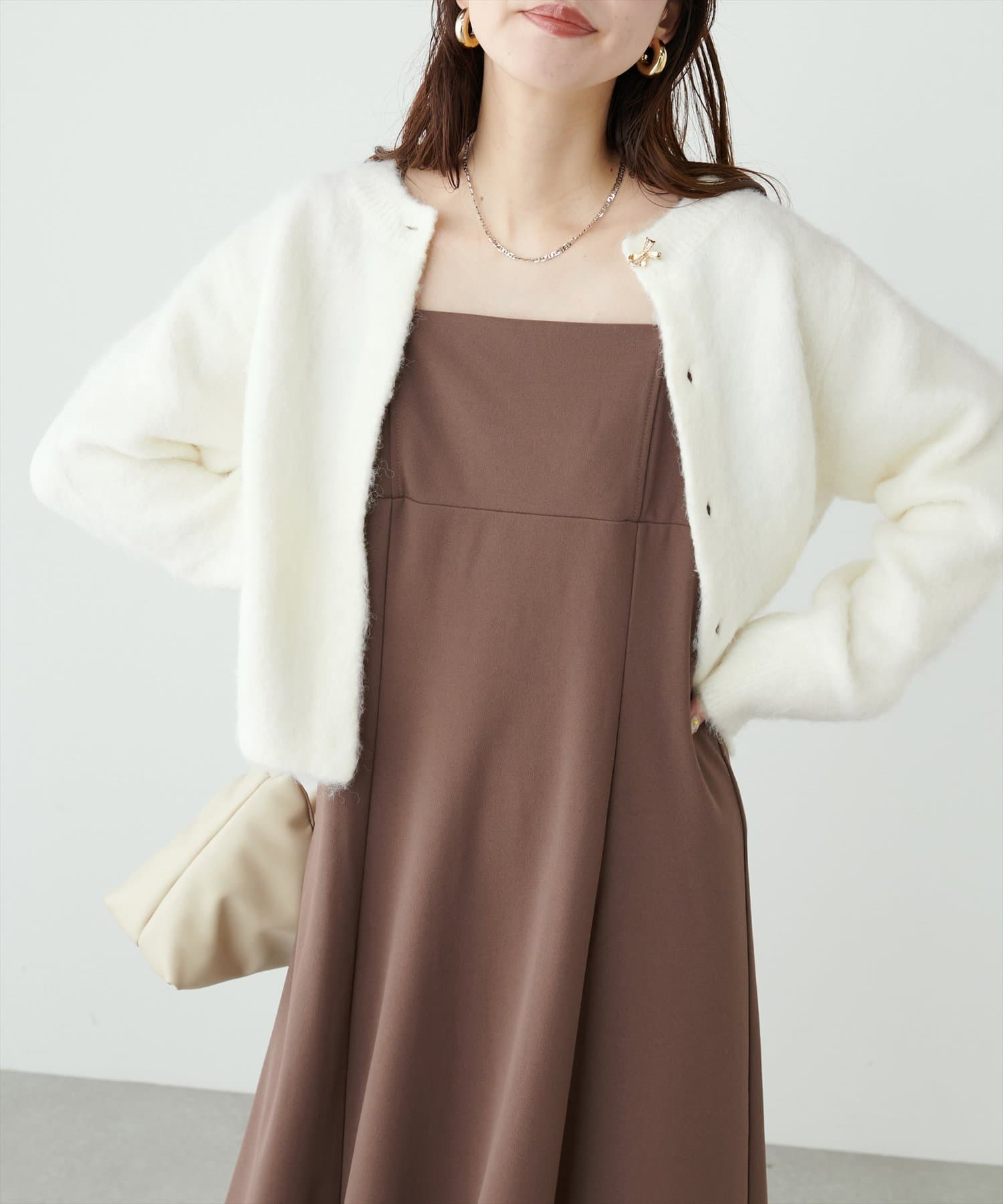 natural couture(ナチュラルクチュール) 【WEB限定】リボン釦ほわほわショートカーデ