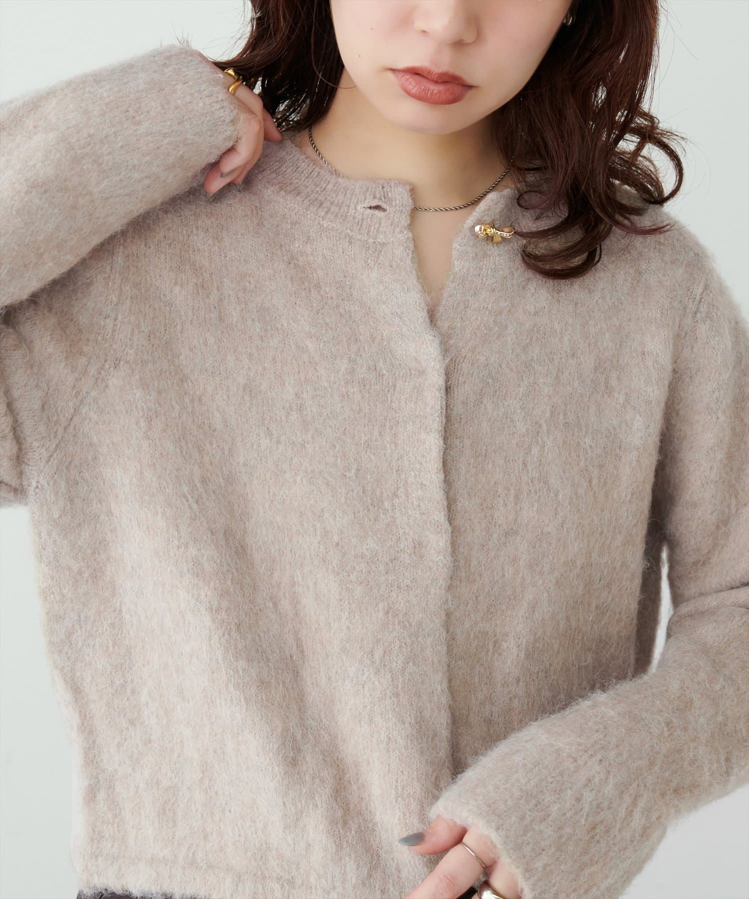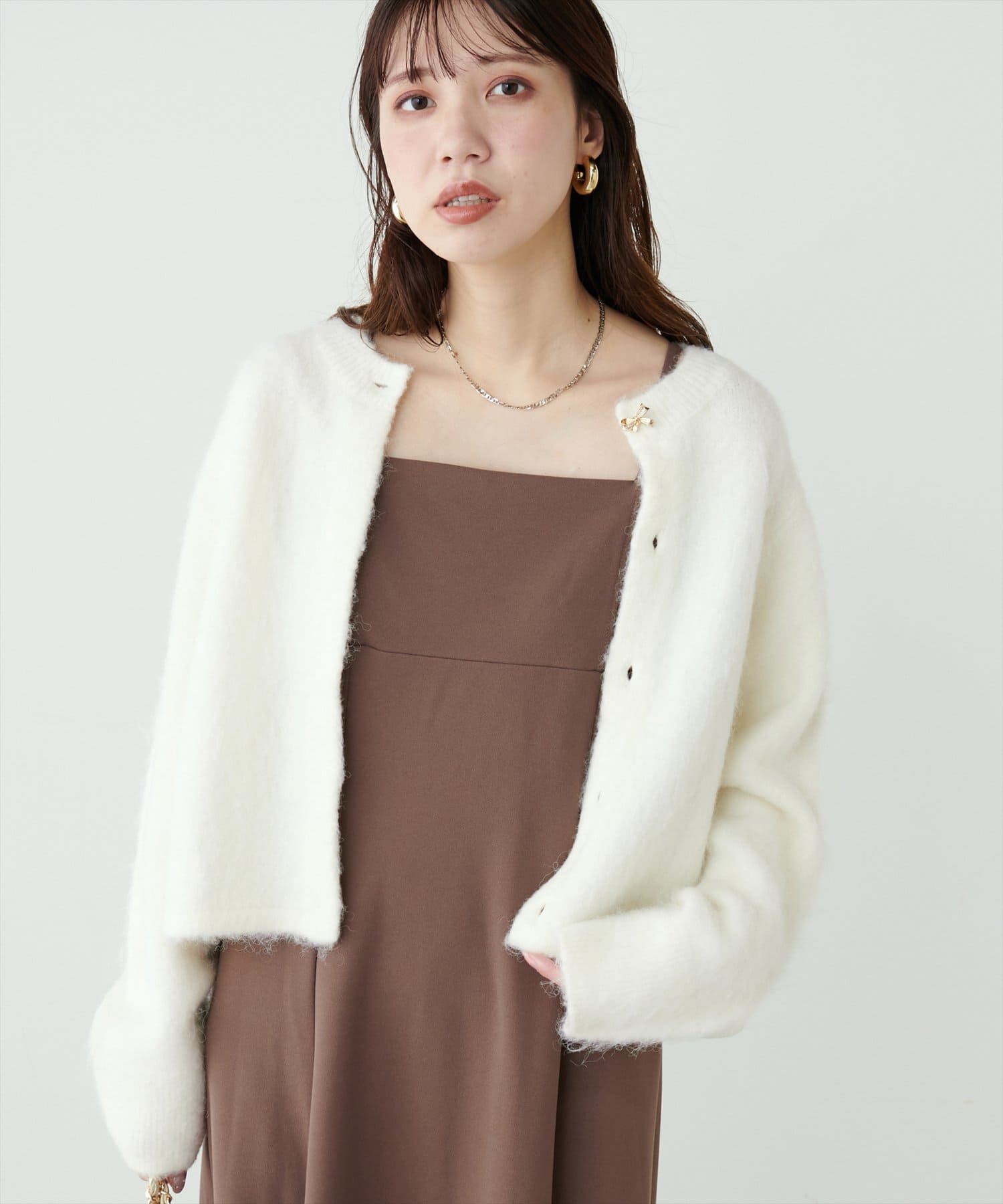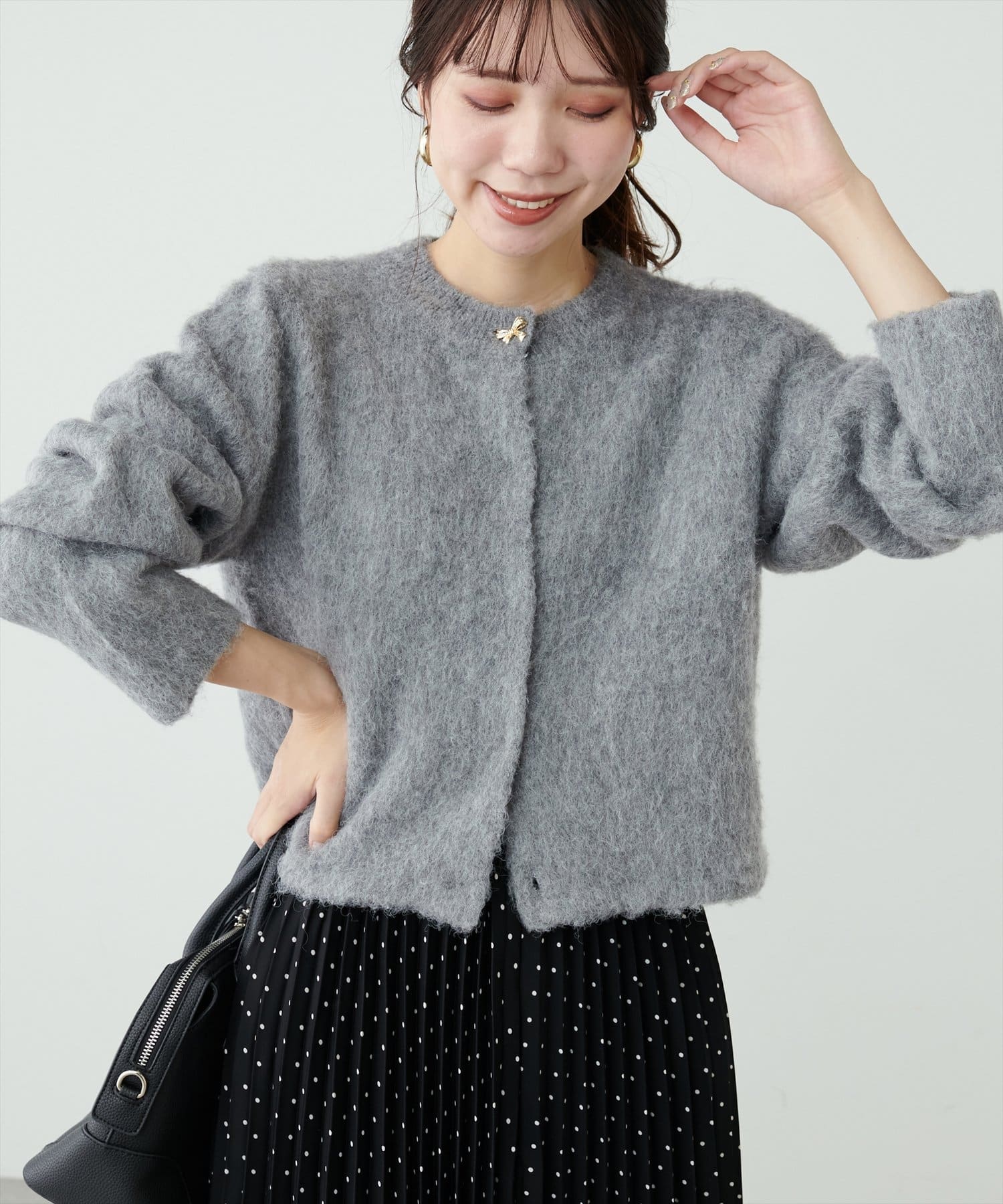 TOP > natural couture > レディース > トップス > カーディガン/ボレロ > 【WEB限定】リボン釦ほわほわショートカーデ