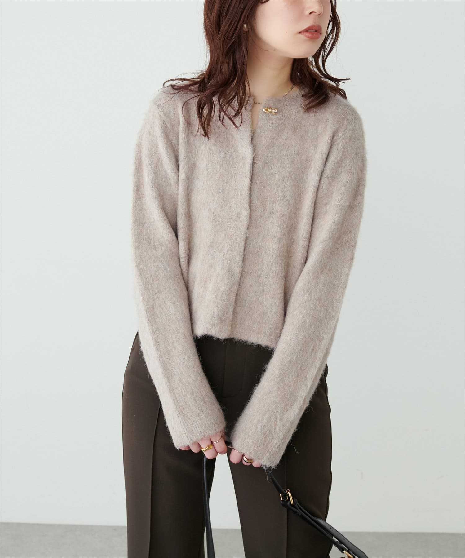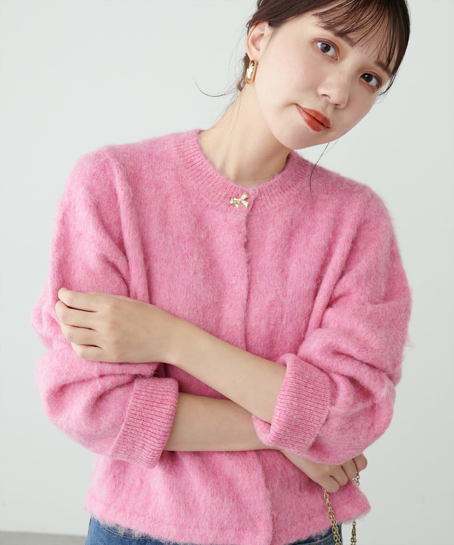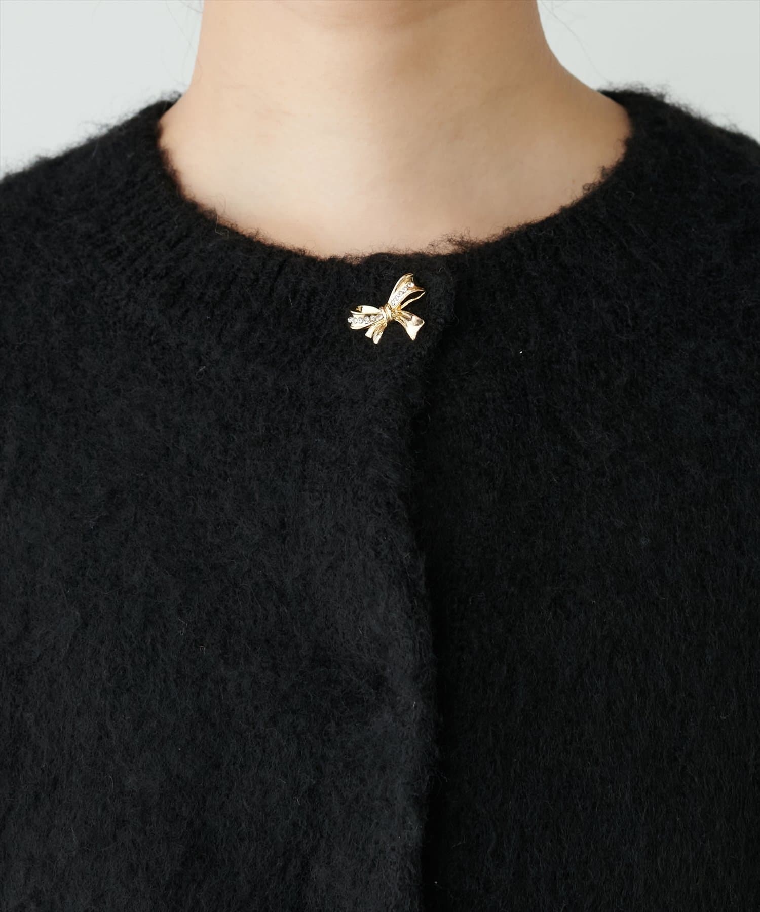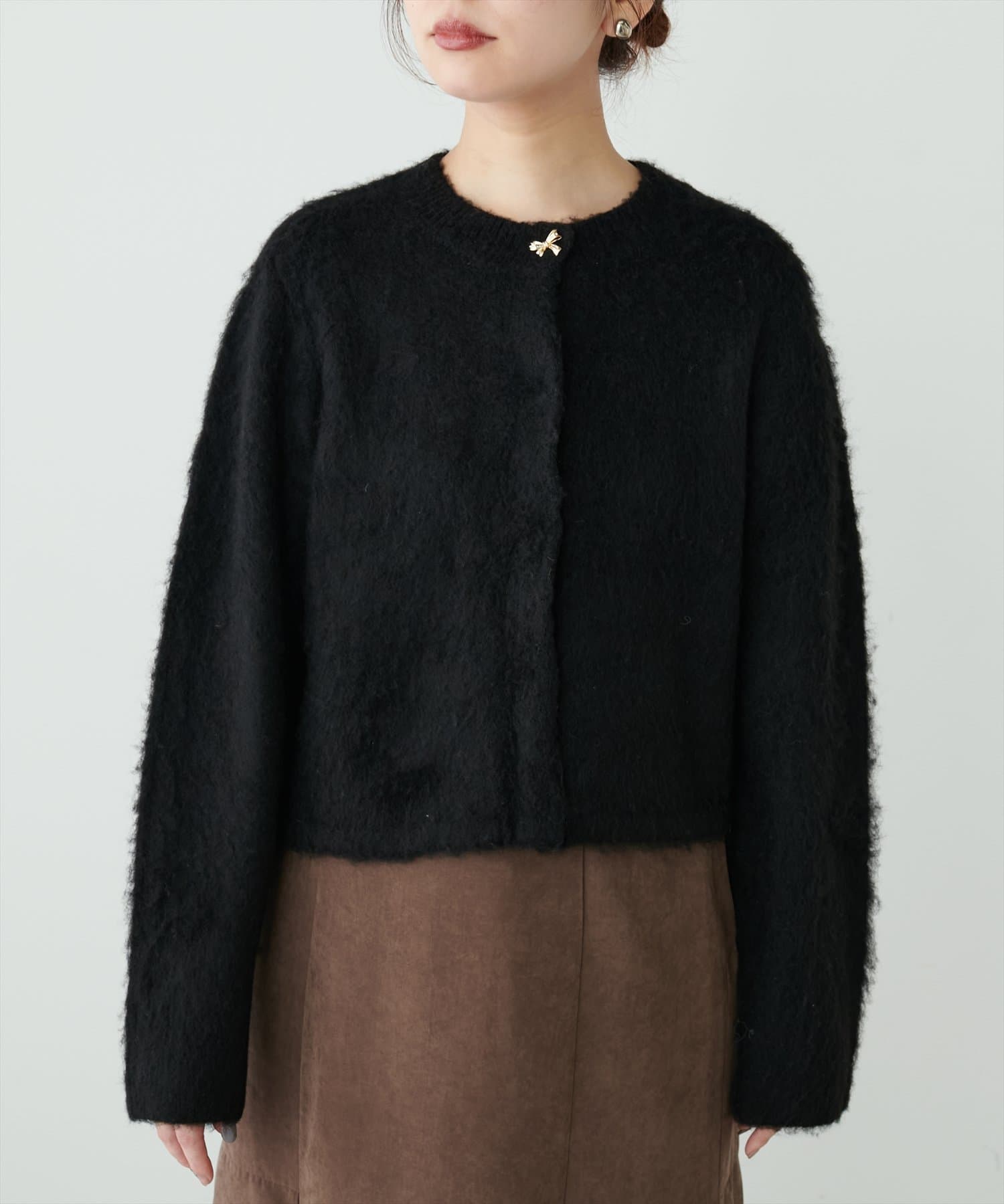 • natural couture(ナチュラルクチュール) 【WEB限定】リボン釦ほわほわショートカーデ