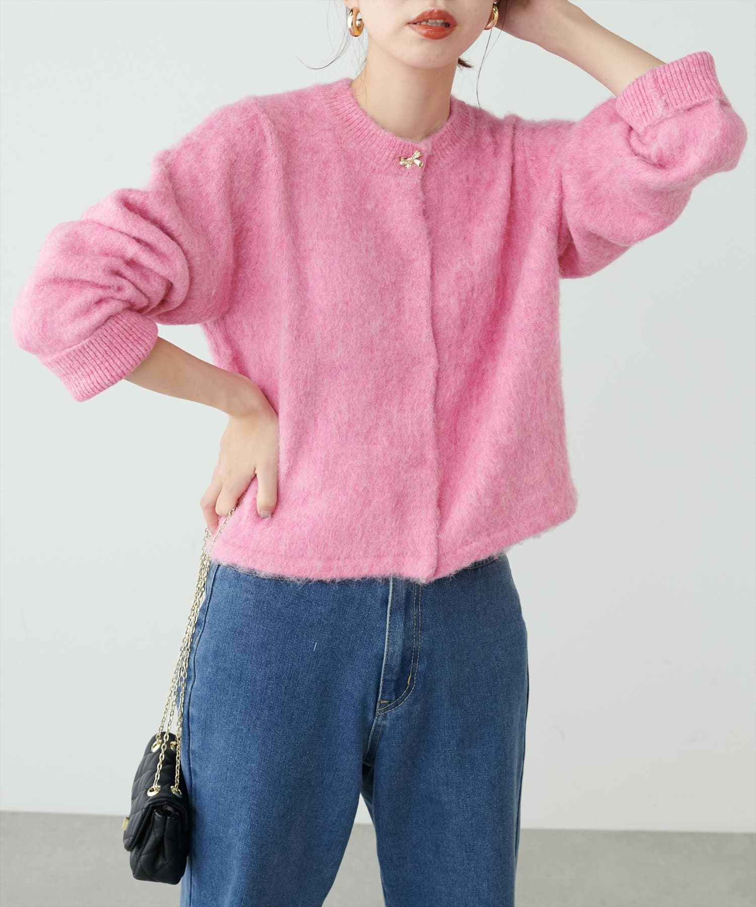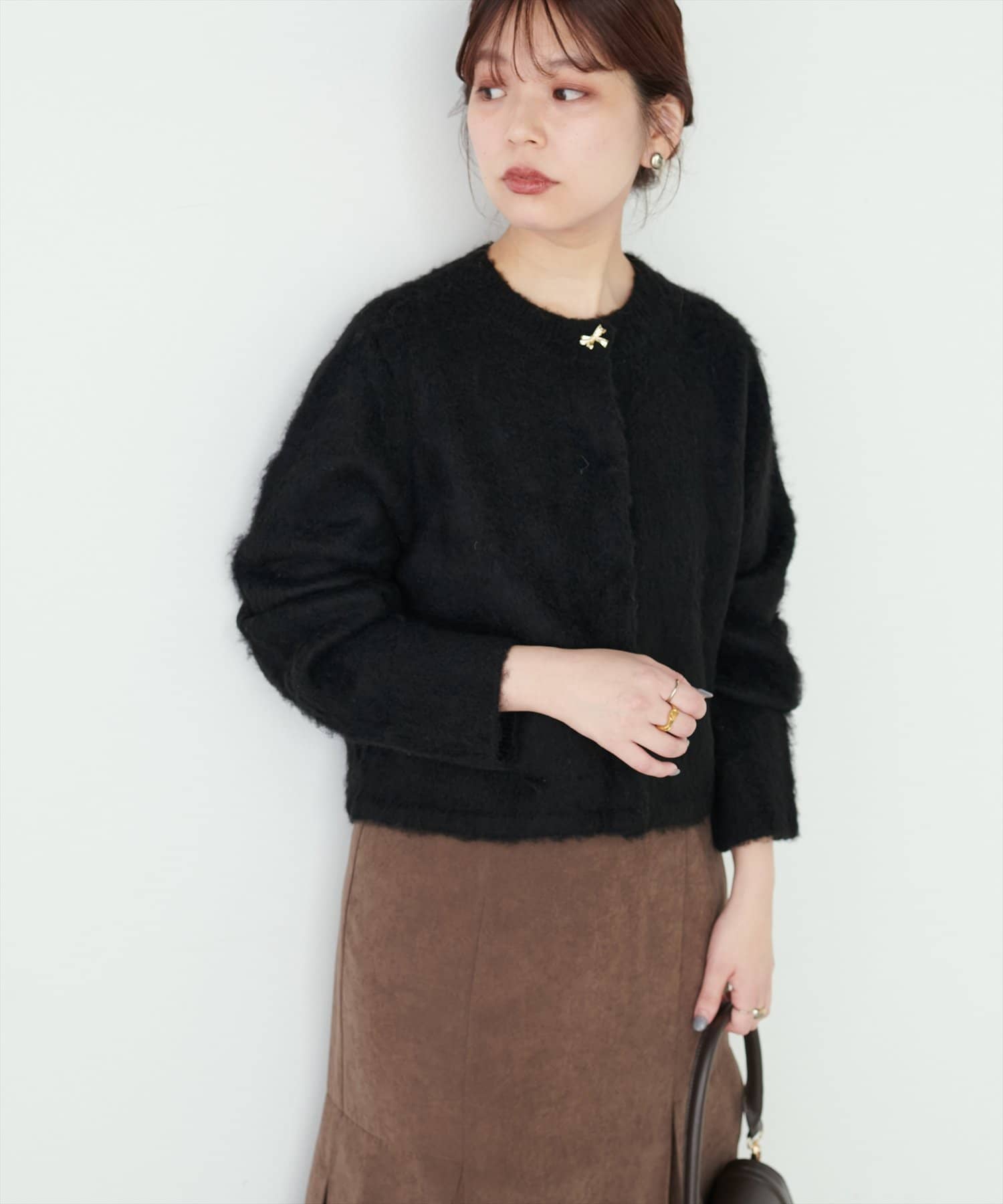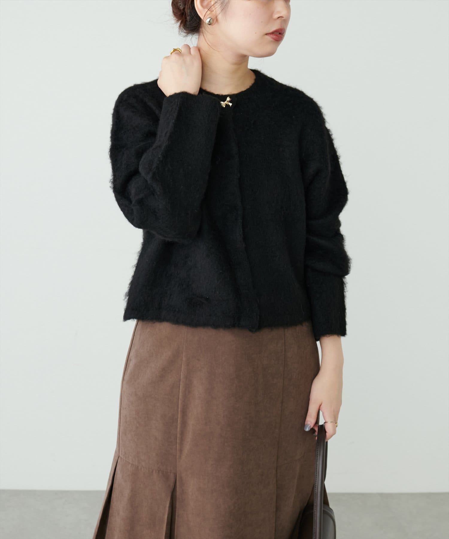 • natural couture(ナチュラルクチュール) 【WEB限定】リボン釦ほわほわショートカーデ