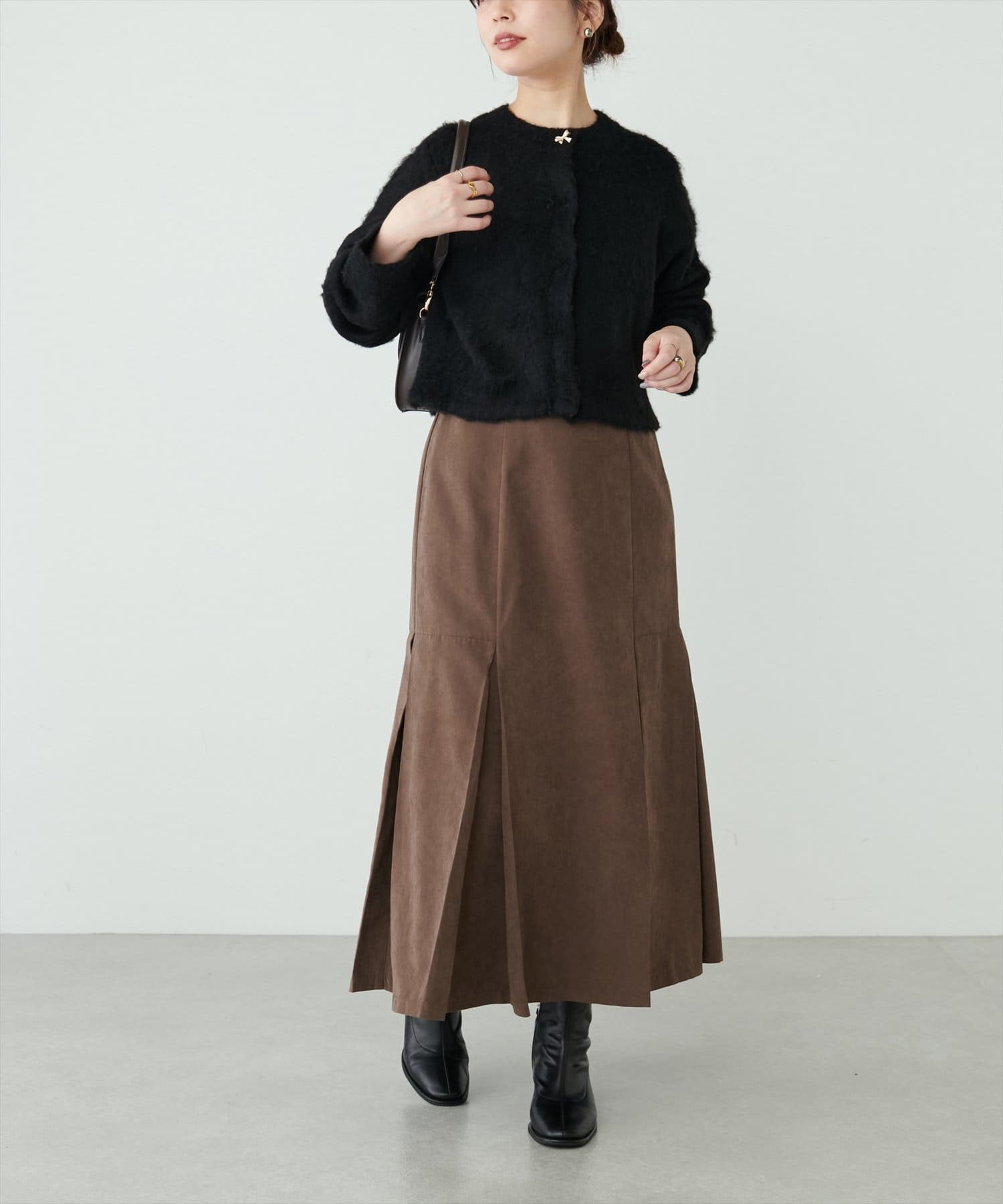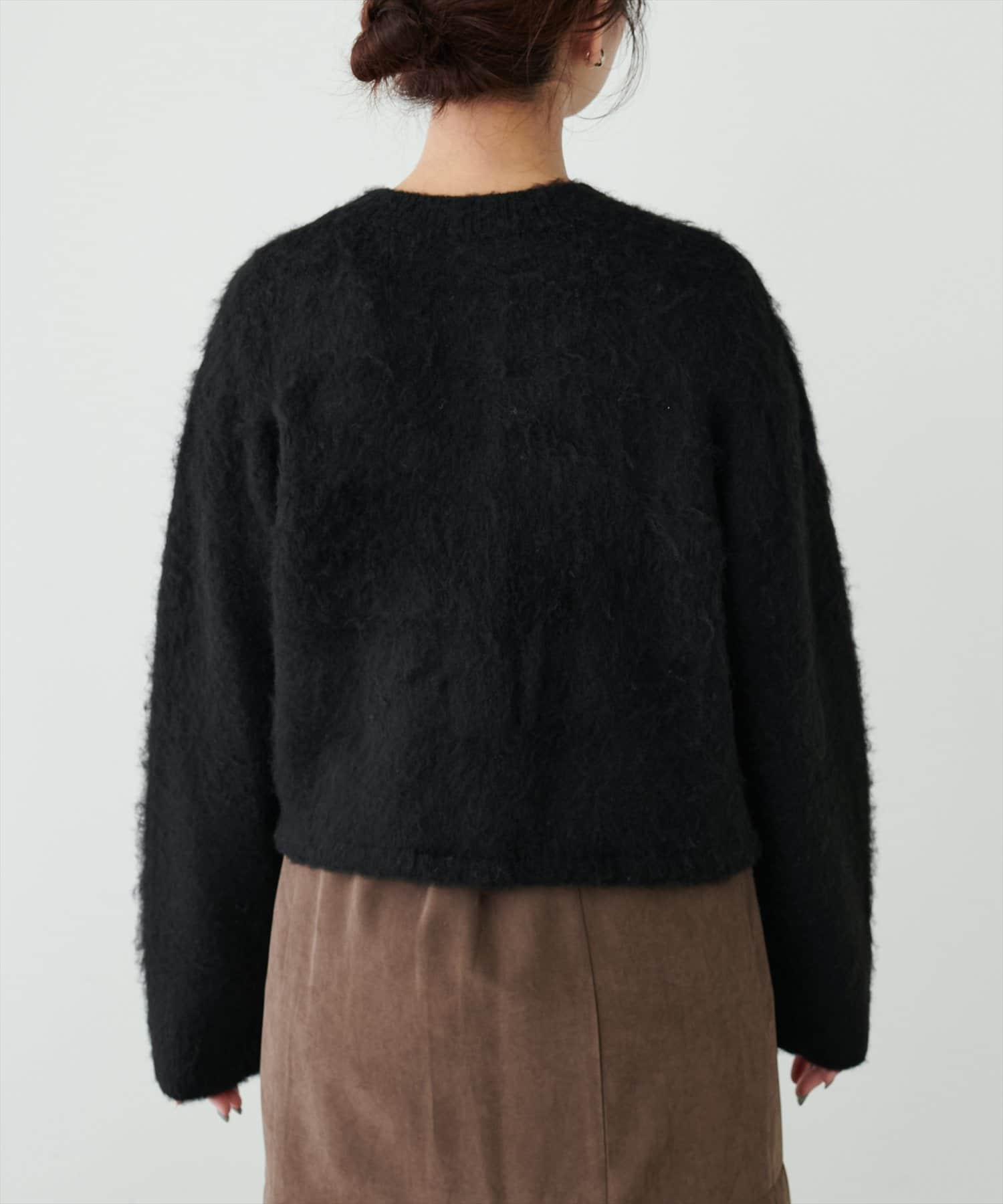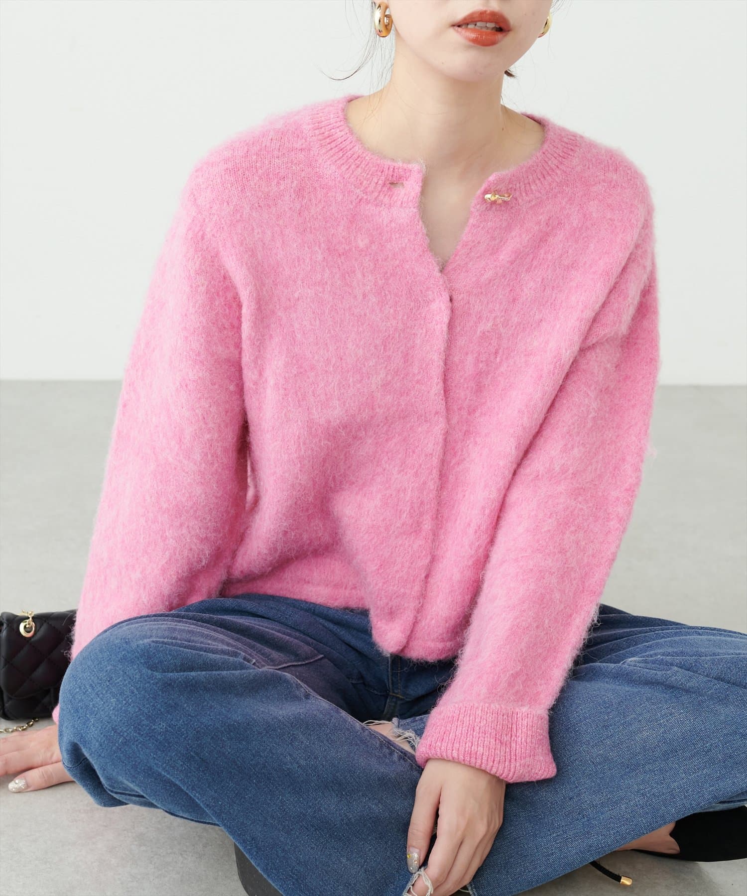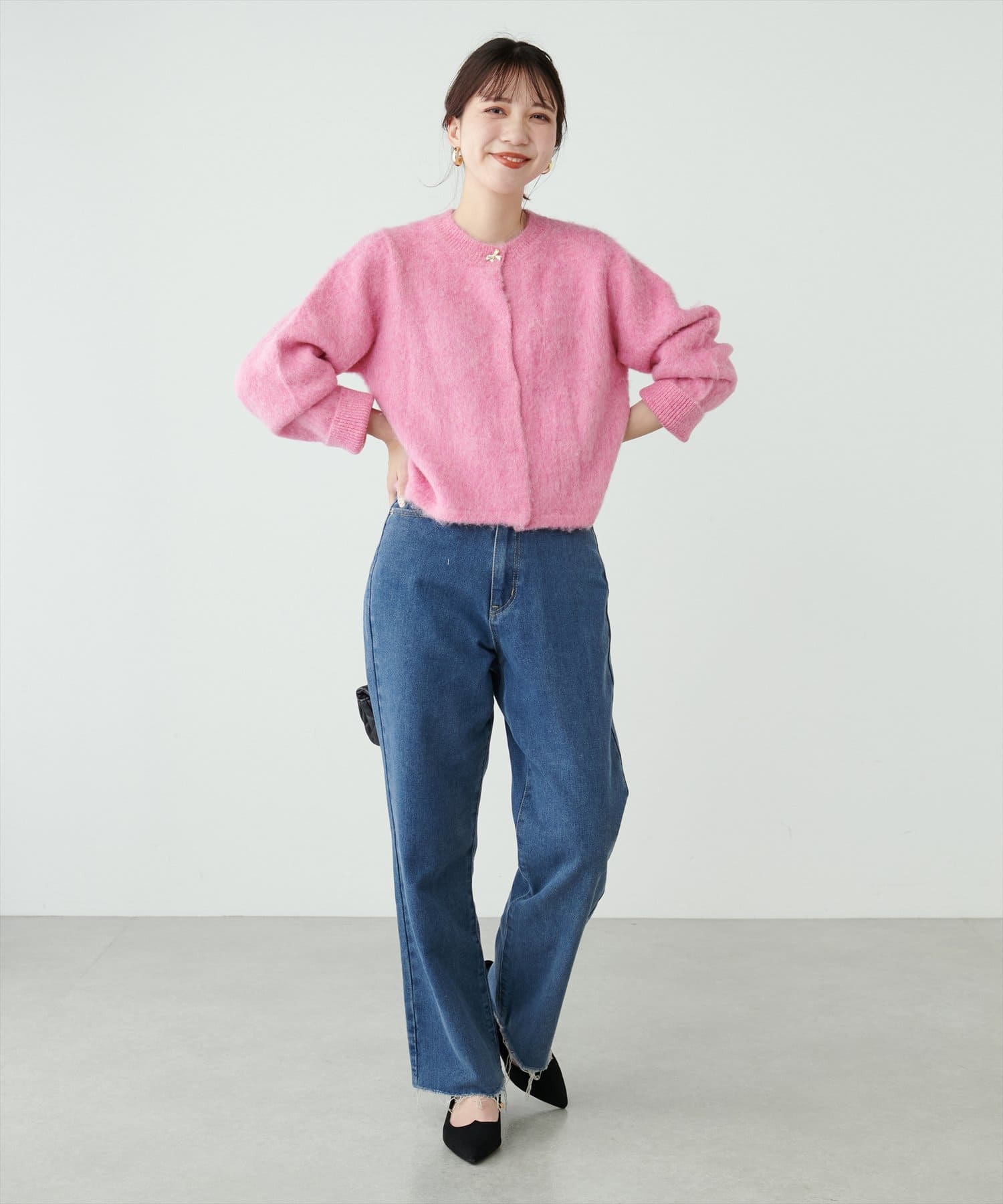 • natural couture(ナチュラルクチュール) 【WEB限定】リボン釦ほわほわショートカーデ