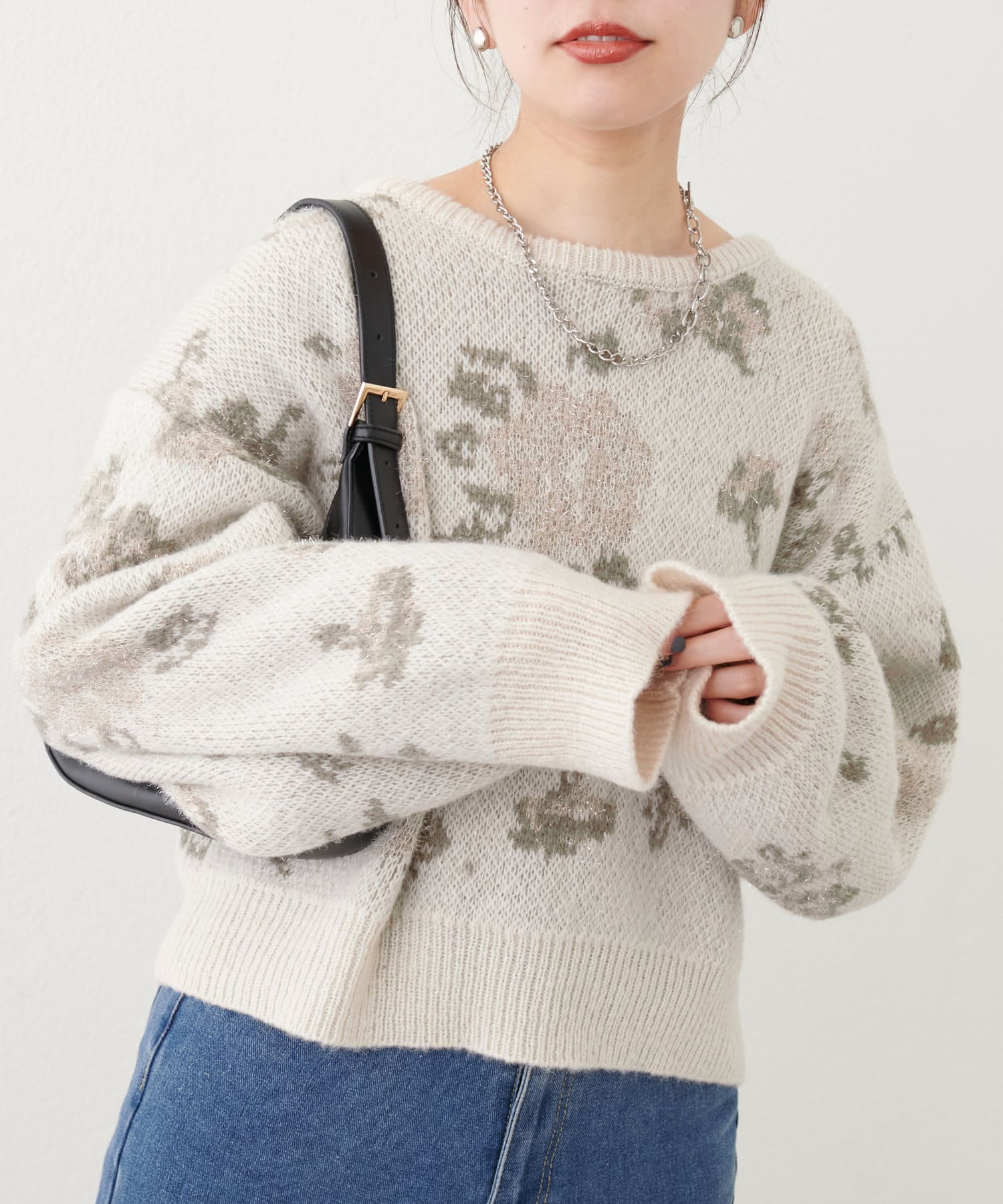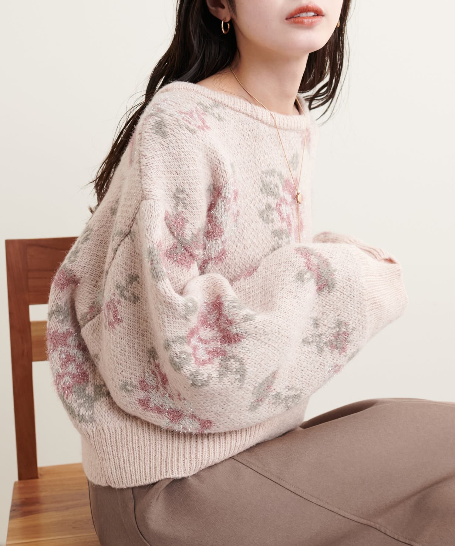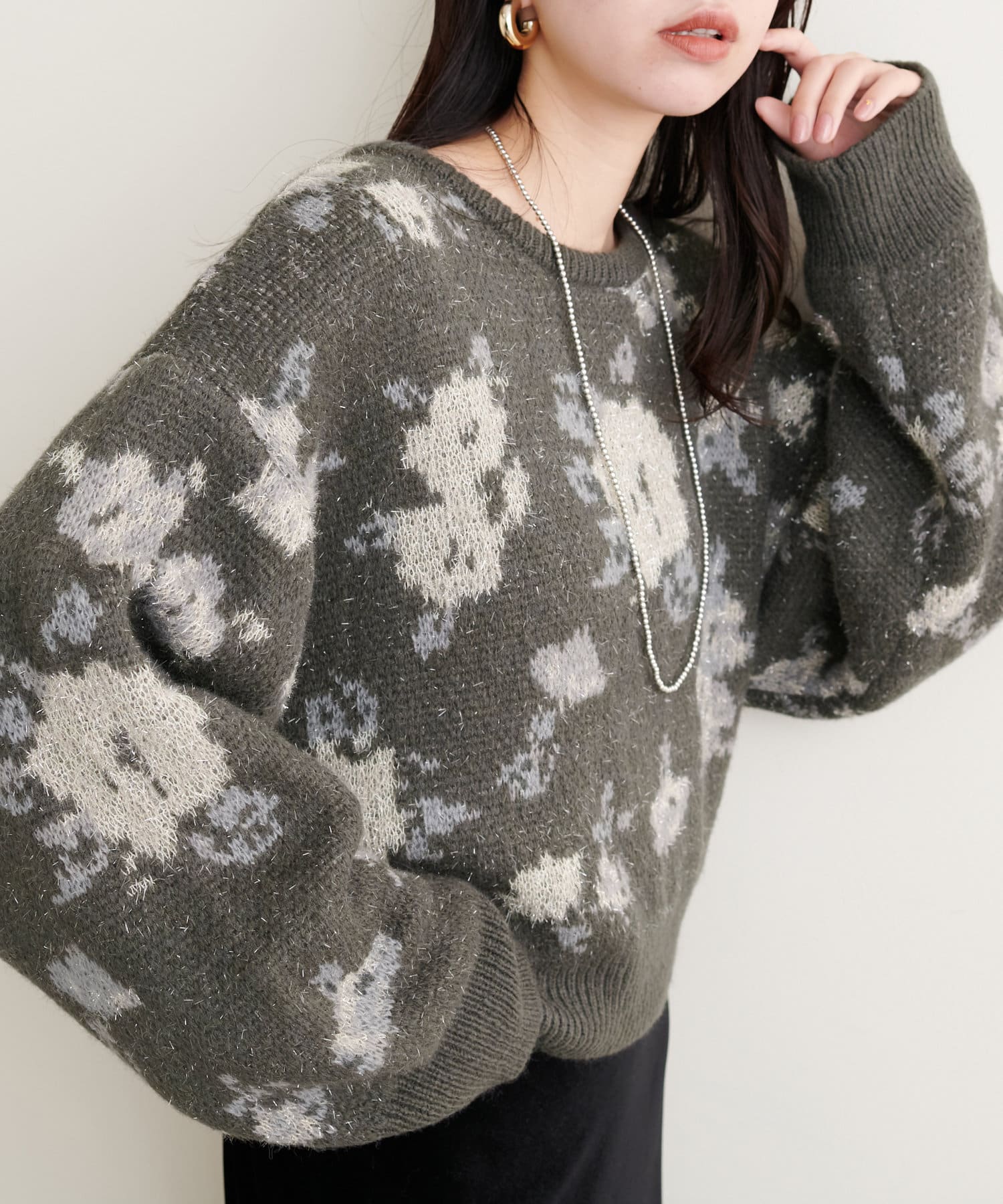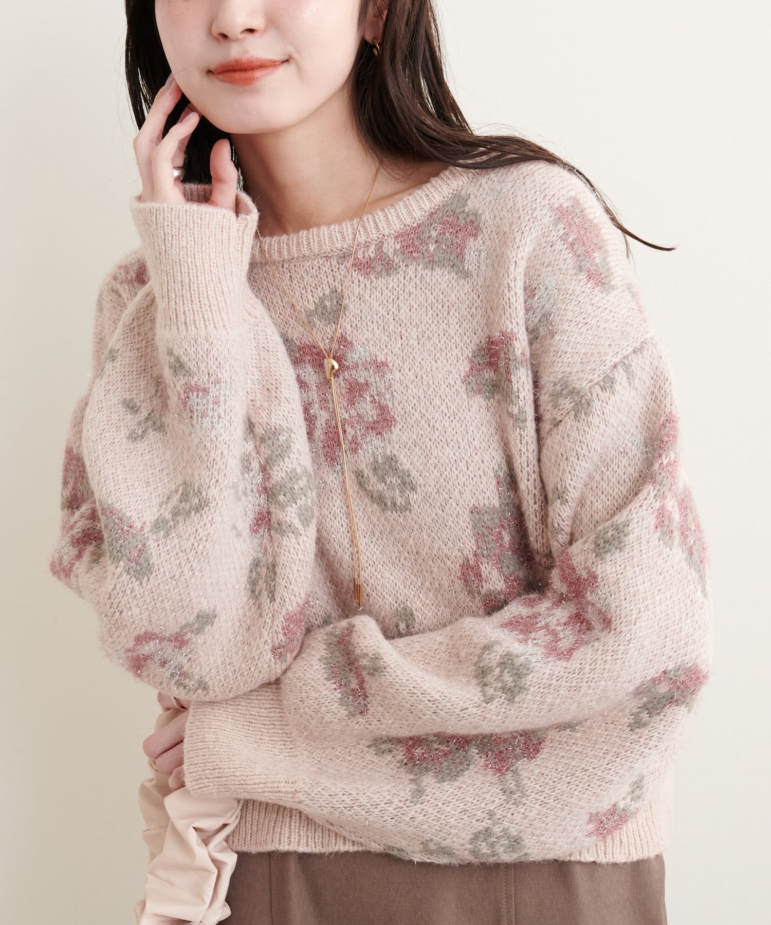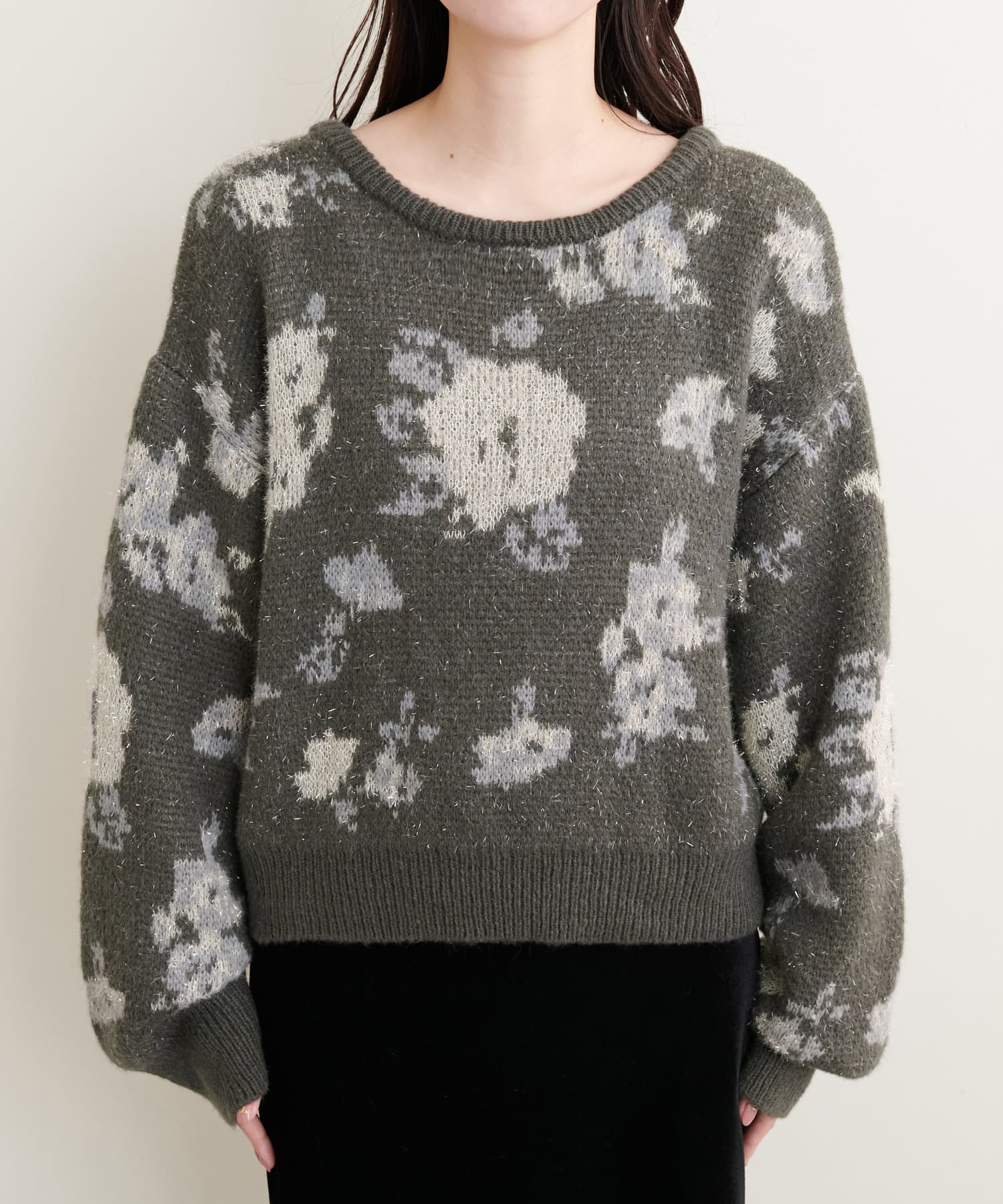 0342050770 ラメ入りふらわジャガードゆるカーデ
