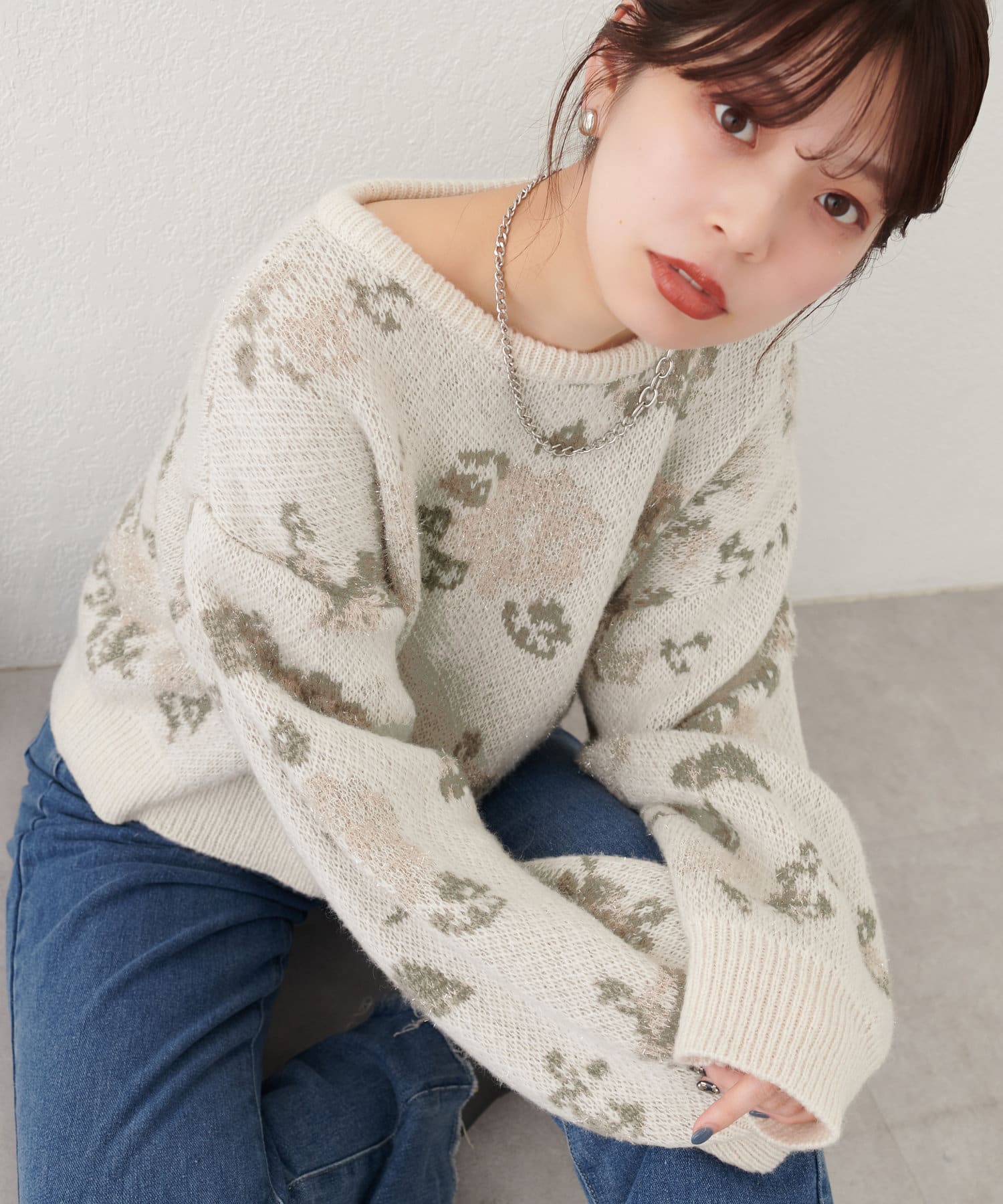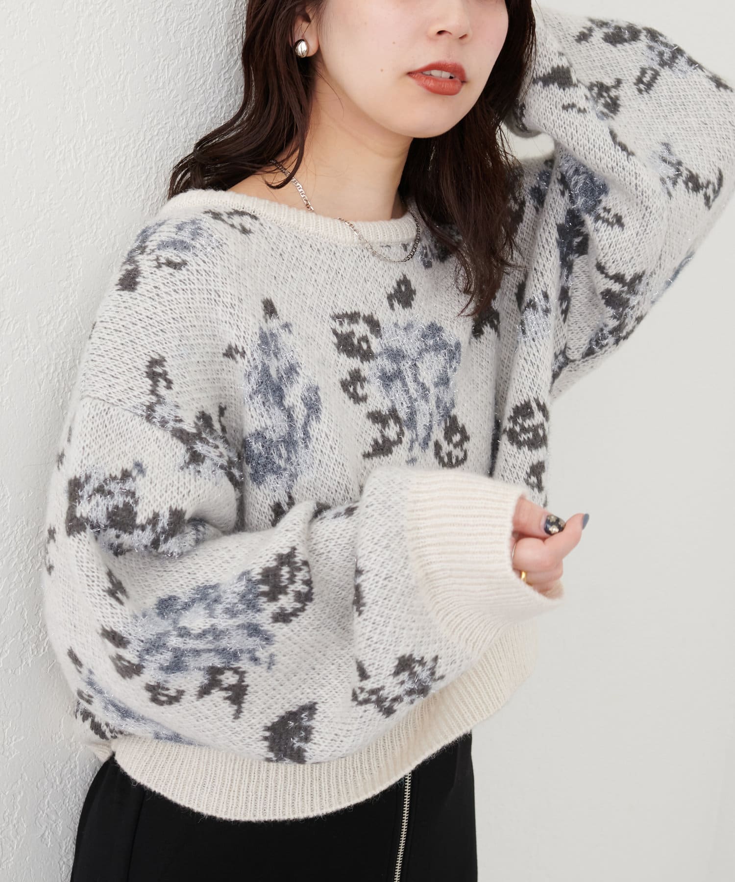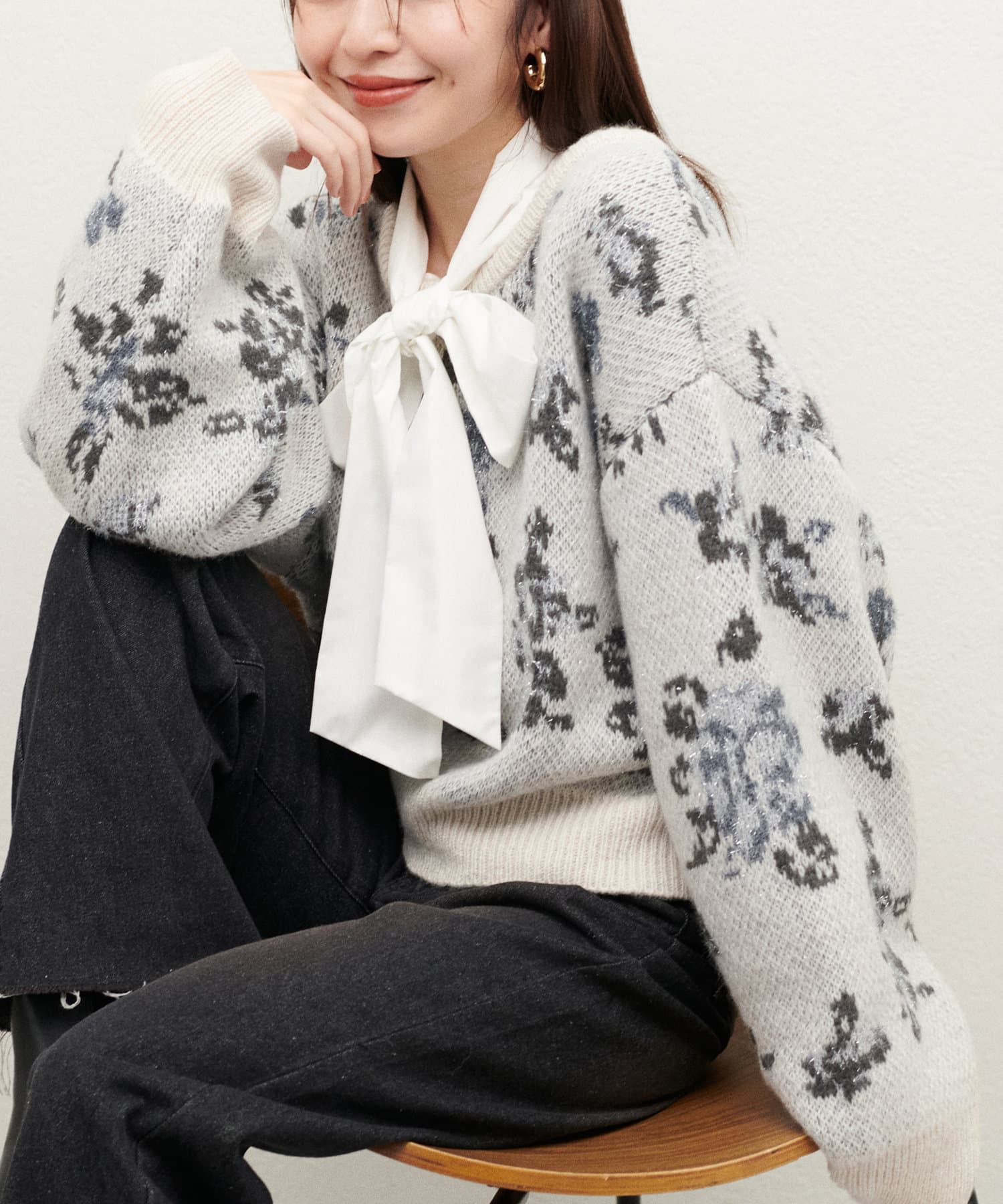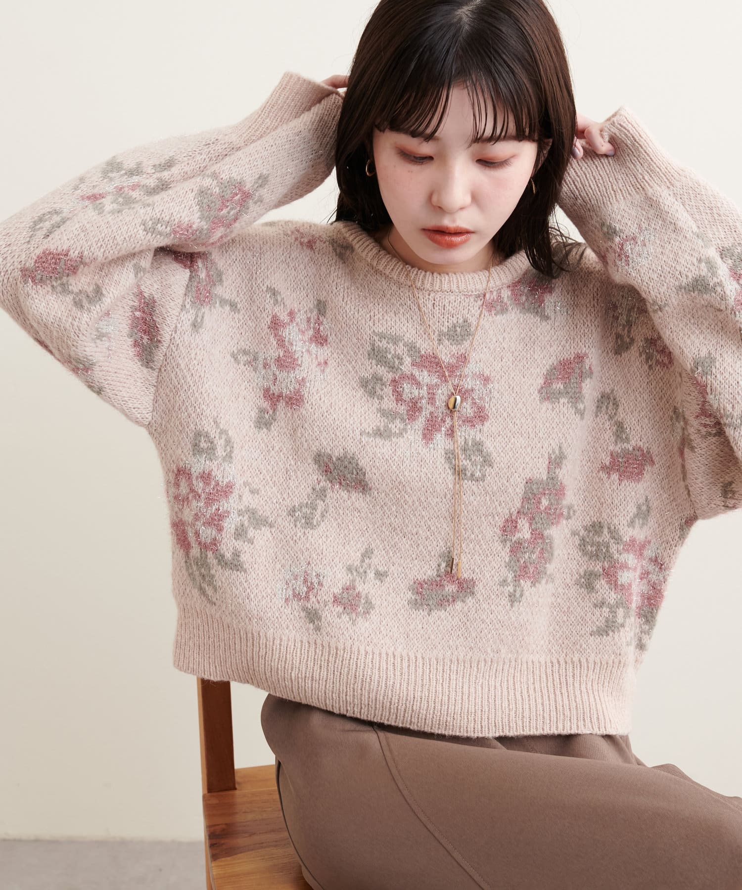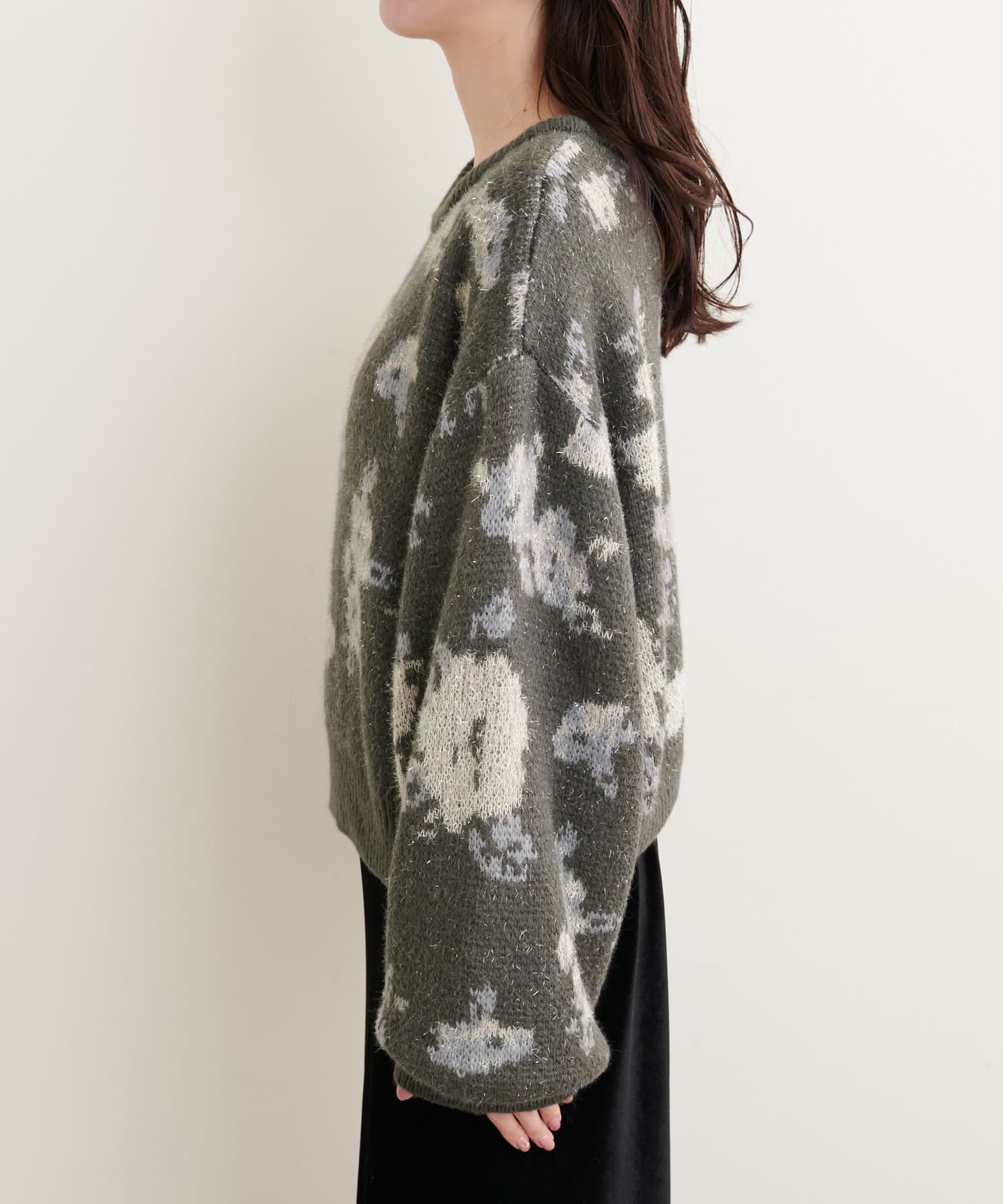 0342050770 ラメ入りふらわジャガードゆるカーデ