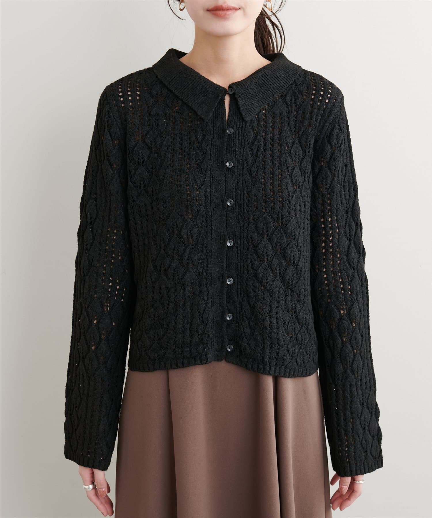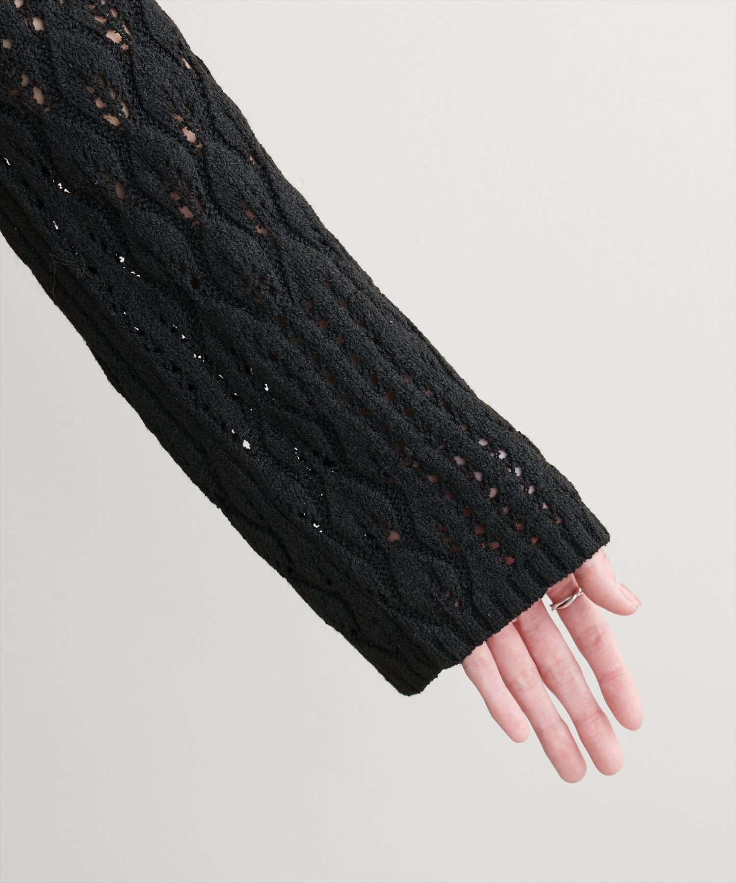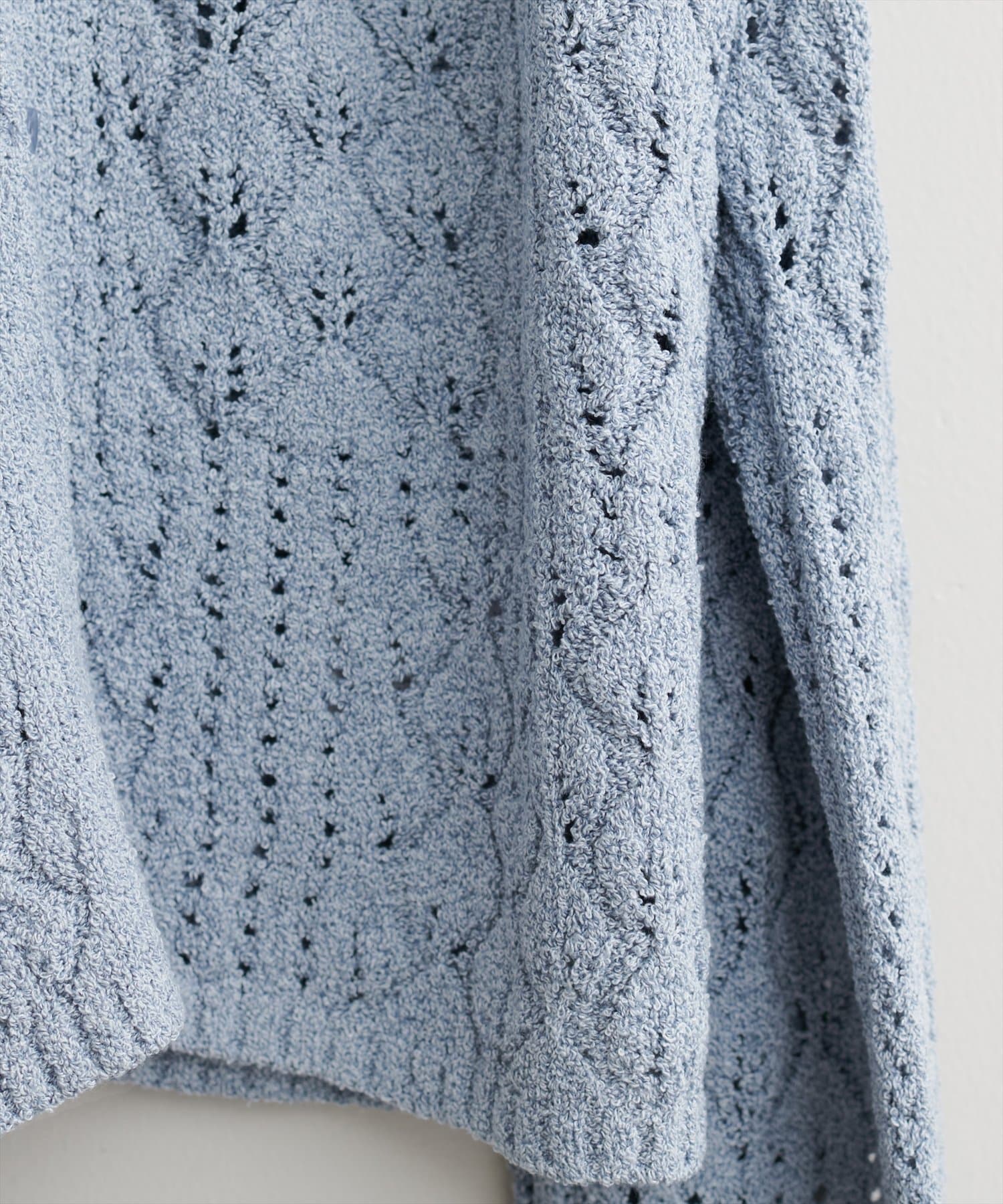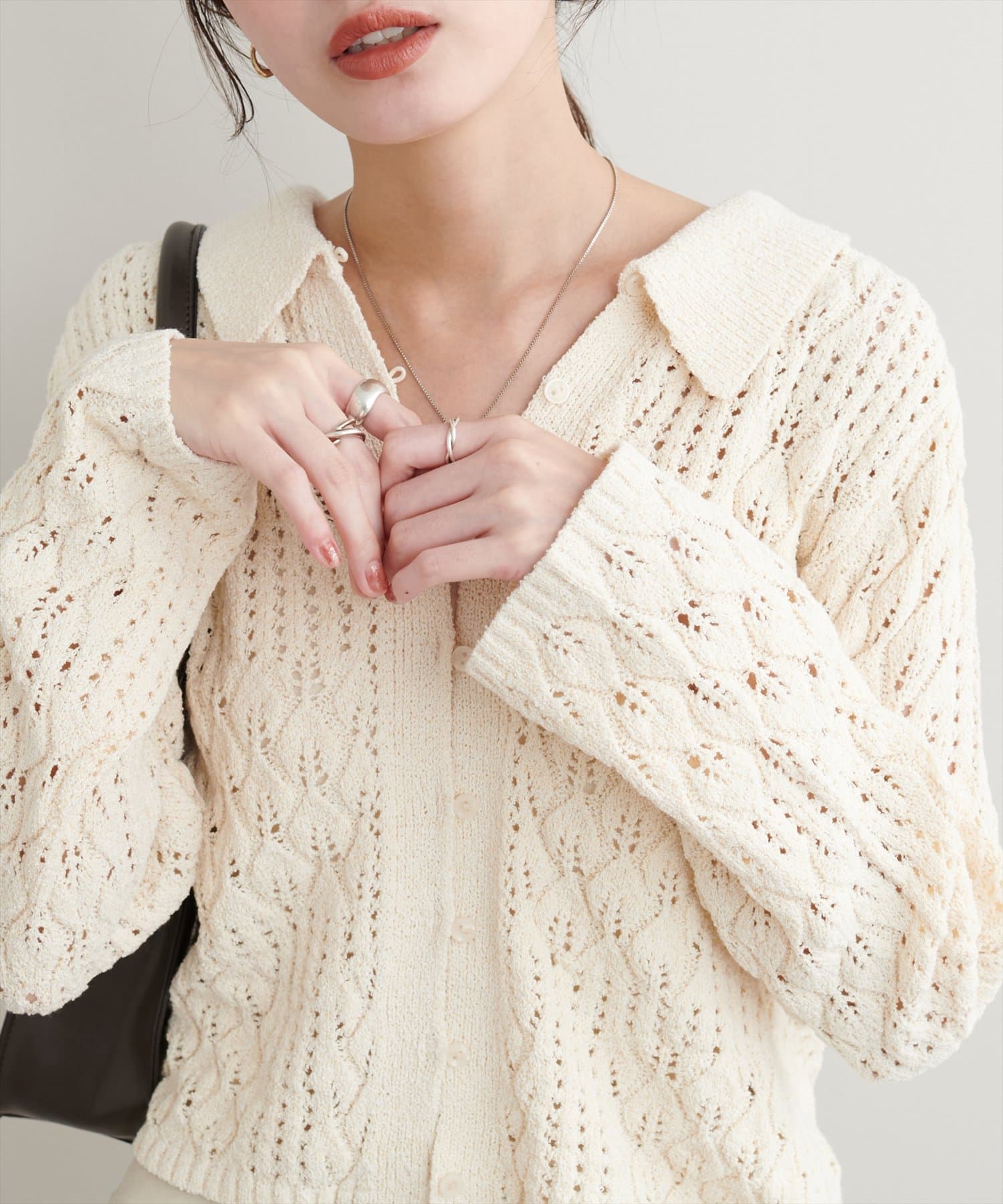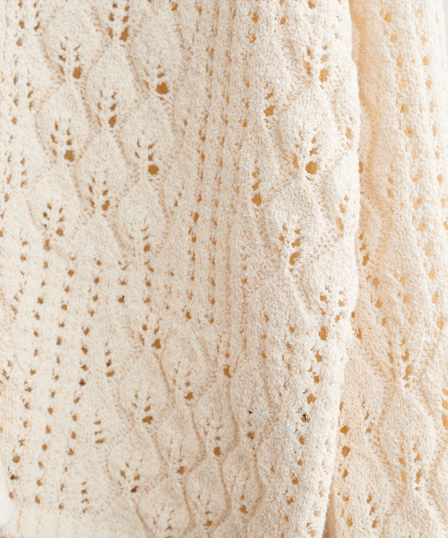 透かし編みデザインなので重たくならず抜け感のあるデザイン。