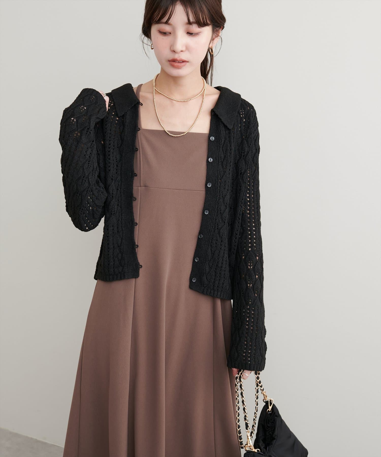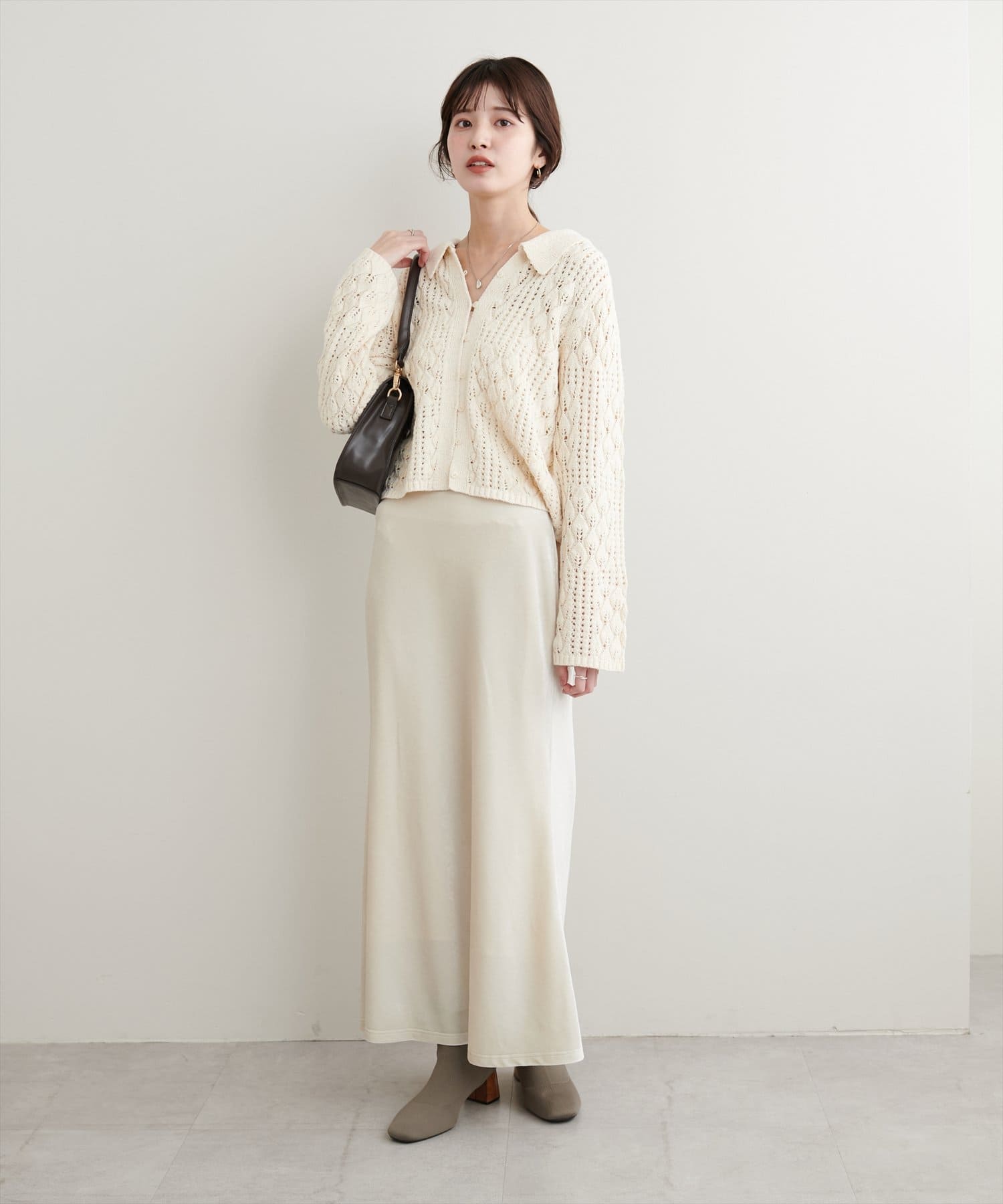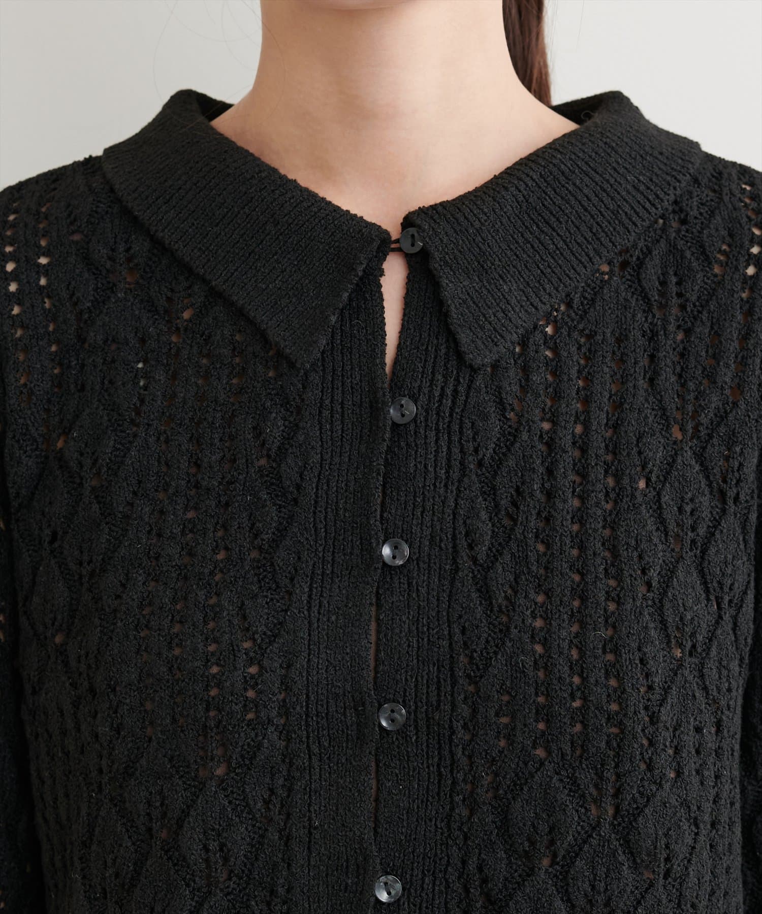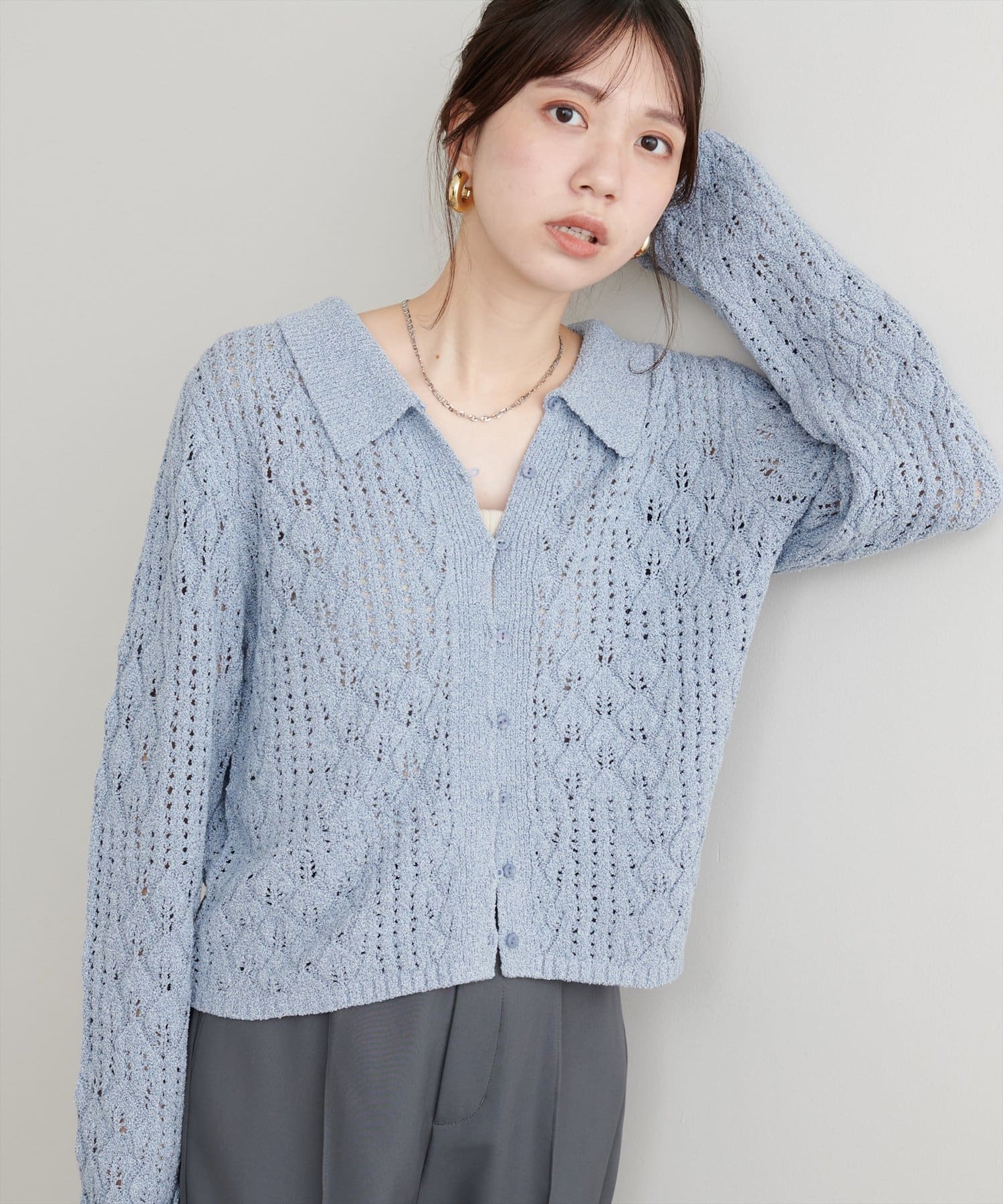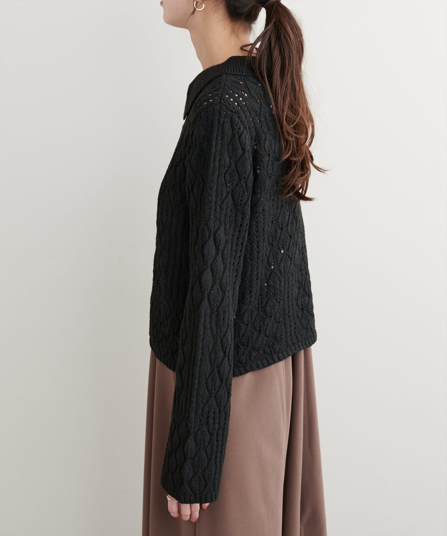 透かし編みデザインなので重たくならず抜け感のあるデザイン。