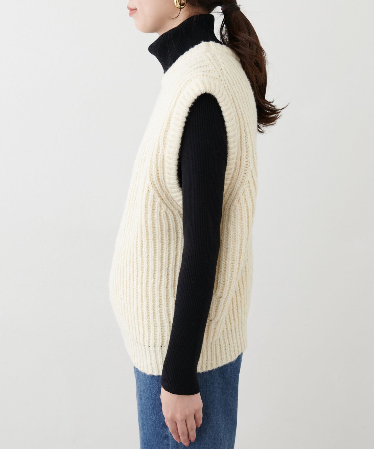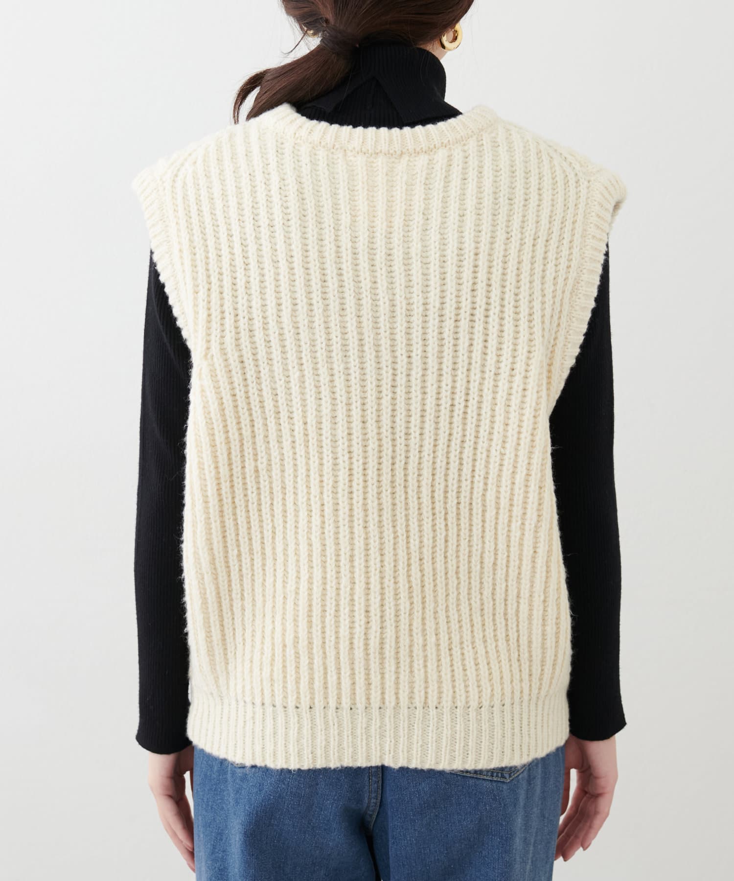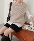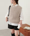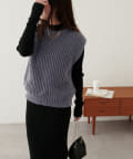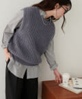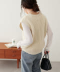 立体感のある畦編みのクルーネックベスト。