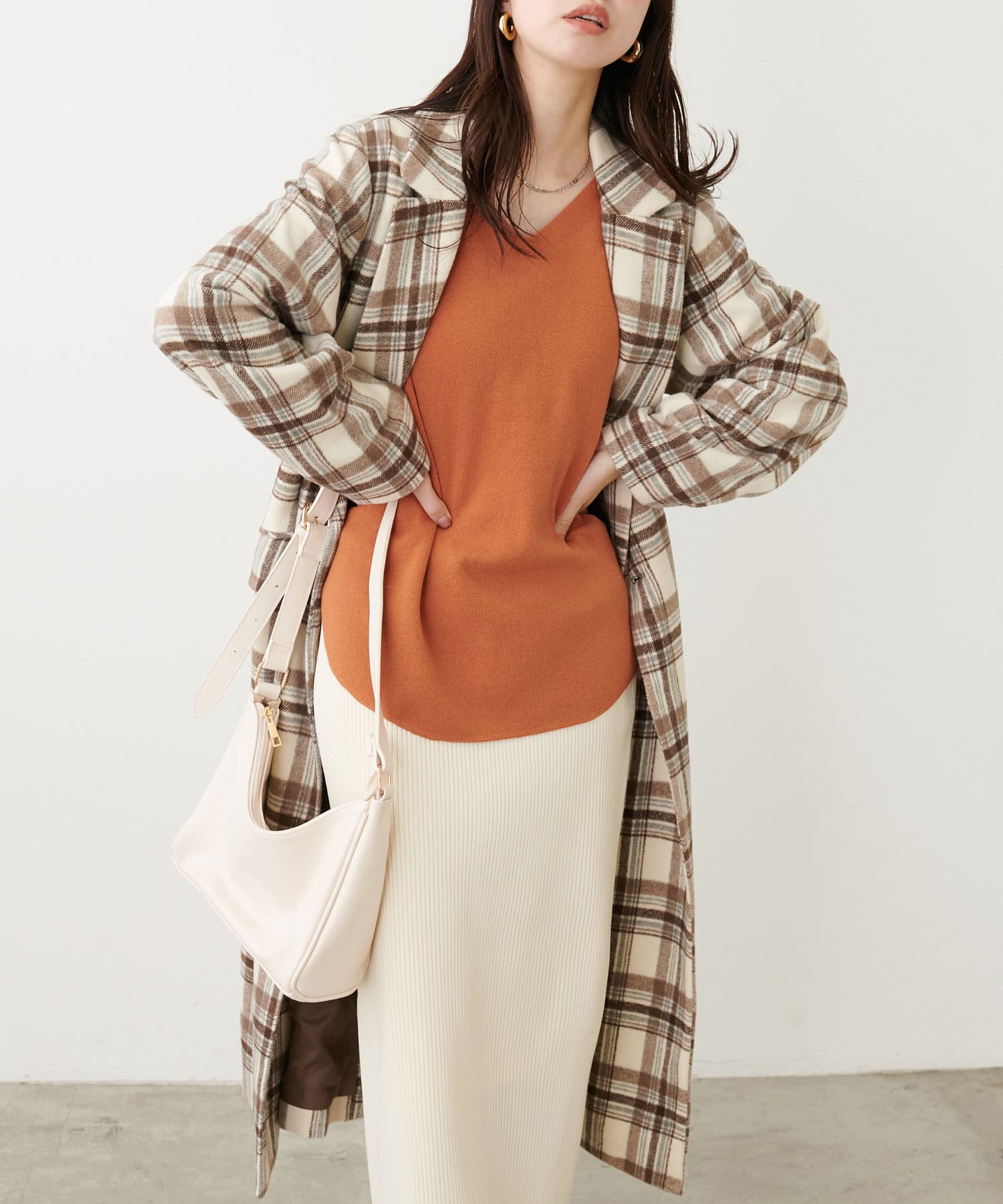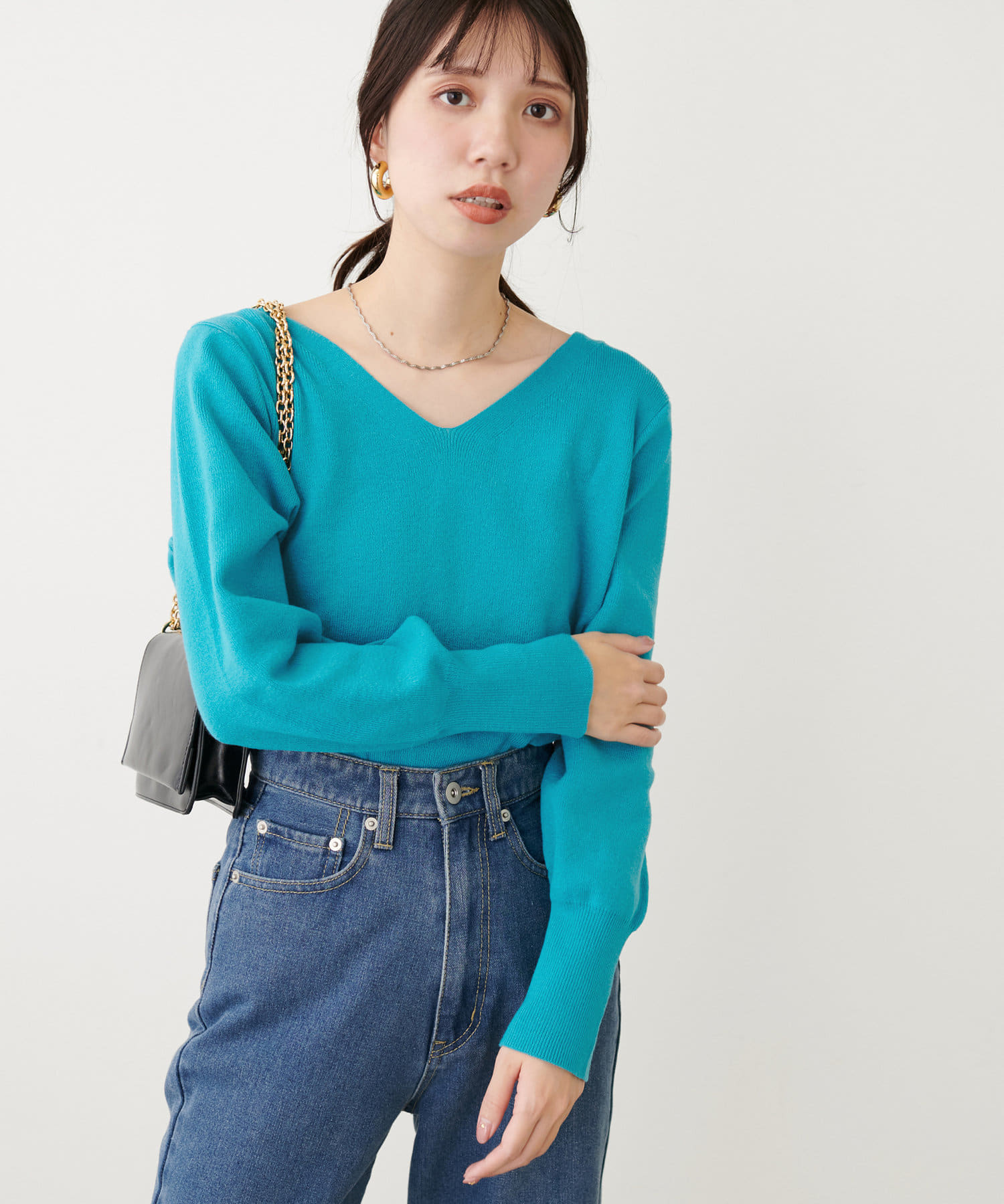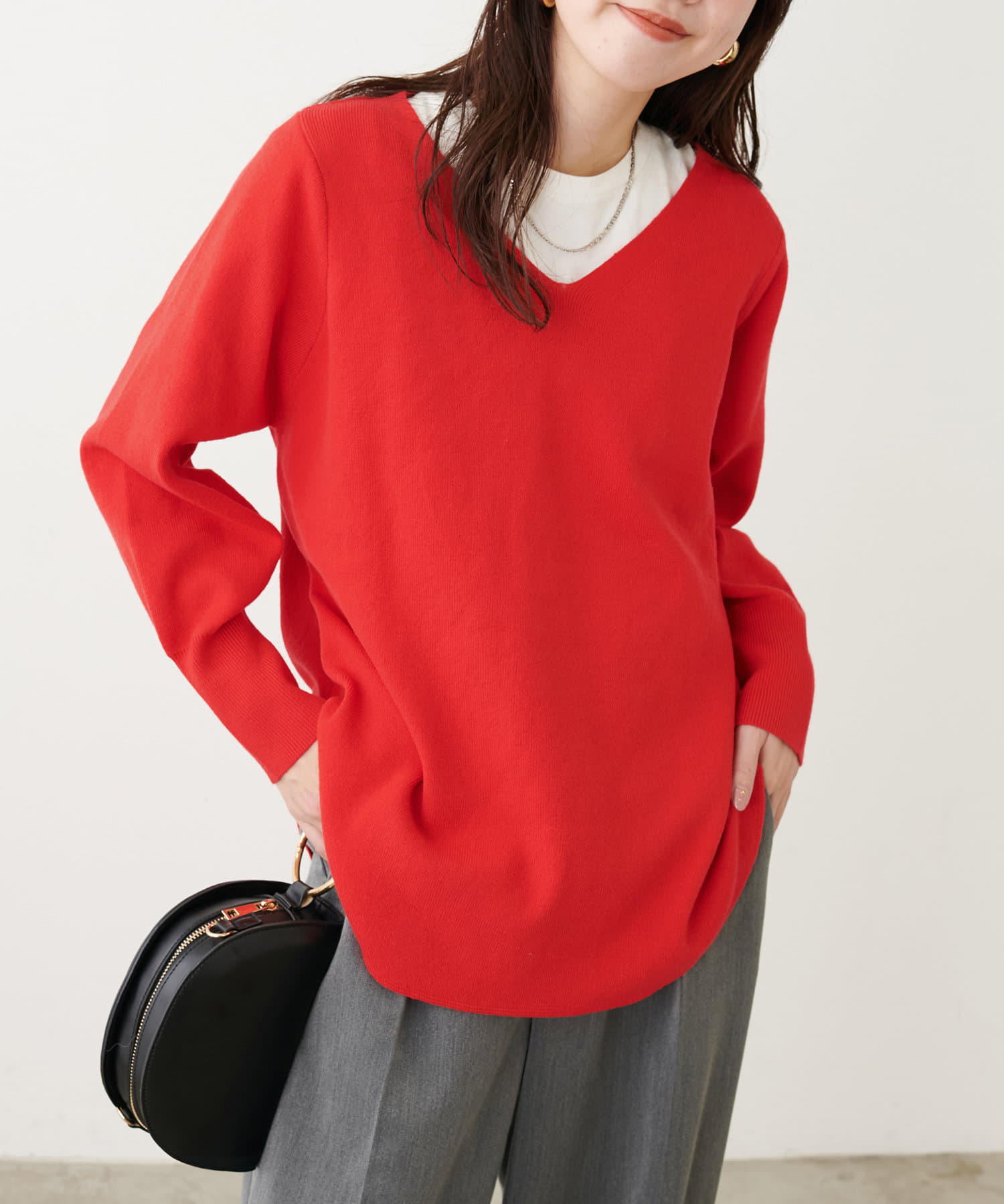 そうすることで、カジュアルな印象のあるVネックもきれいめなアイテムとも合わせやすくしました。