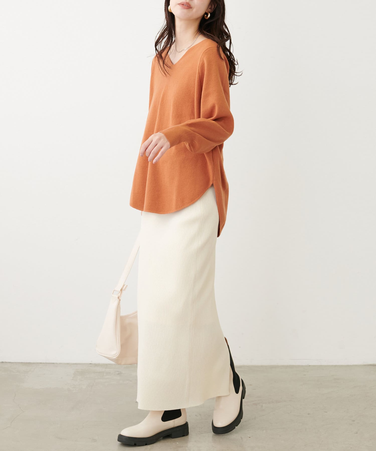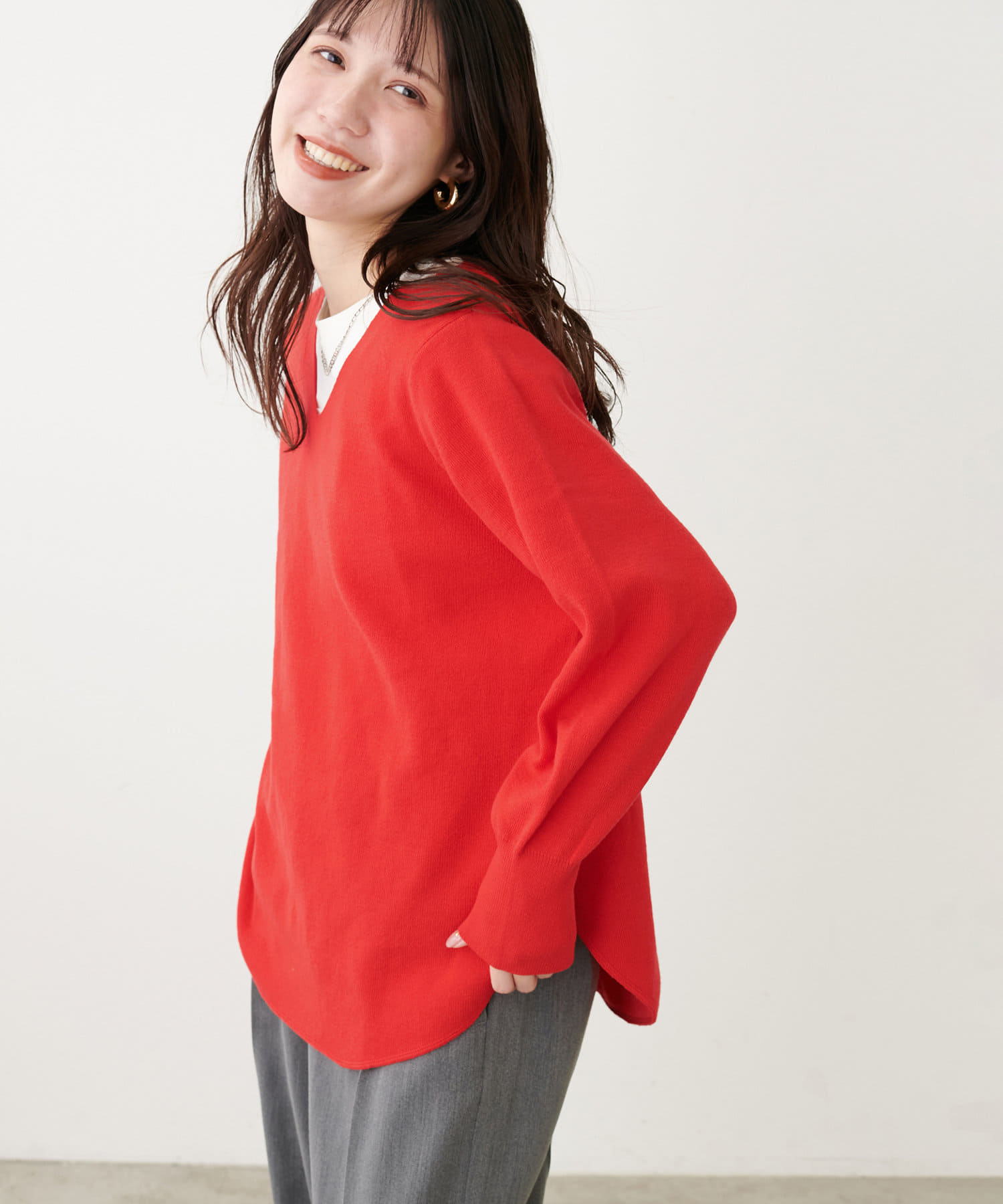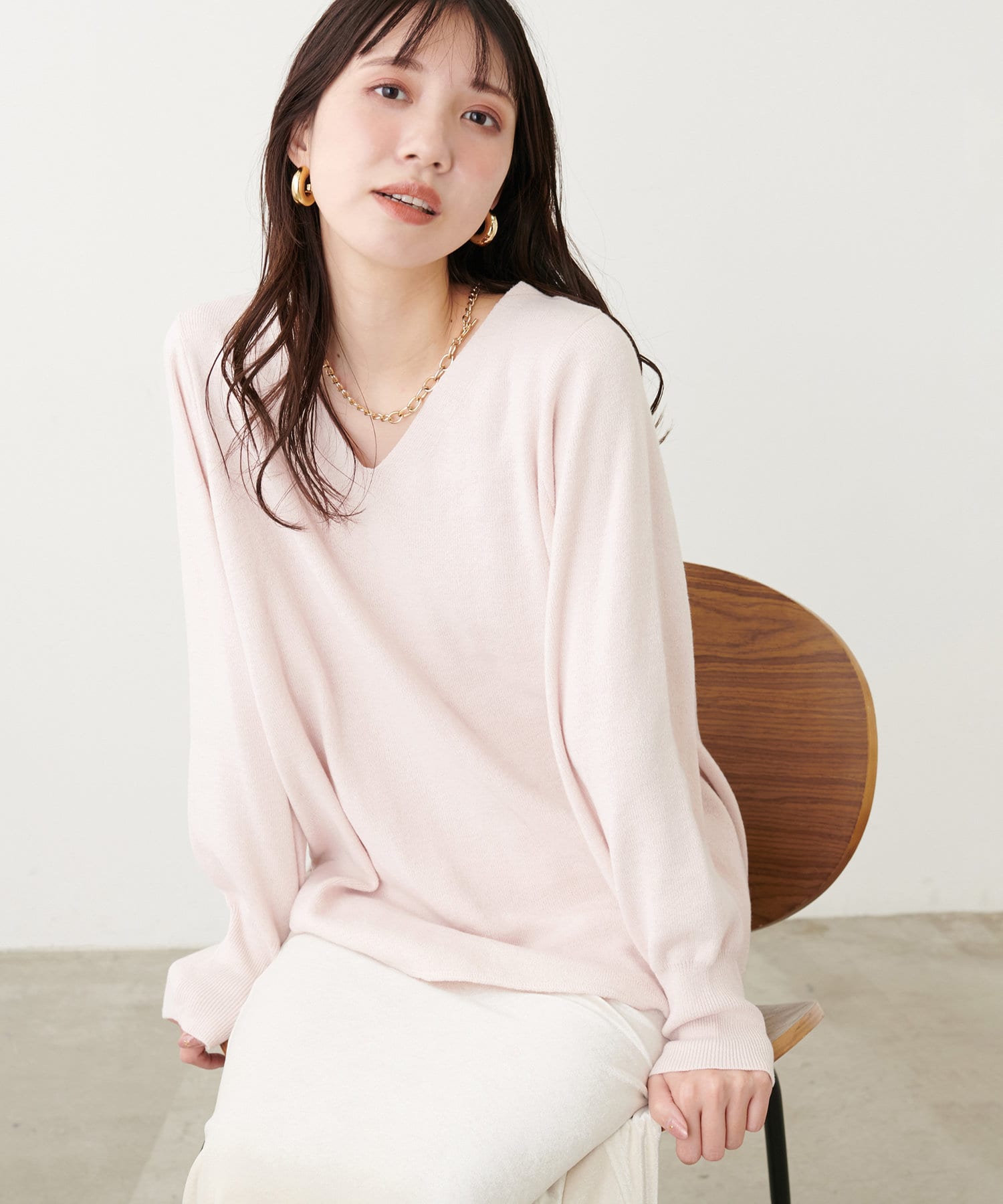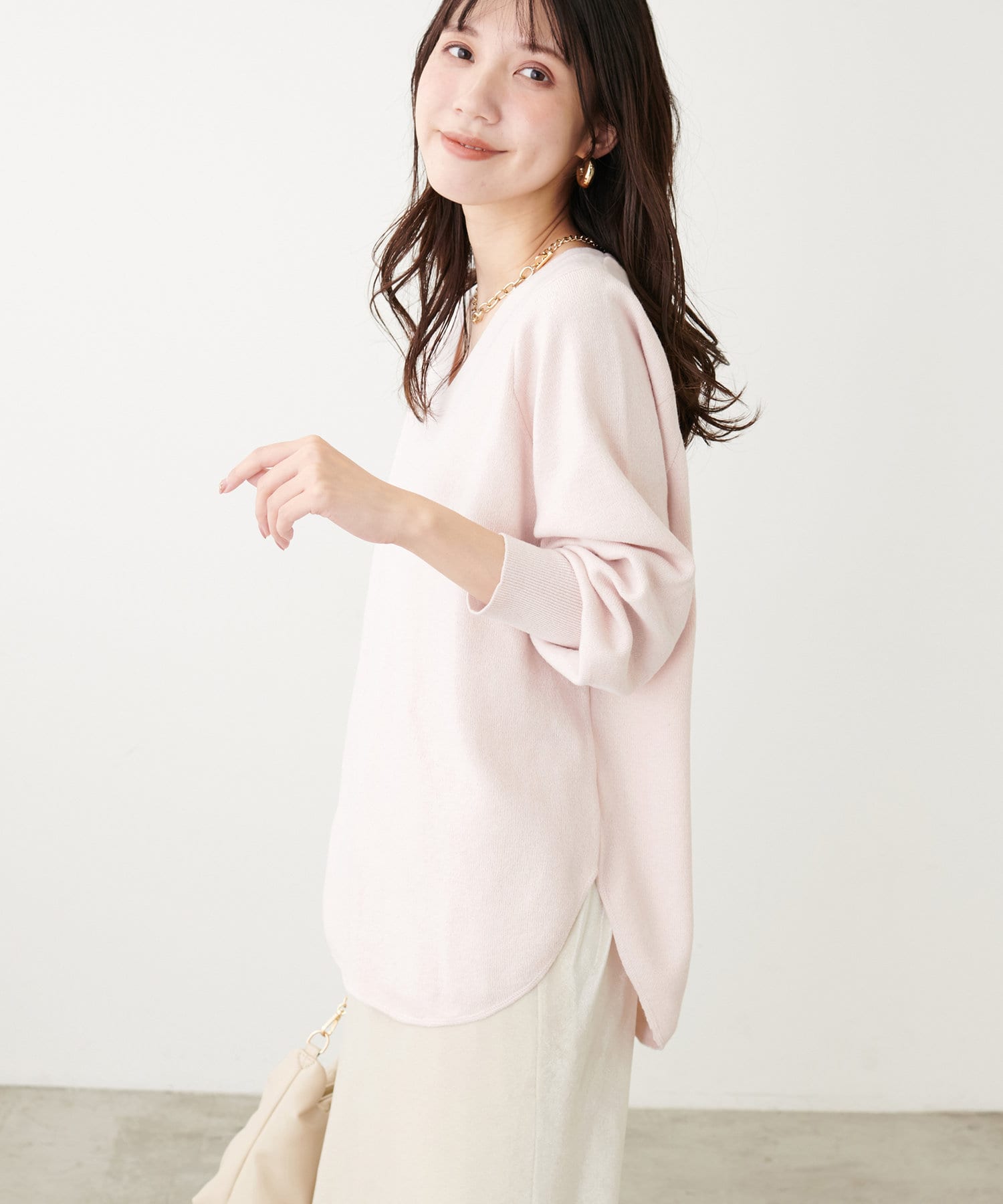 リブニットのようなフィット感が苦手な方にもおすすめしたいニット。