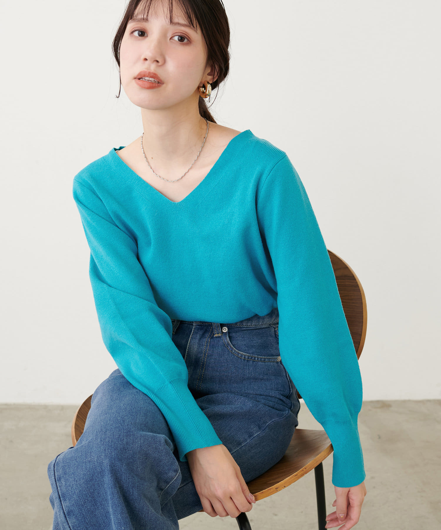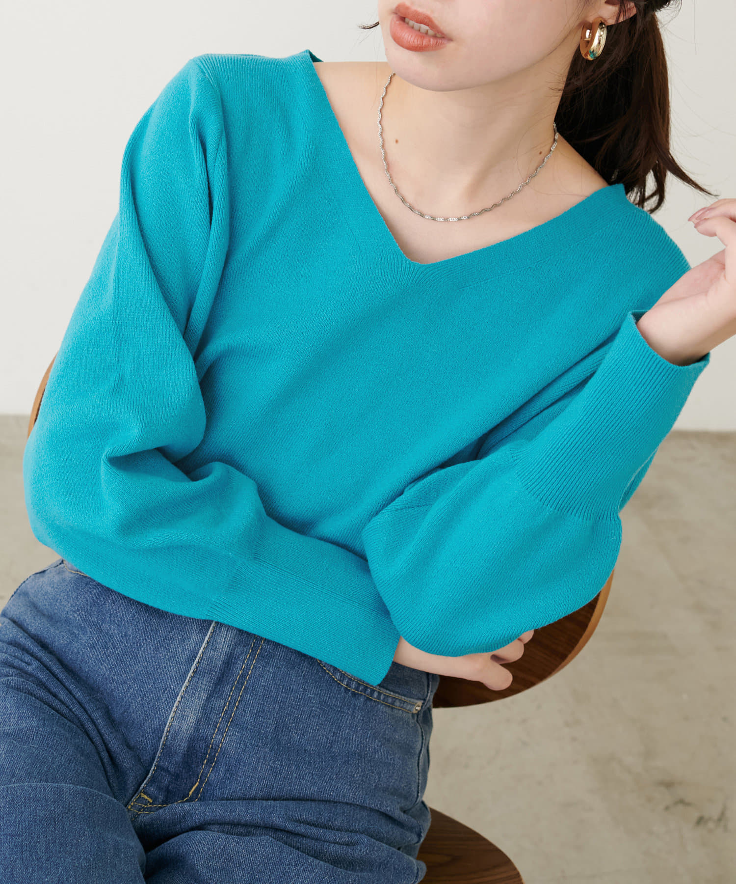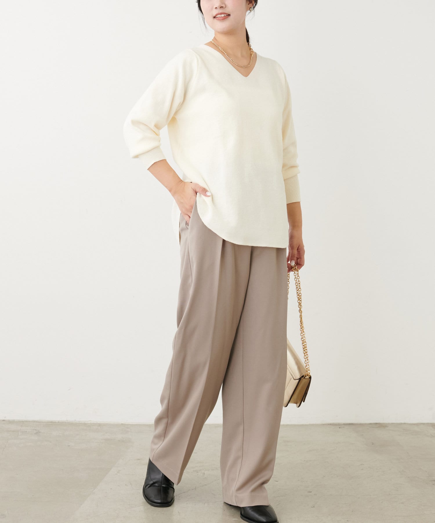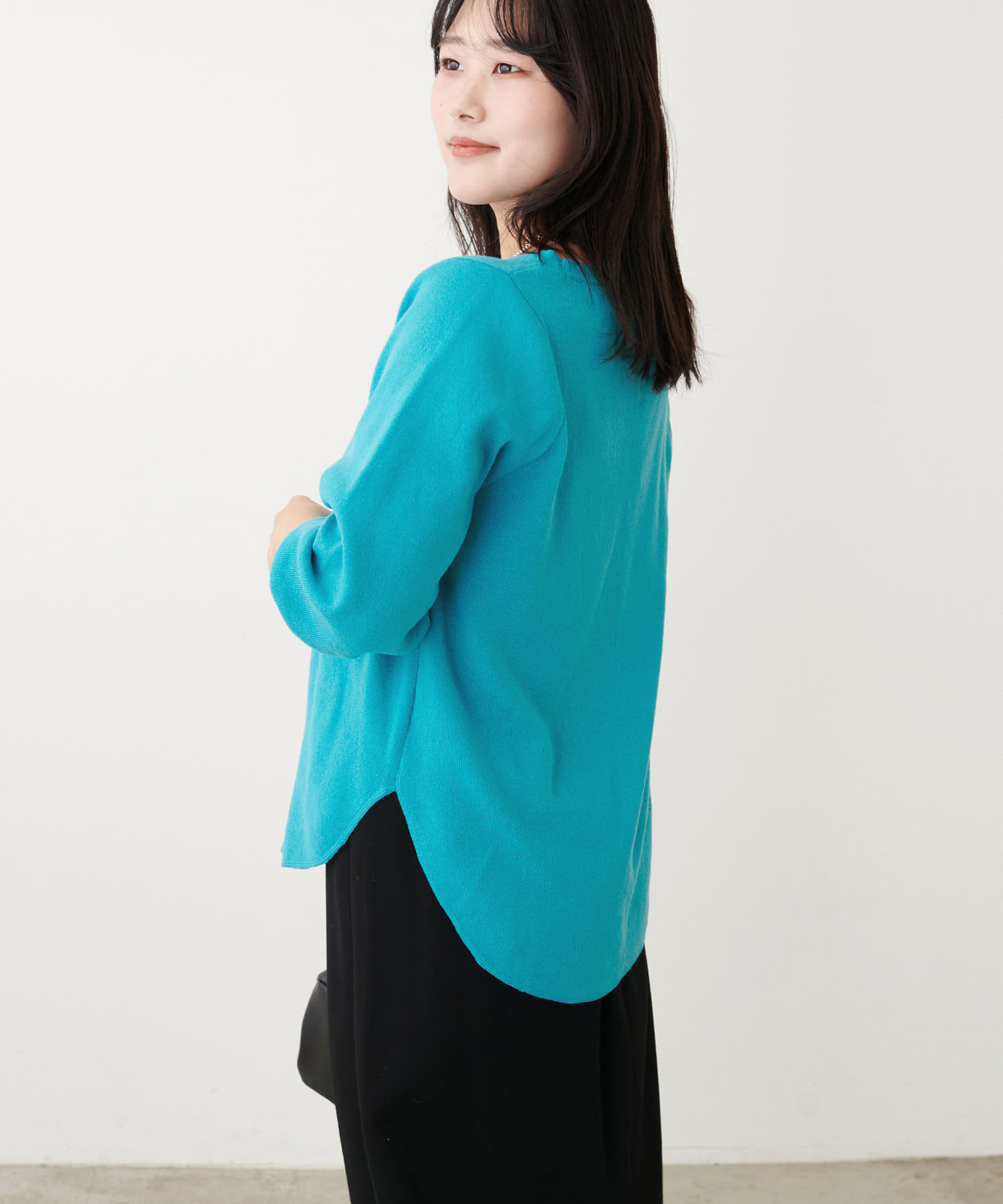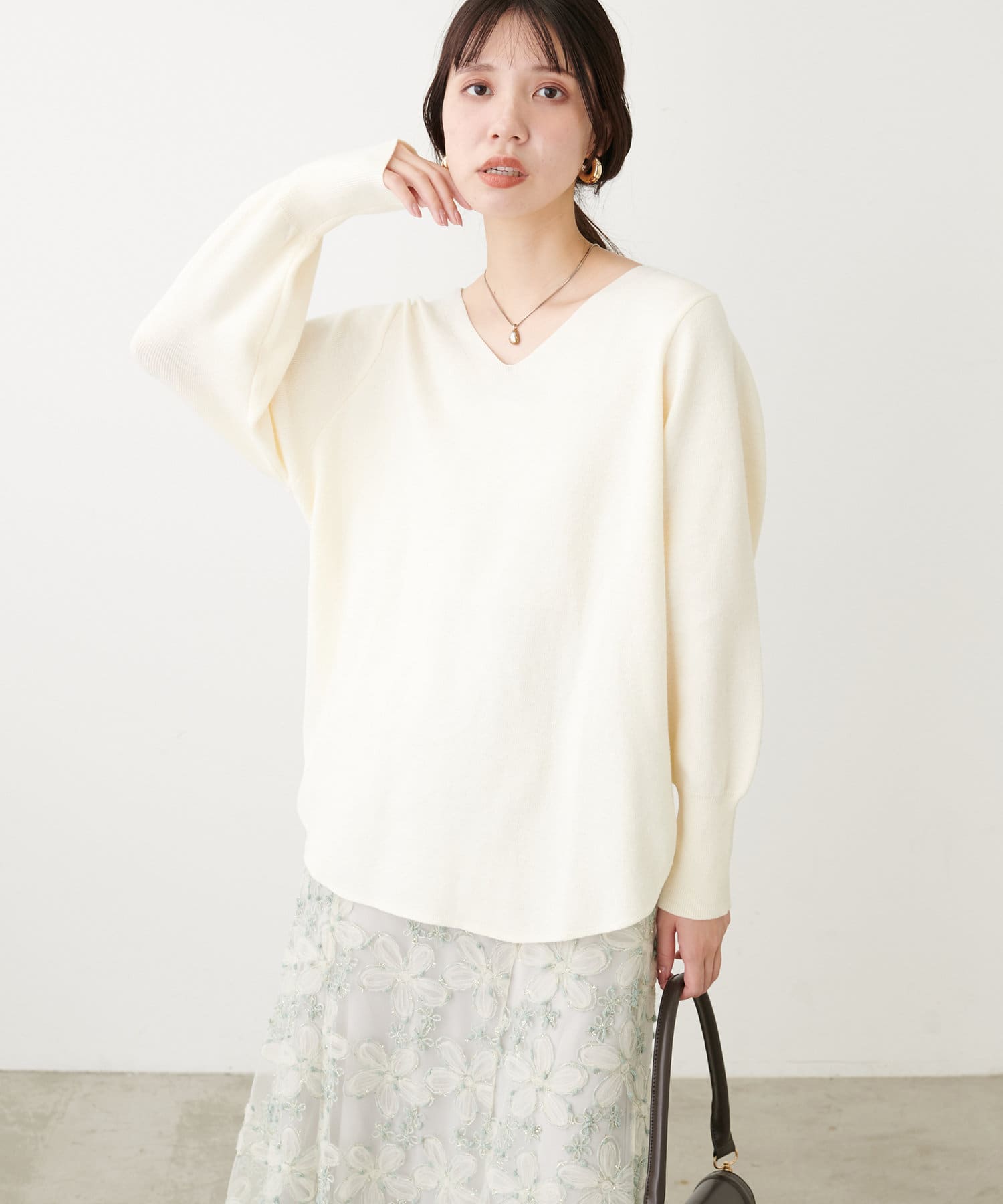 リブニットのようなフィット感が苦手な方にもおすすめしたいニット。