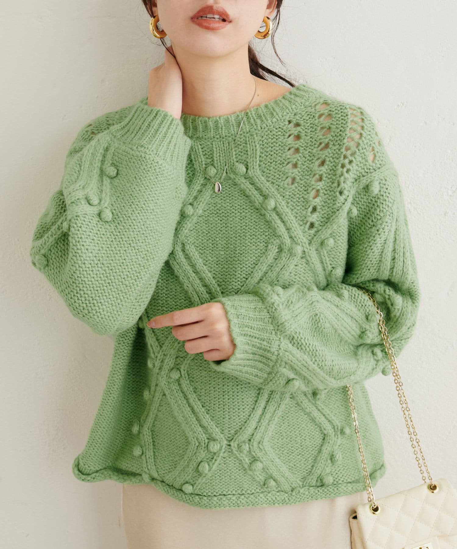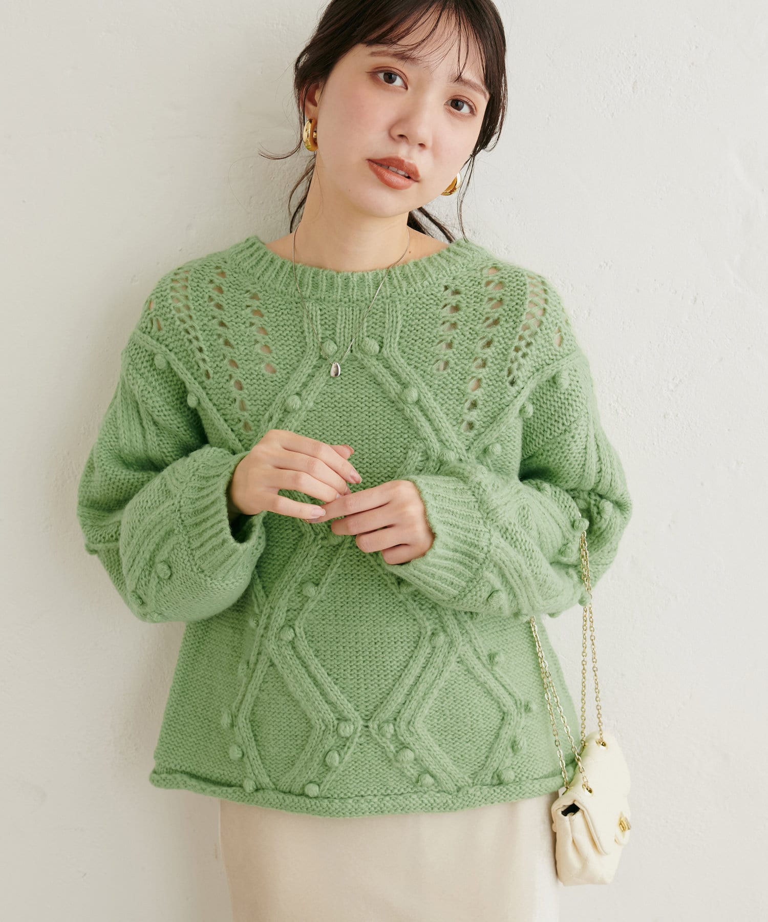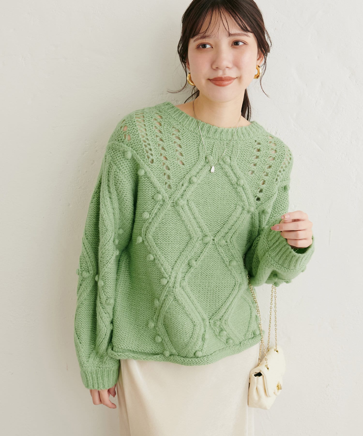 手編みのようなざっくりとした網目の可愛いニット。