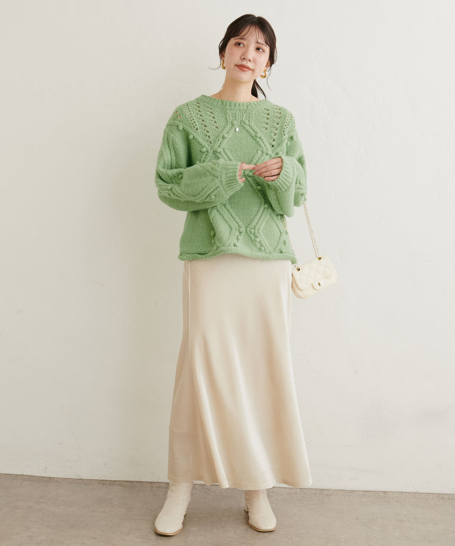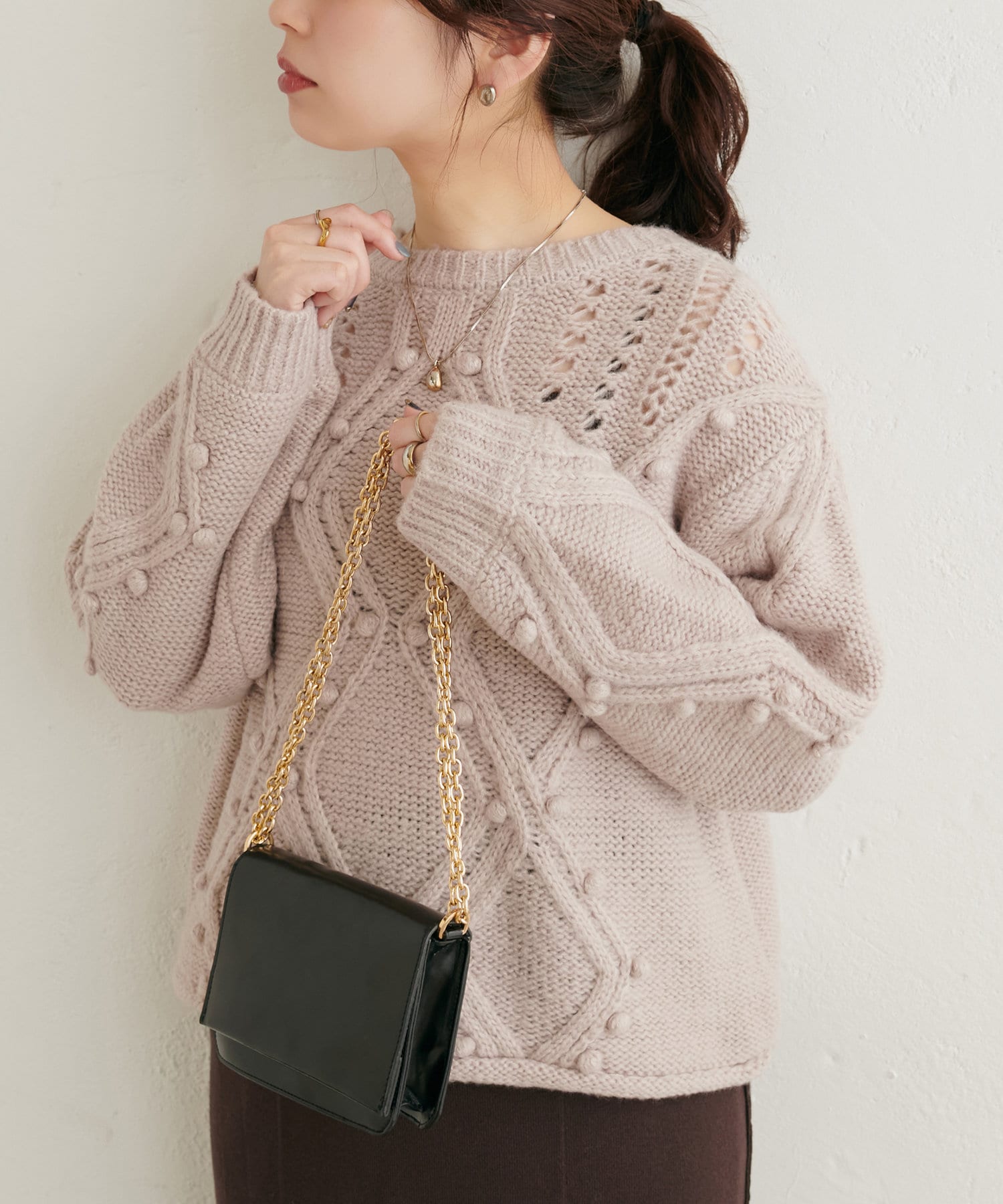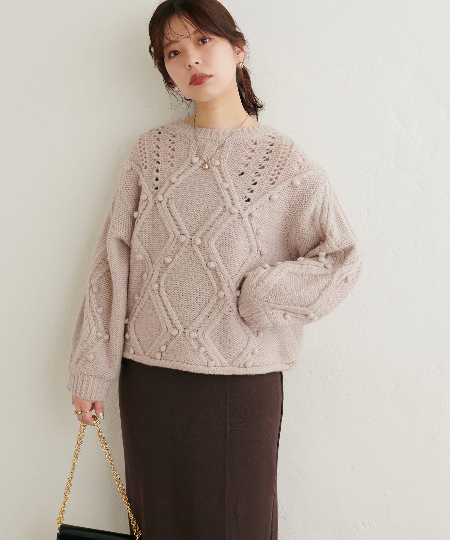 手編みのようなざっくりとした網目の可愛いニット。