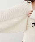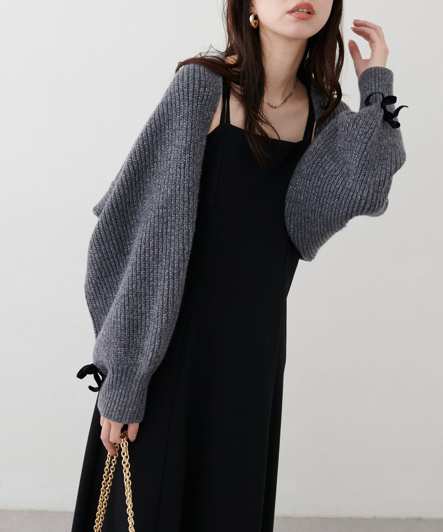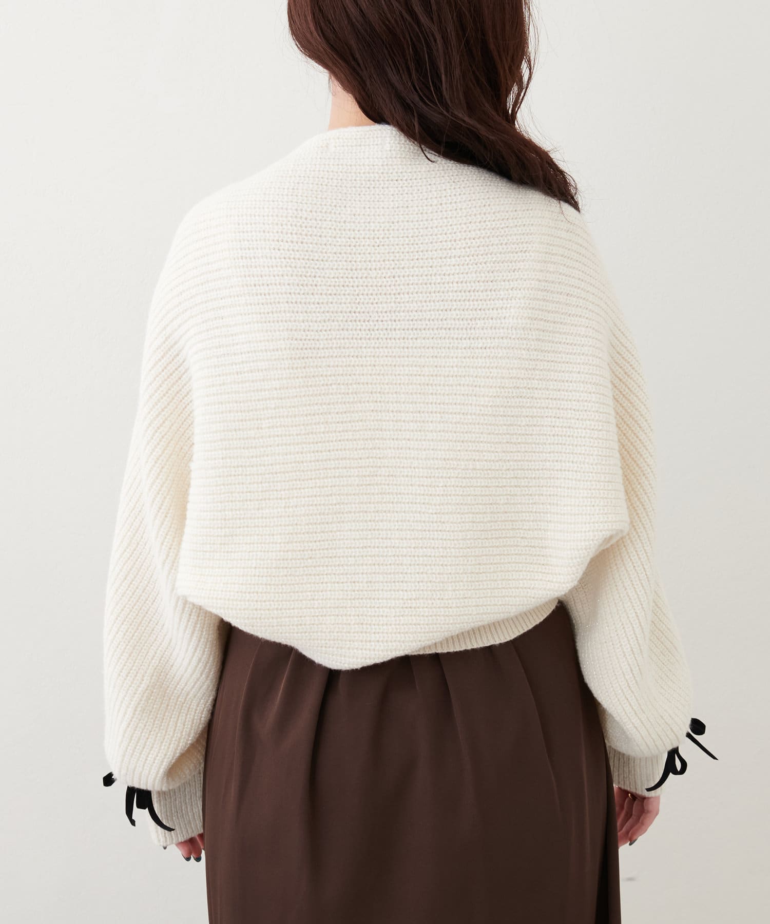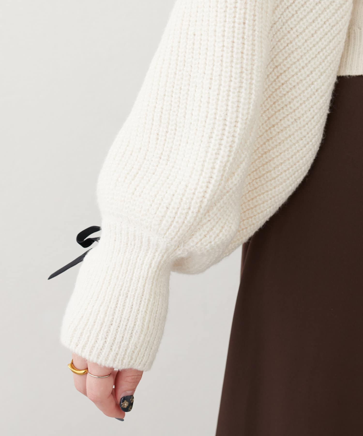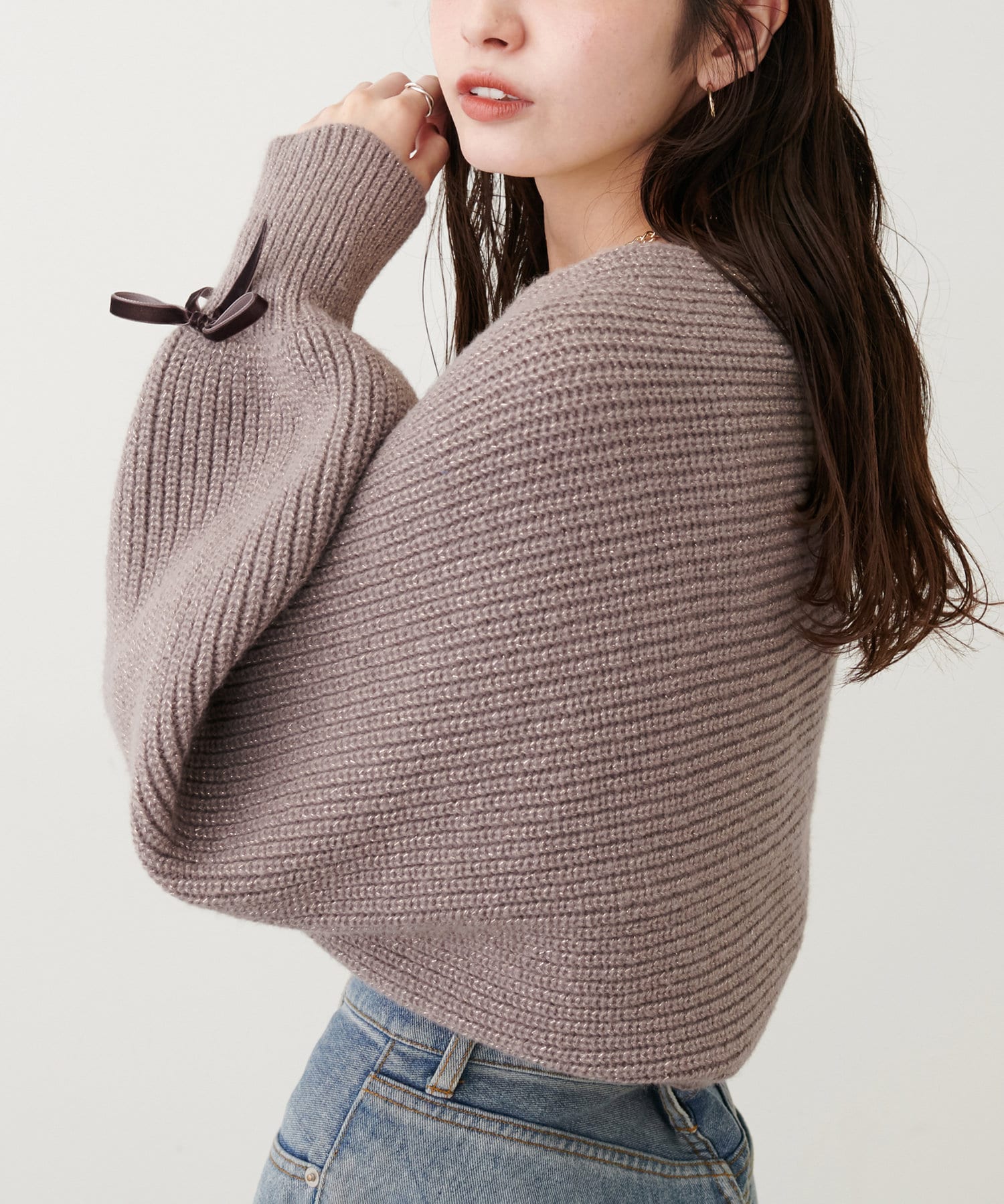ラメが混ざったニットで、上品な印象に。