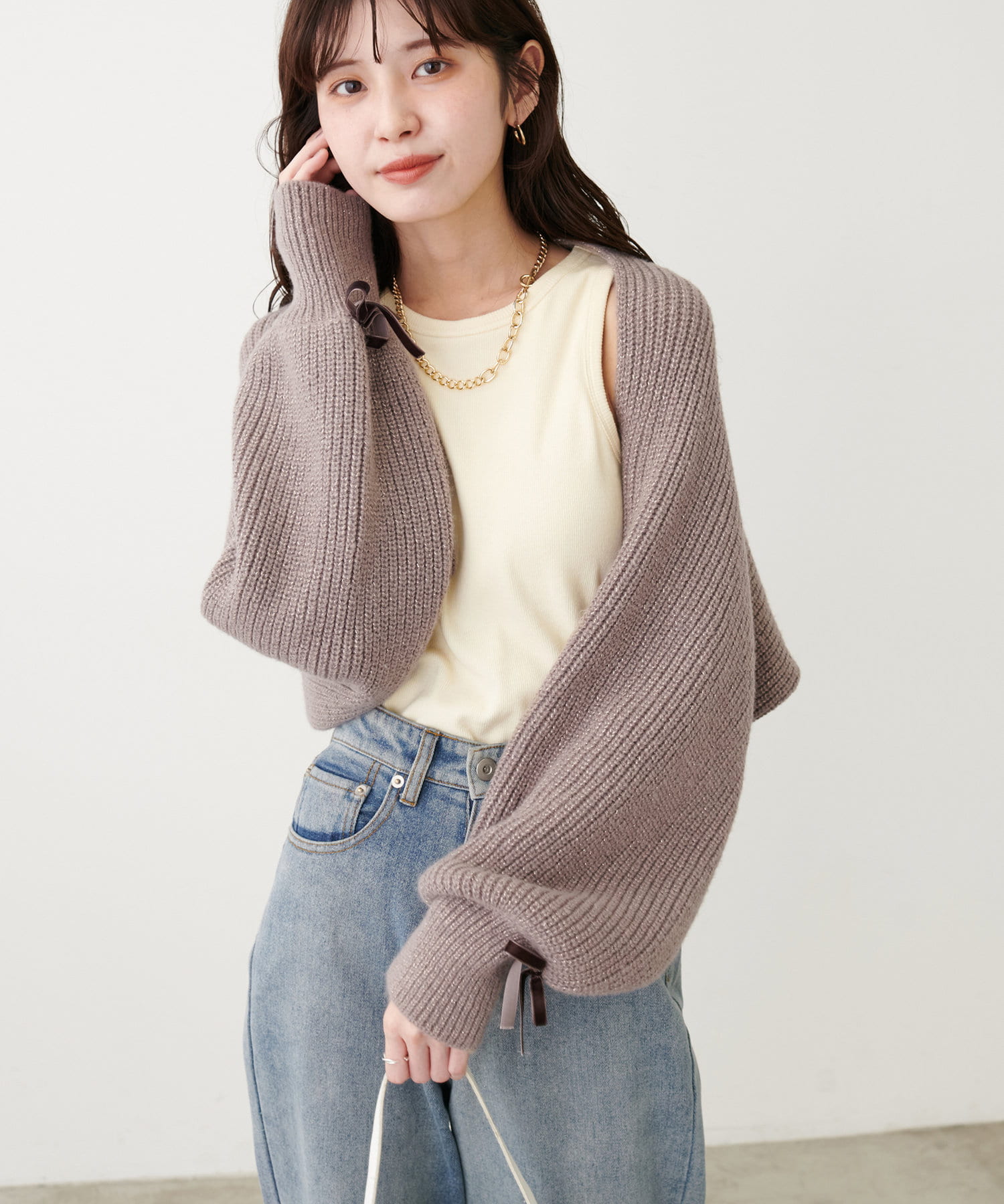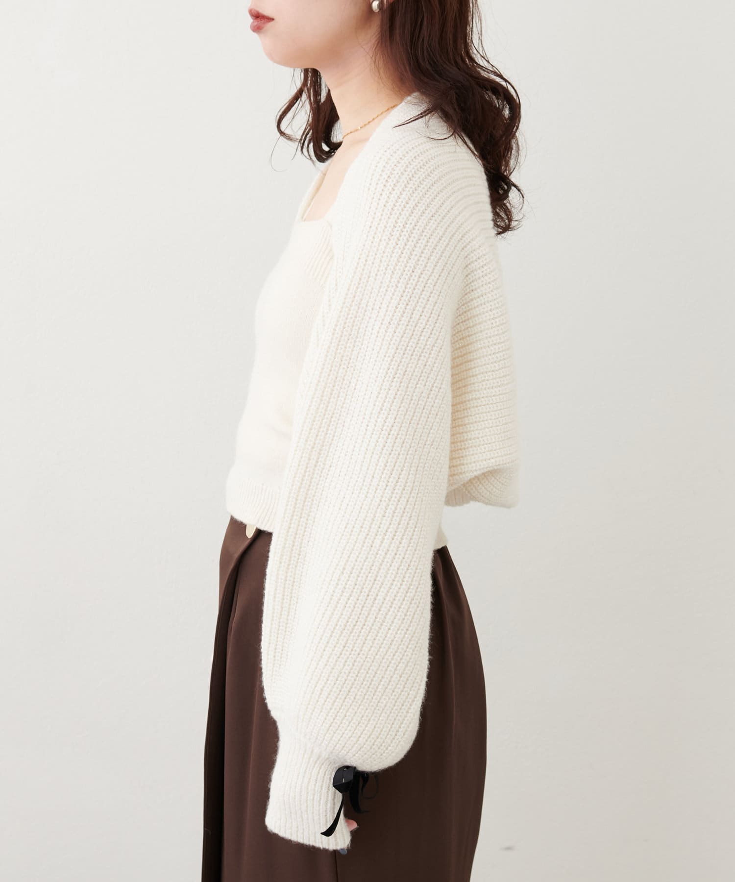 袖口リボンショートボレロ