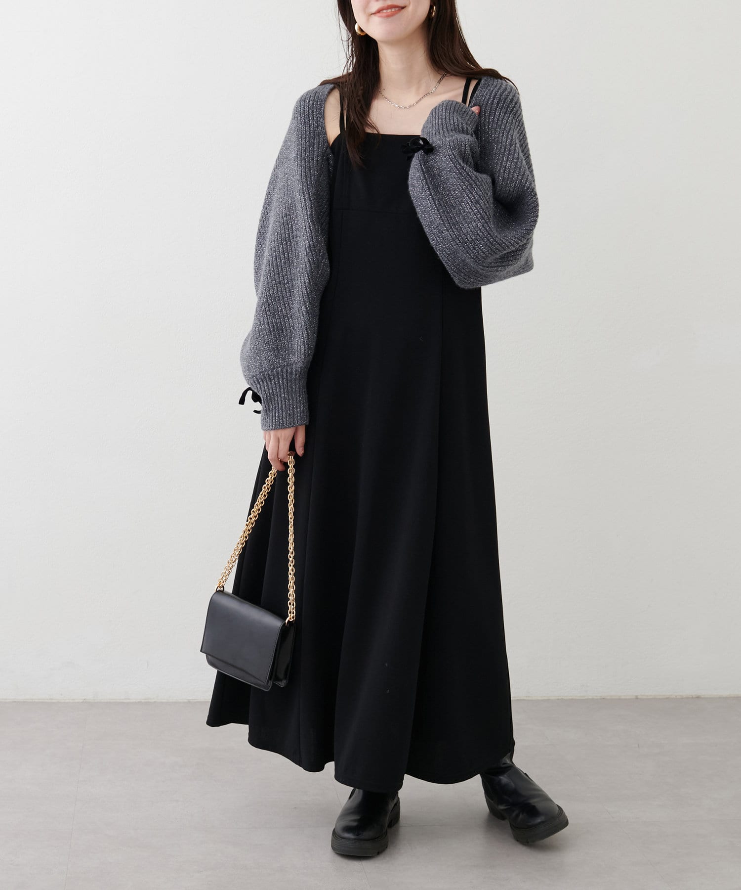 コンパクトな丈感ですっきり見えのボレロ。