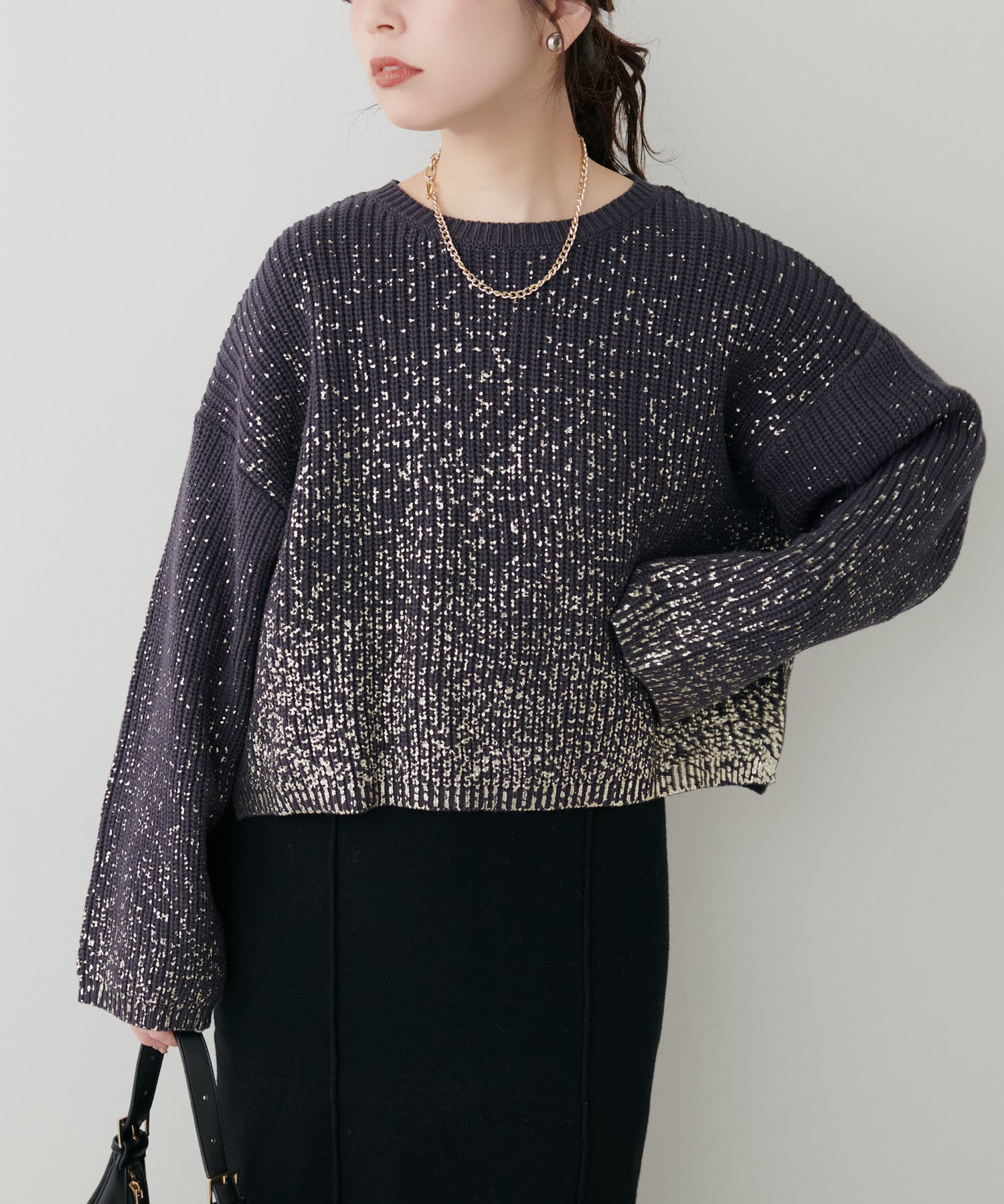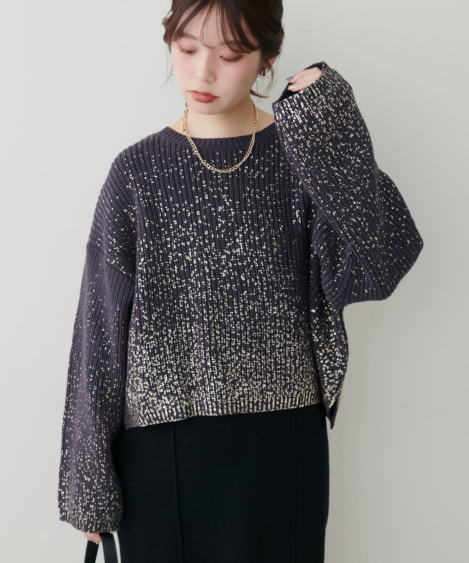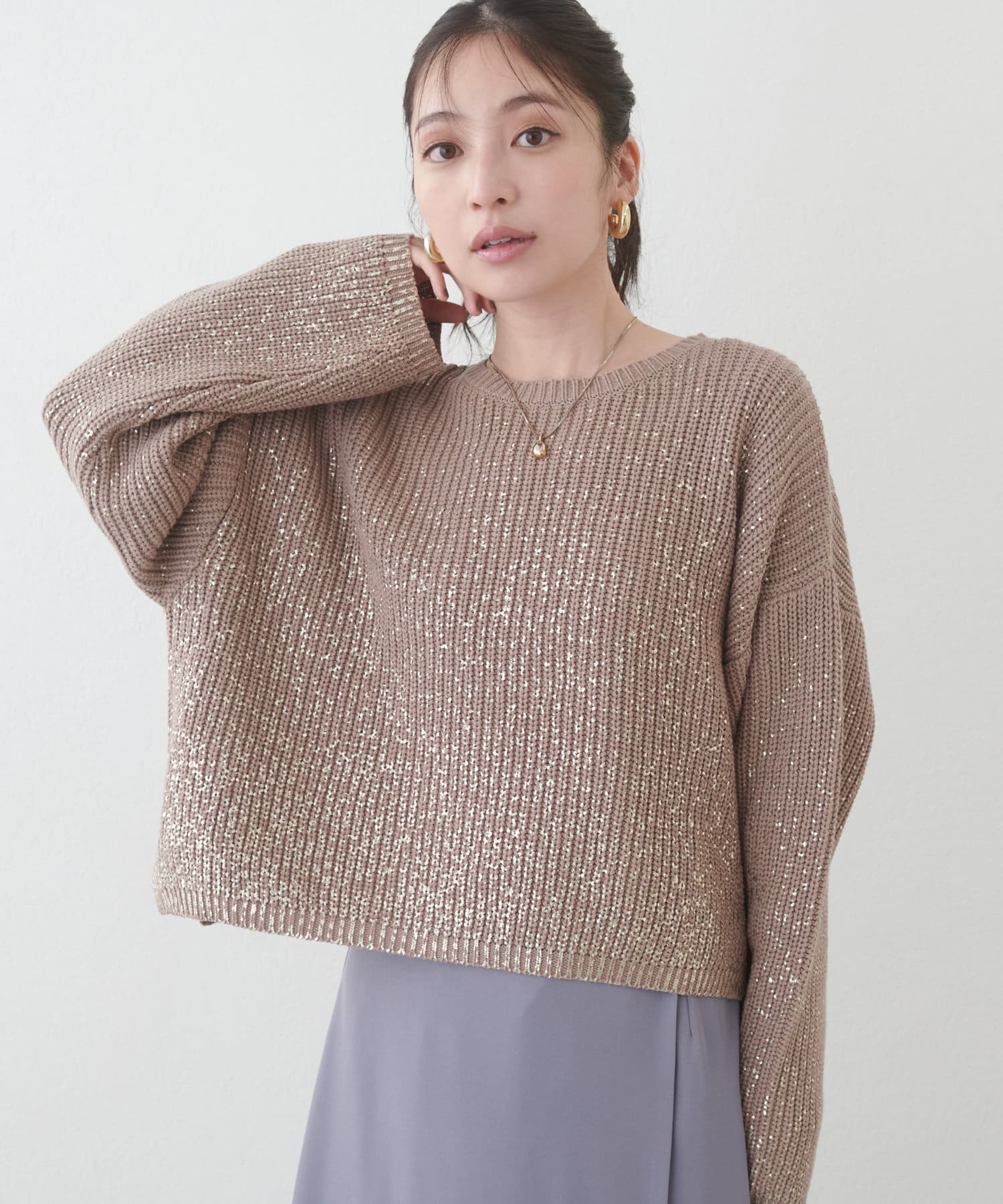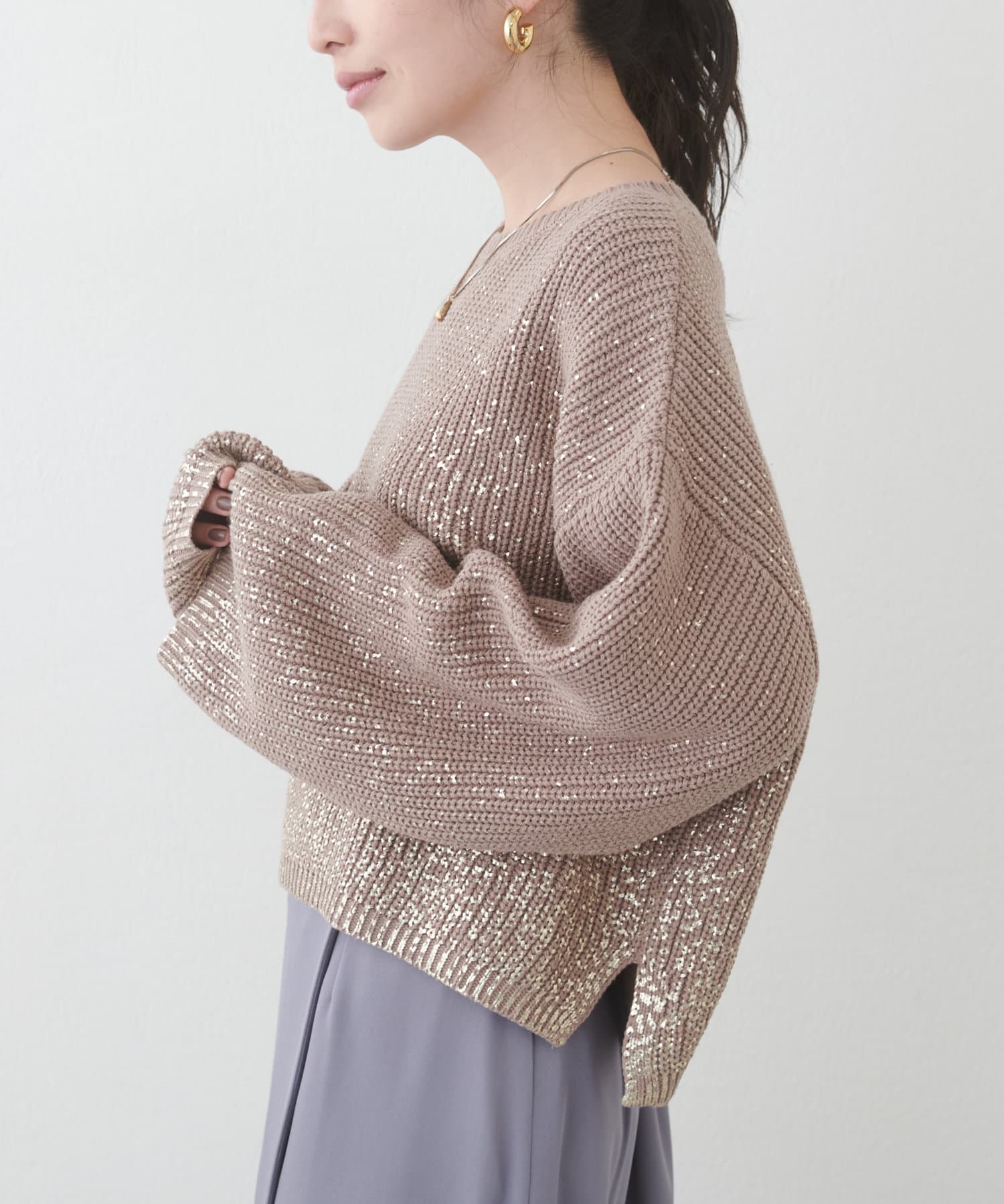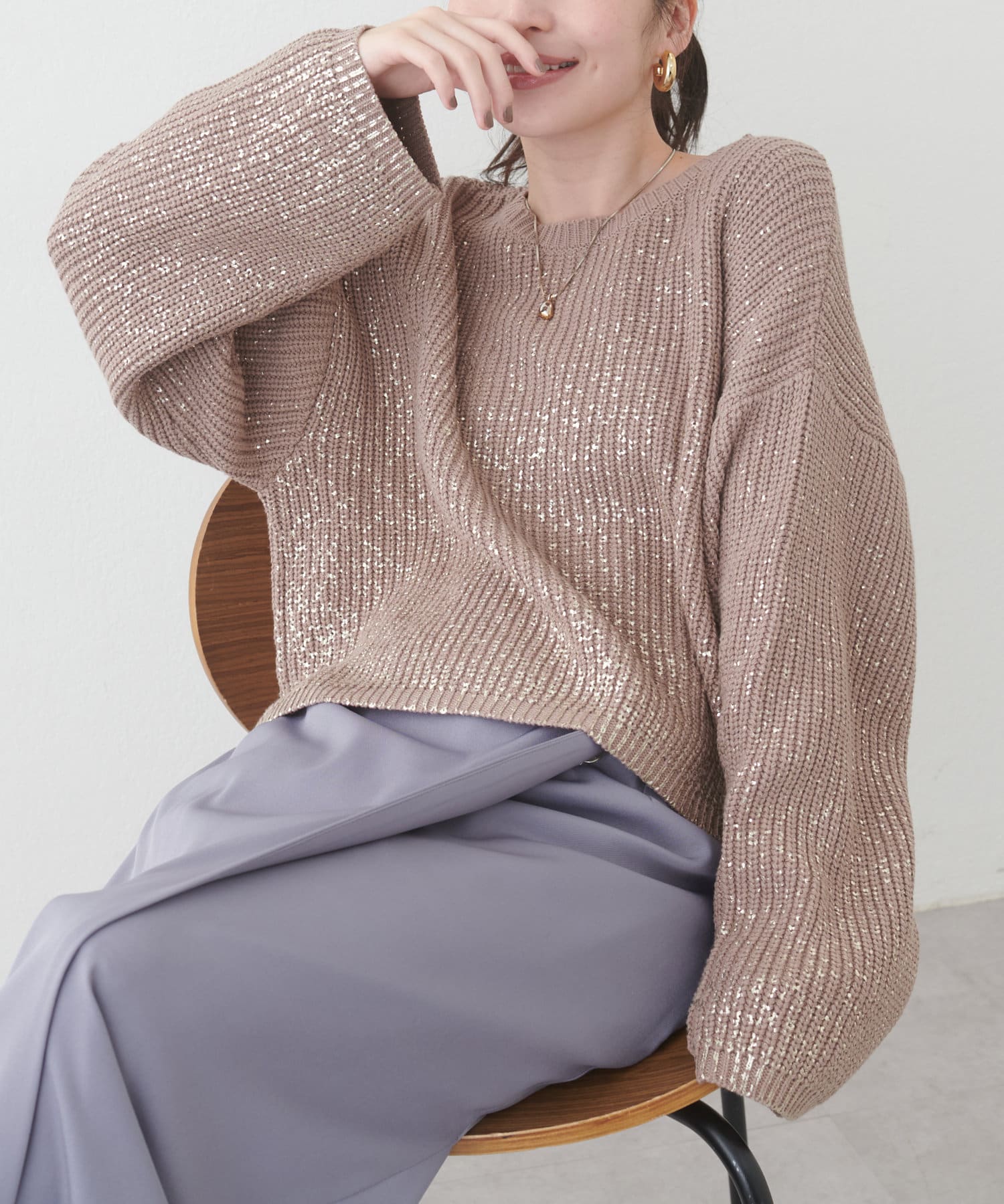 箔をプリントした高級感のある上品ニット。