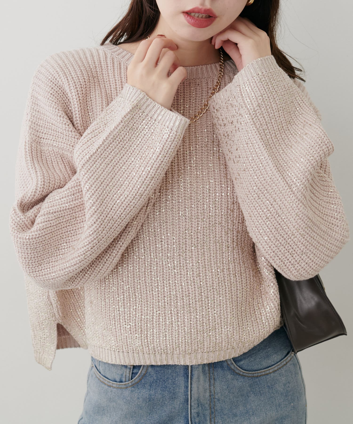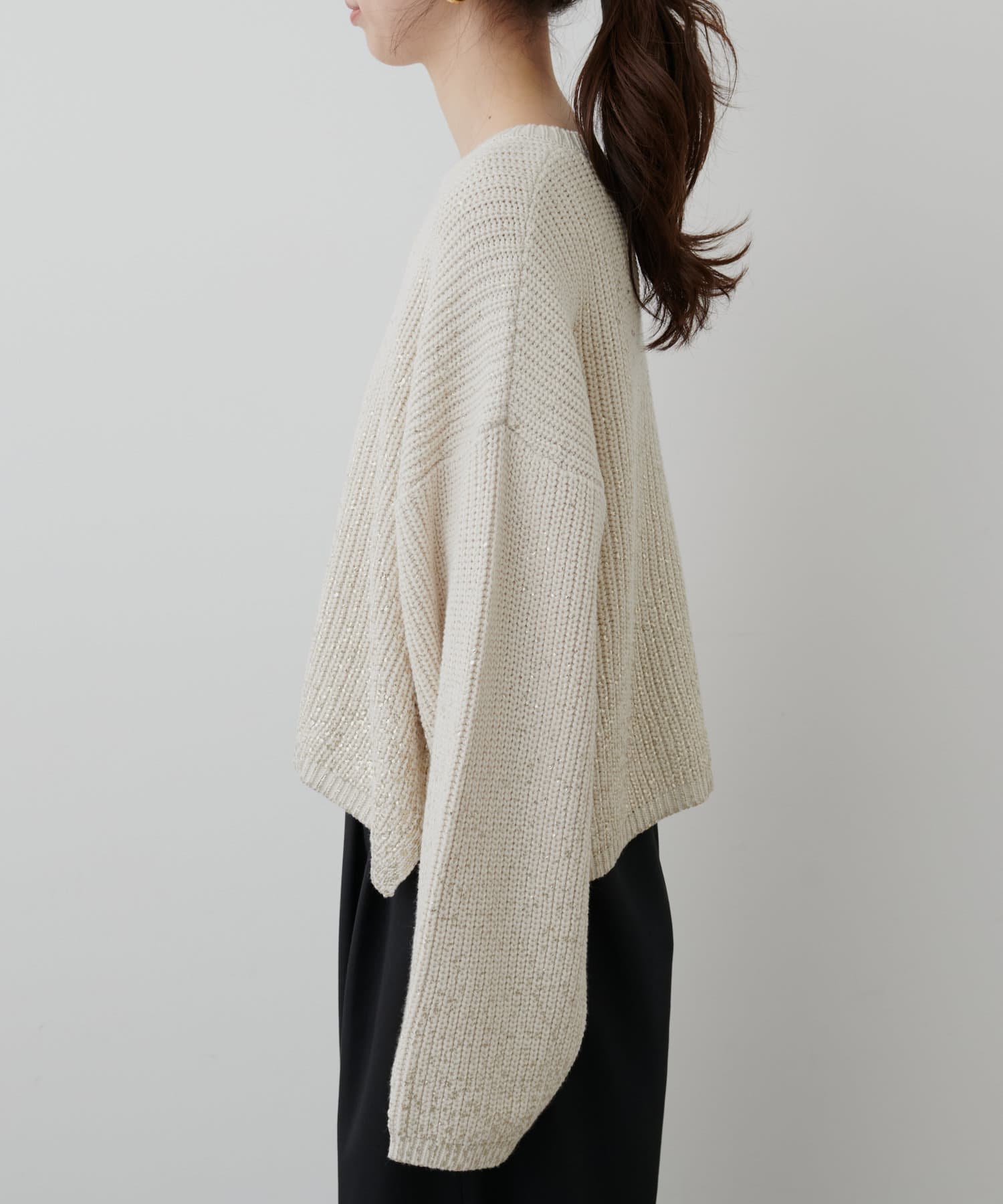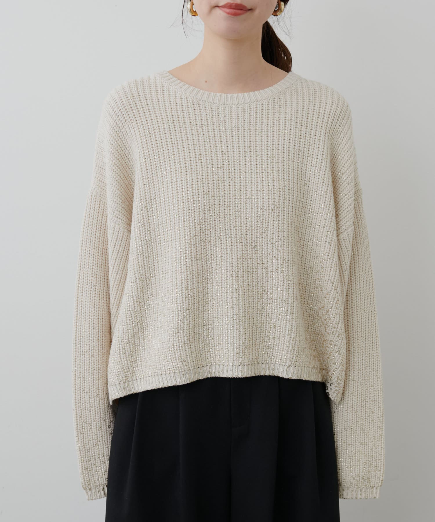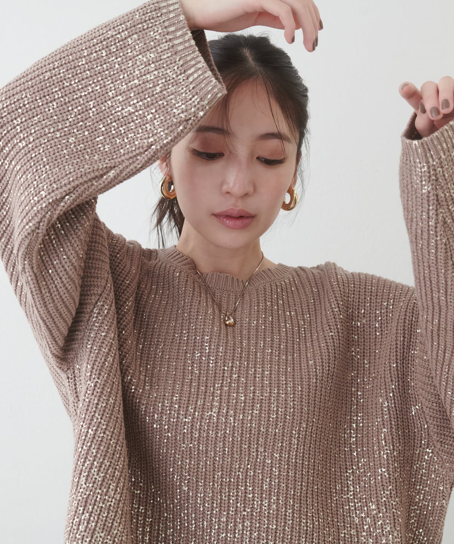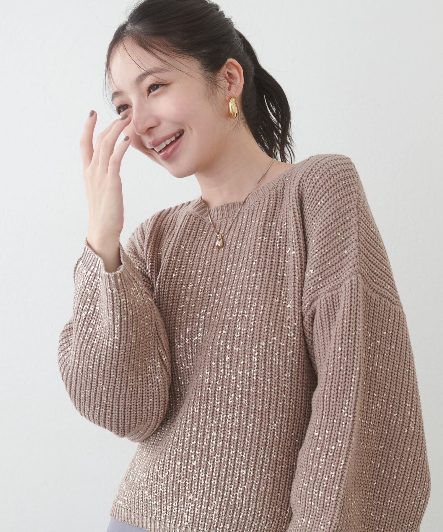 箔をプリントした高級感のある上品ニット。