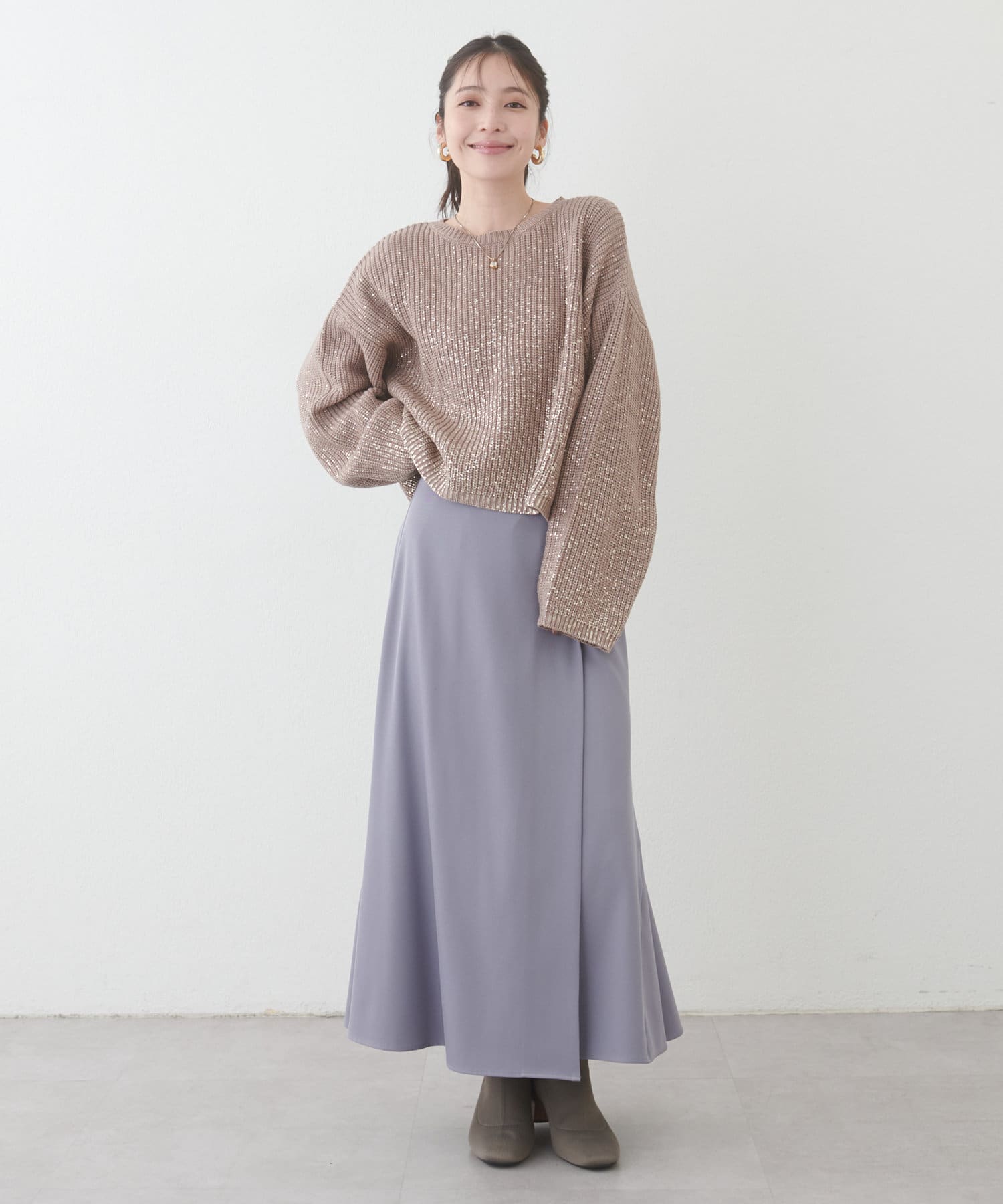 ワントーンコーデはまとまりがあり落ち着いた印象ながらも箔が際立ちコーデアクセントになります。