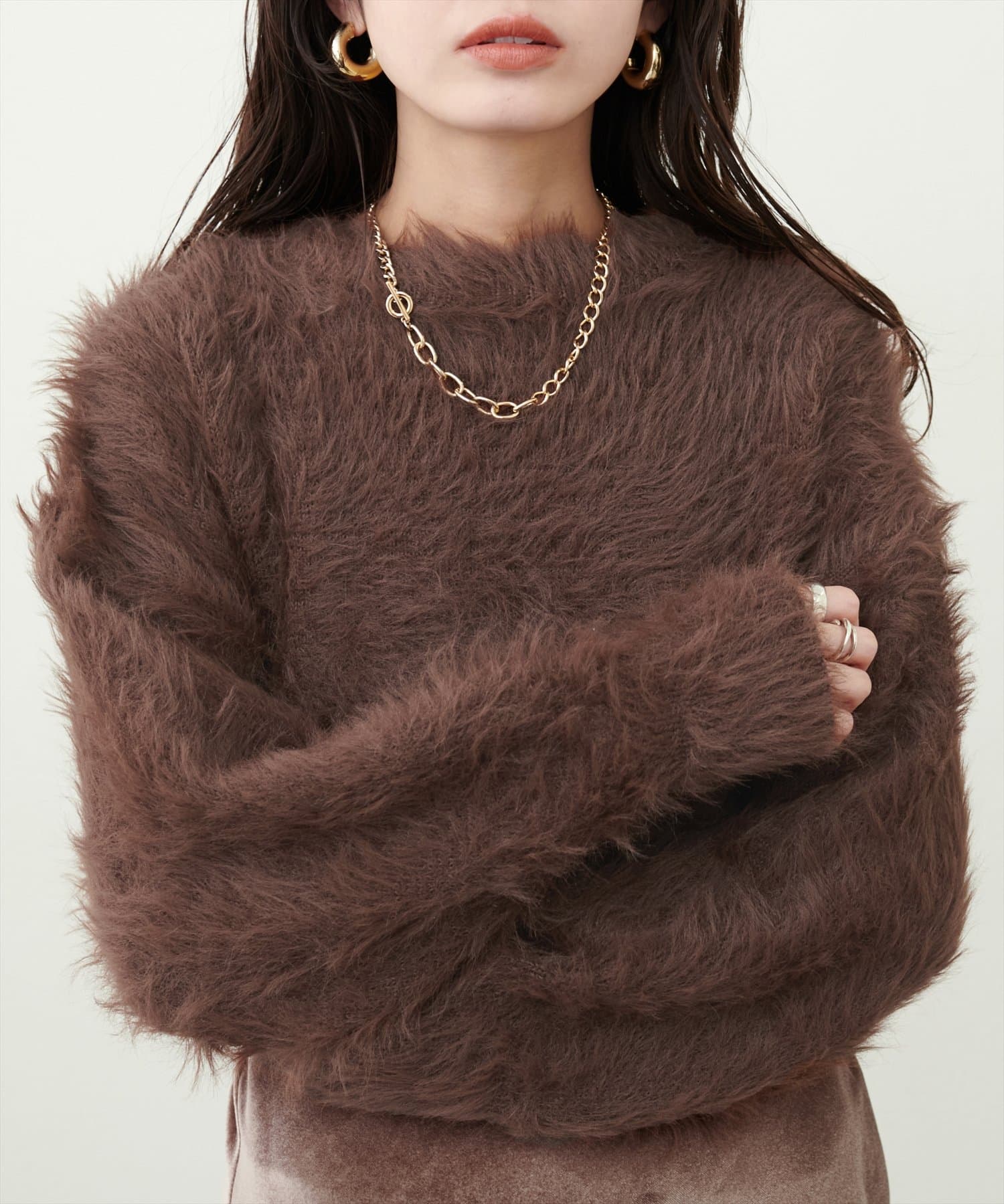 ロングフェザークルーネックニットプルオーバー