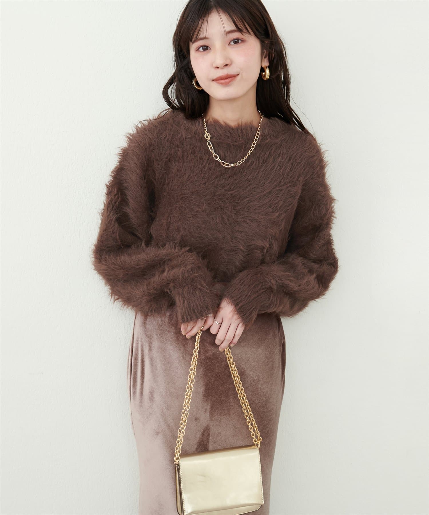 フレアシルエットでも短めの丈感なのでバランスよくお召しいただけます。