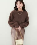 長い毛足とボーダーの配色が可愛いニットプルオーバー。