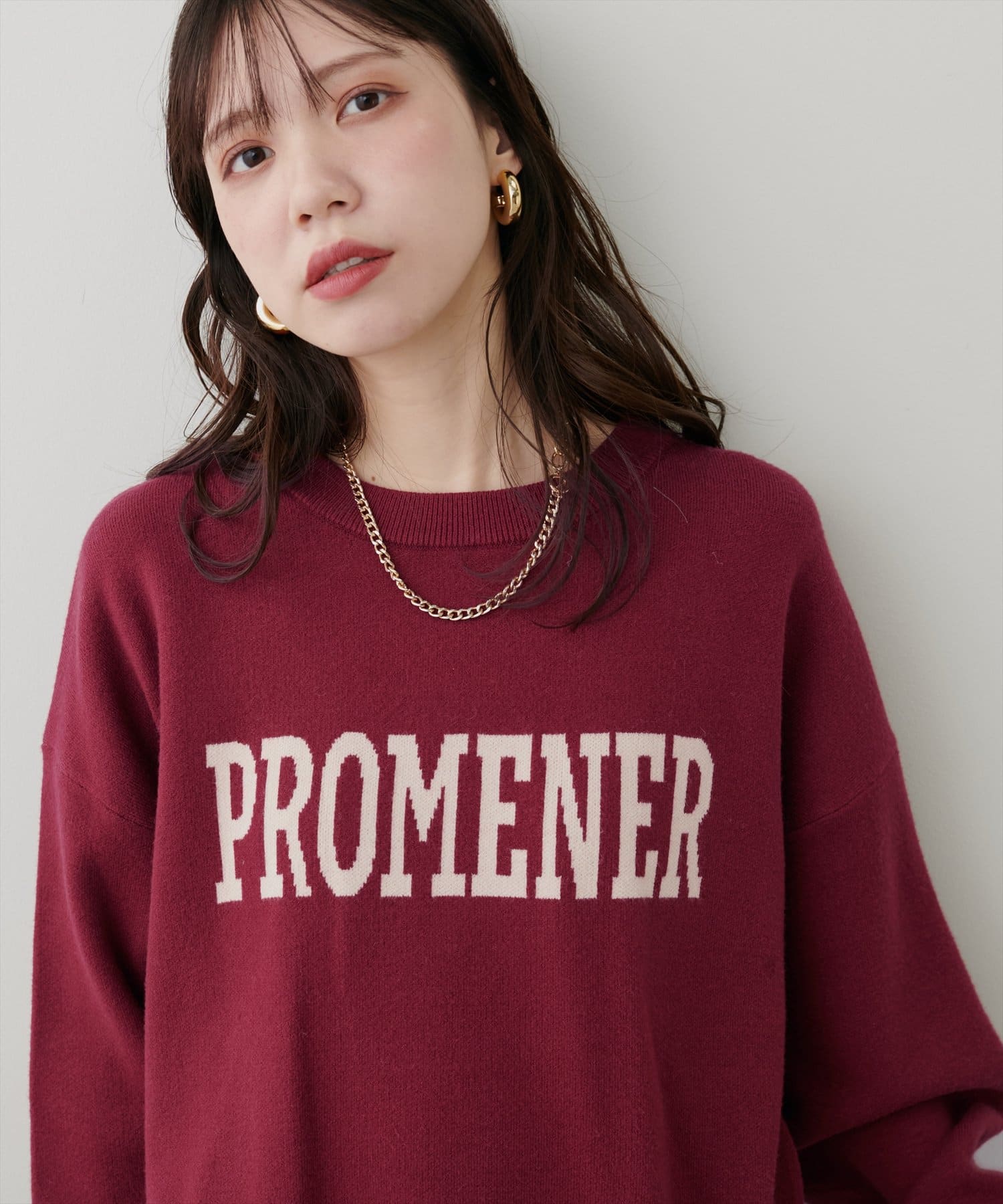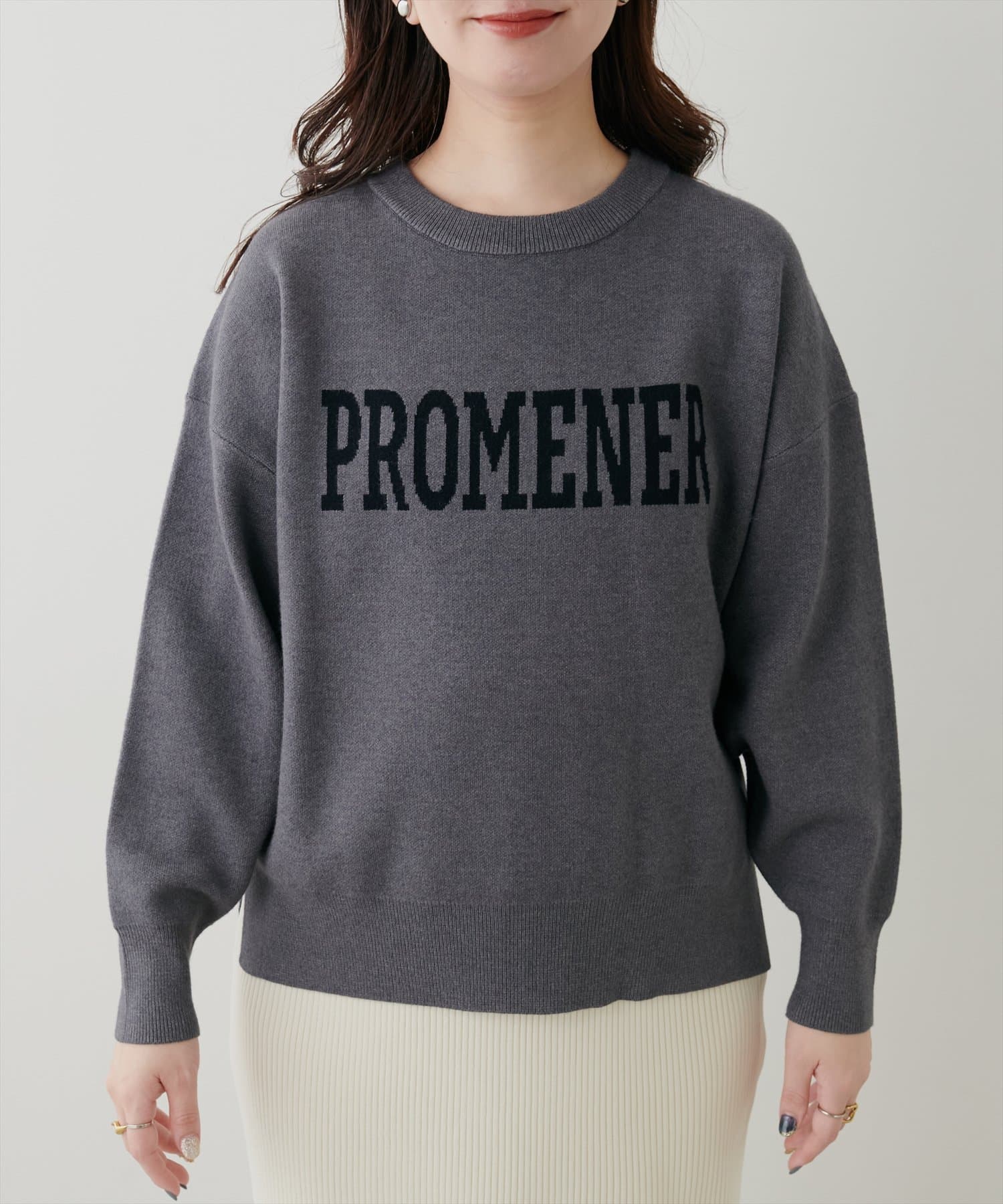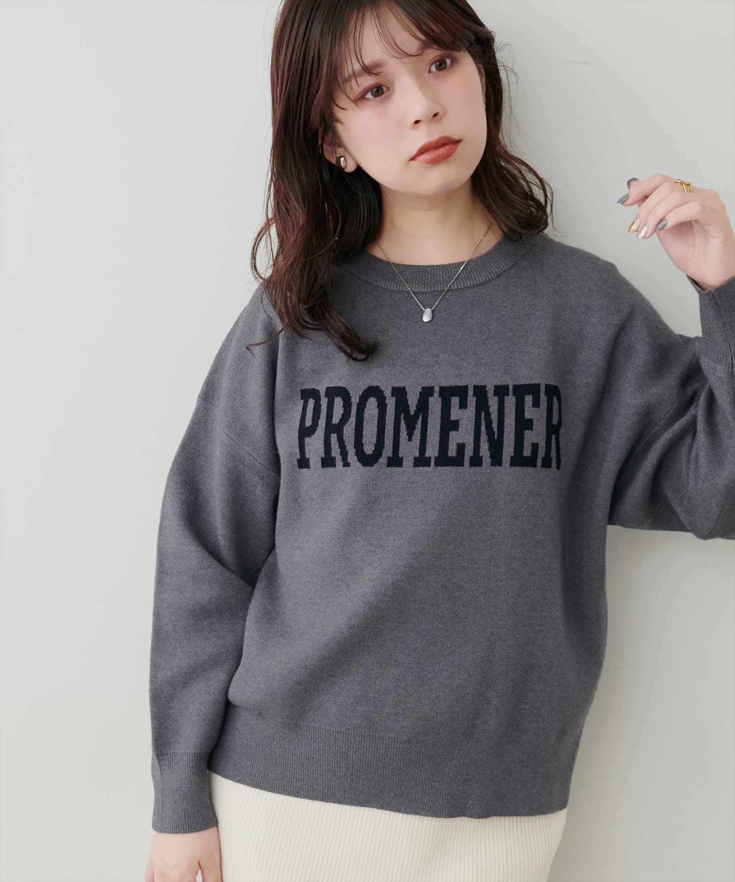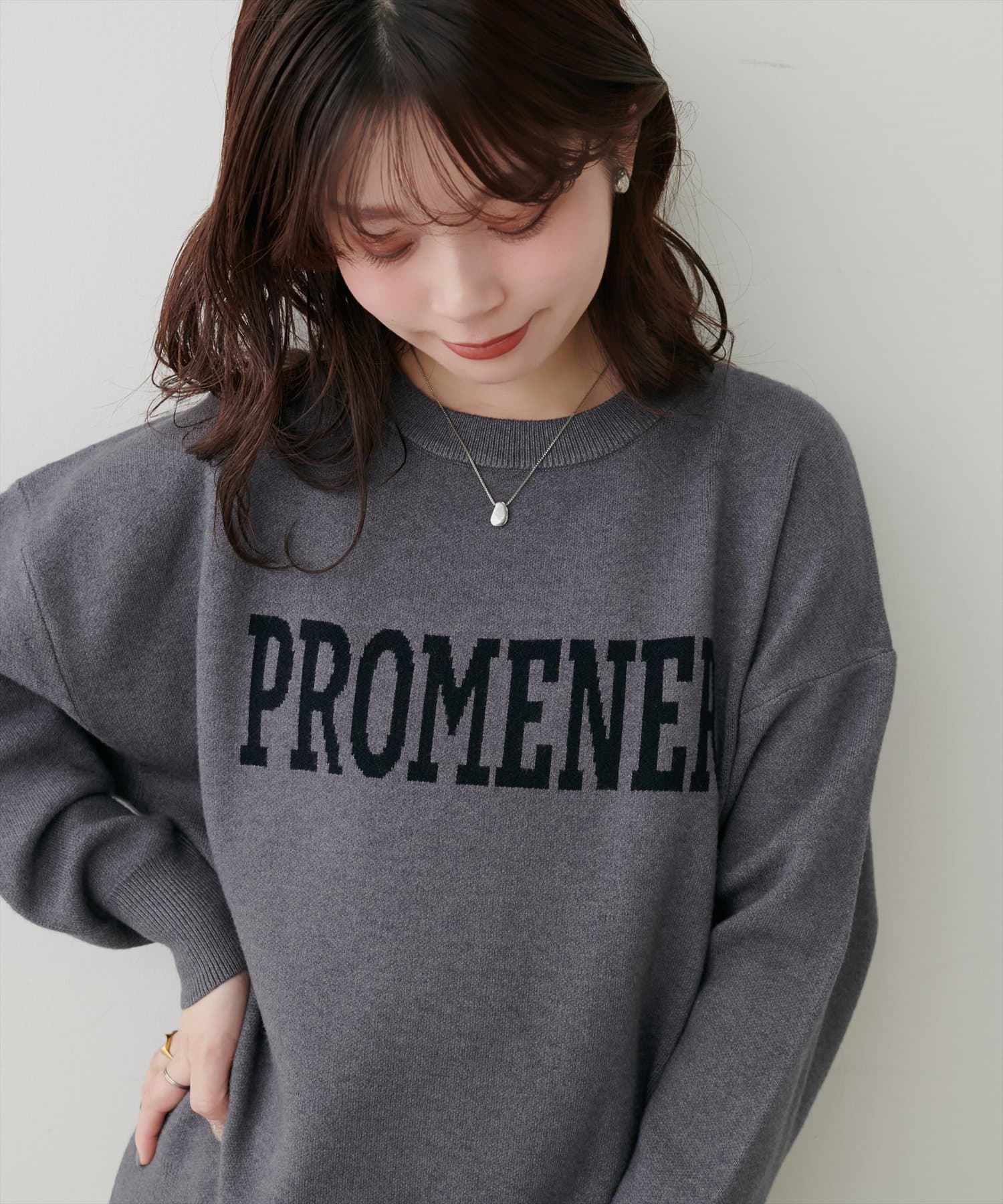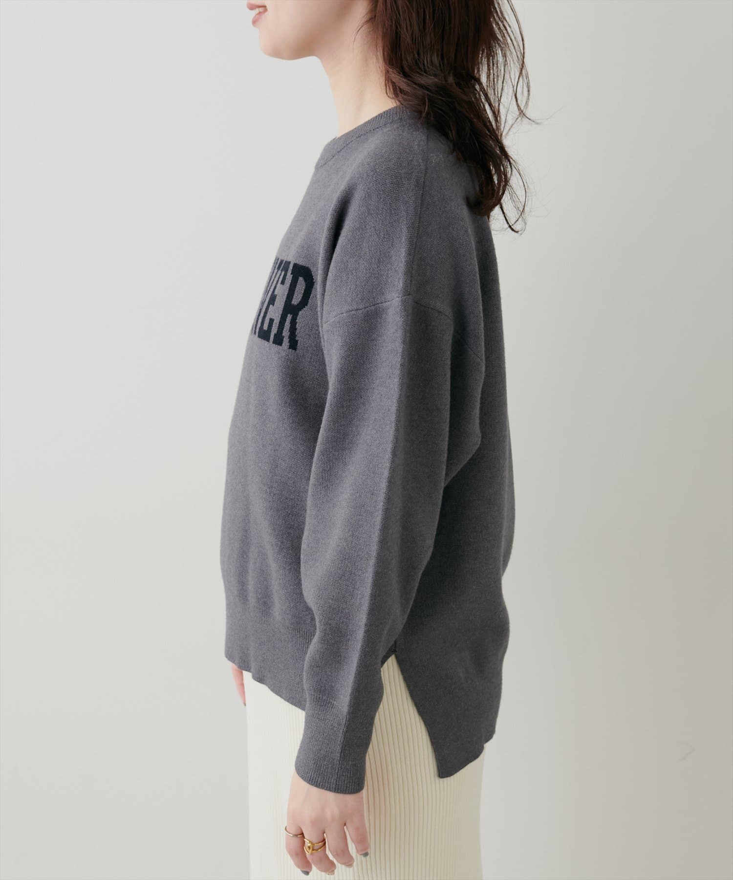 大人の甘めカジュアルにぴったりのロゴニット
