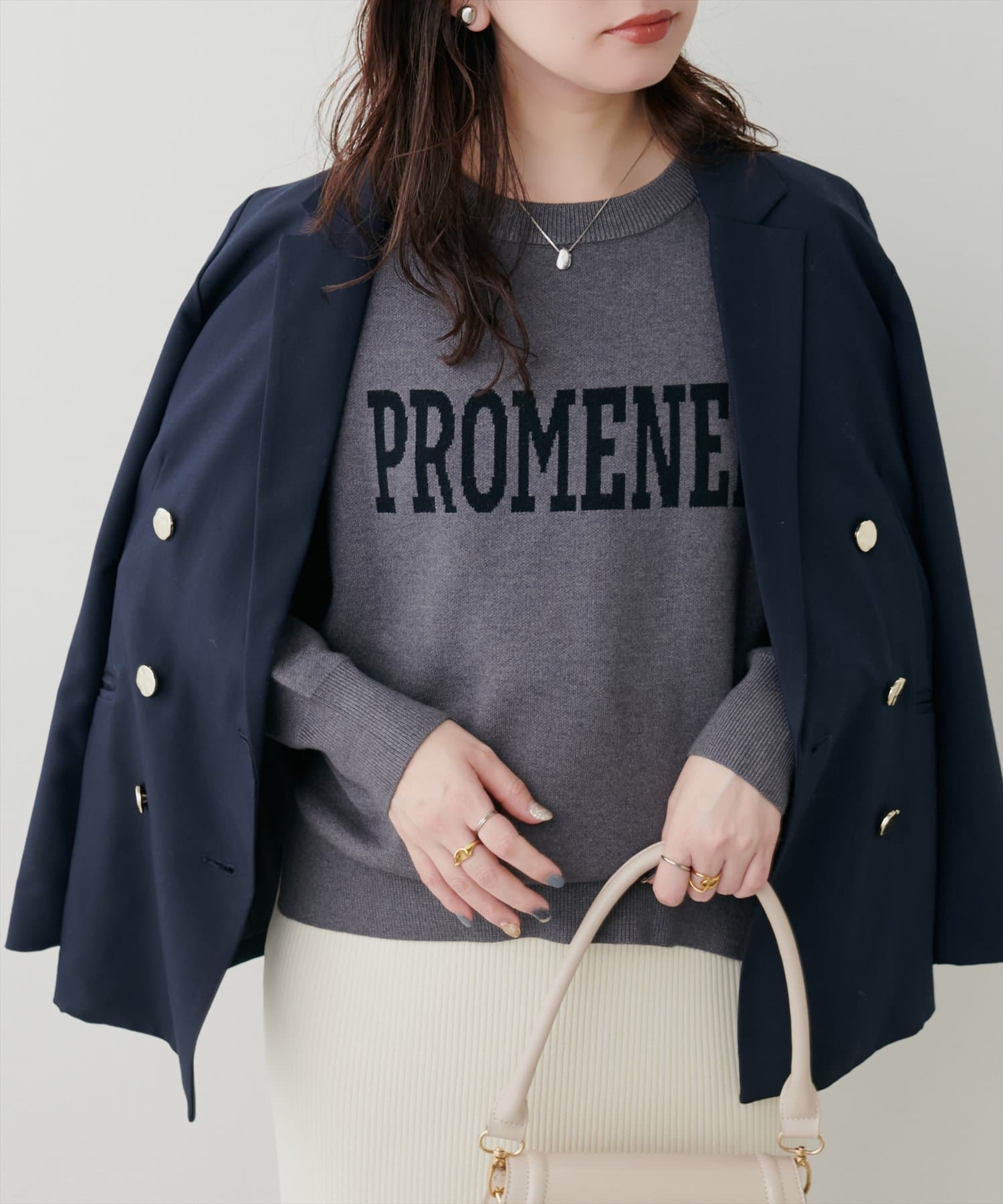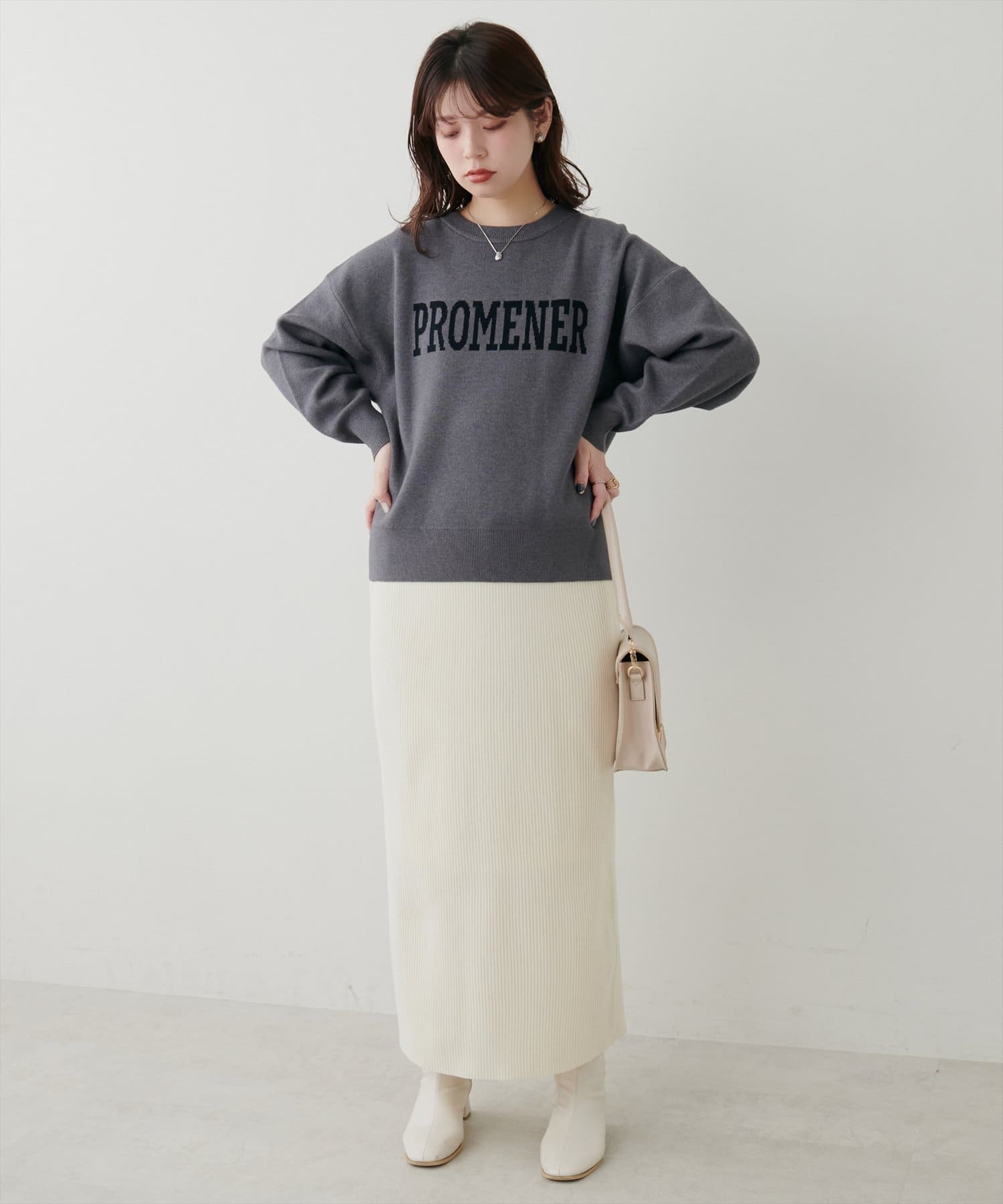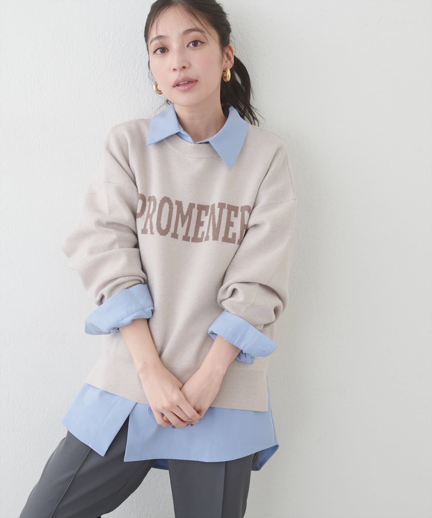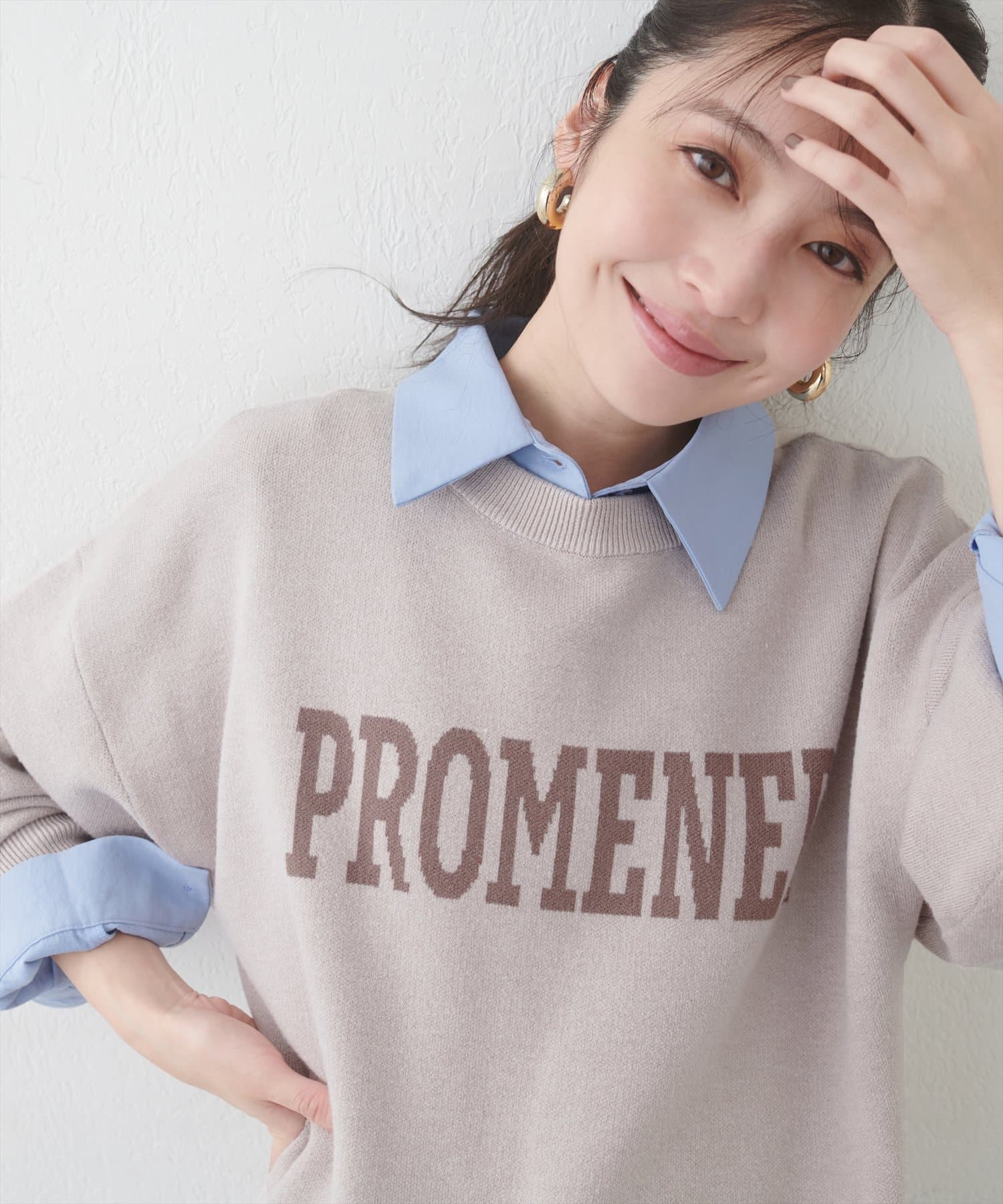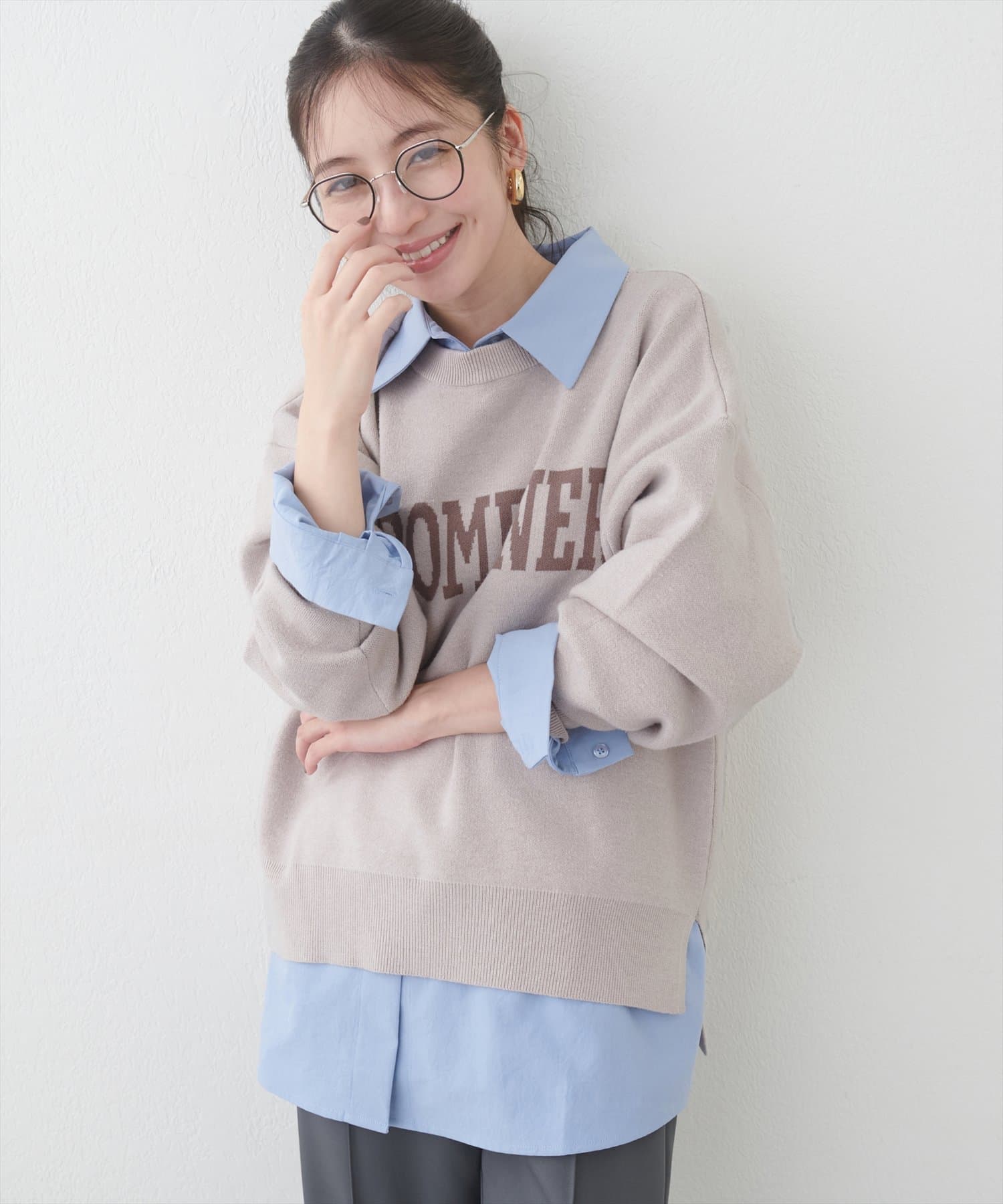 大人の甘めカジュアルにぴったりのロゴニット