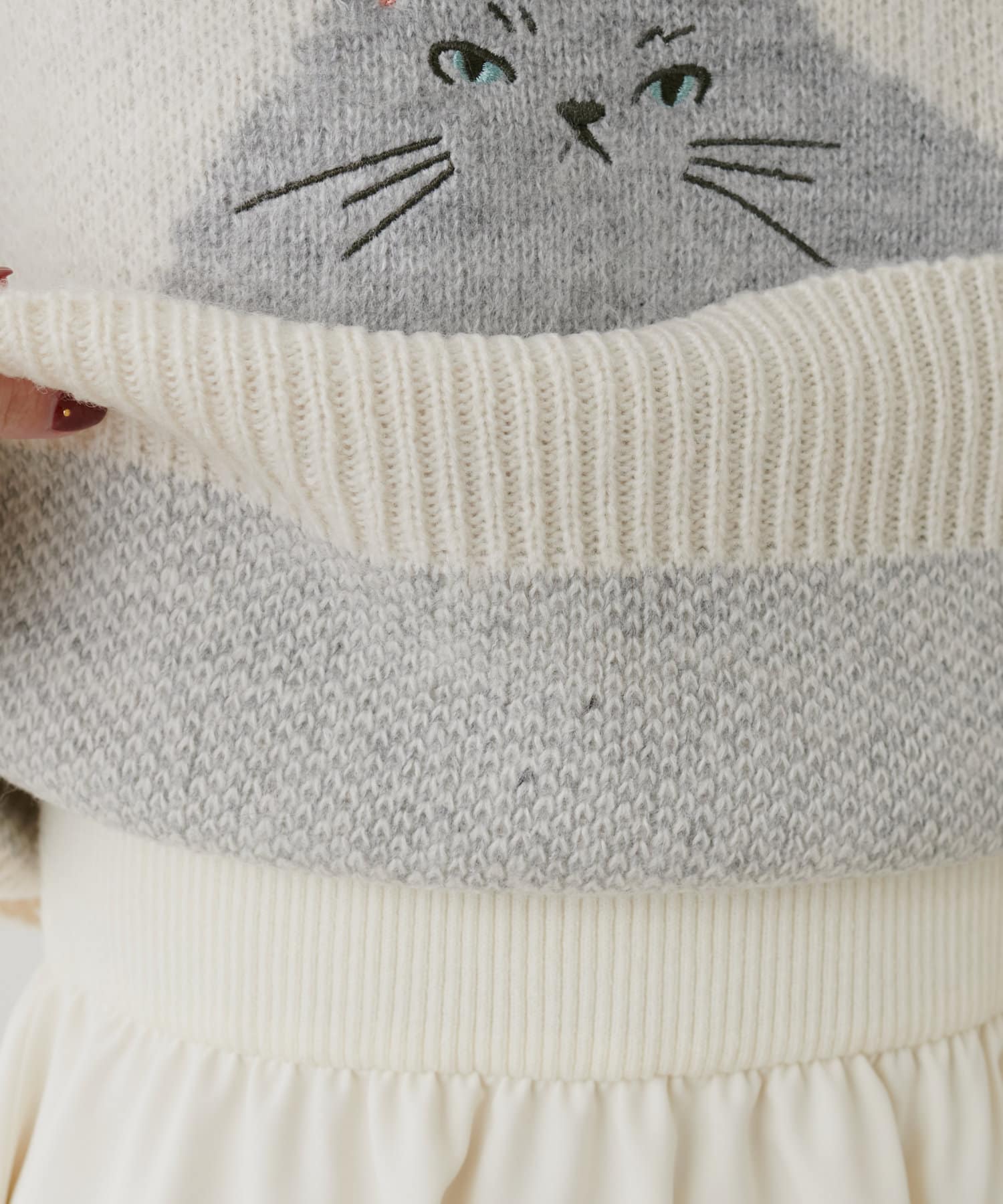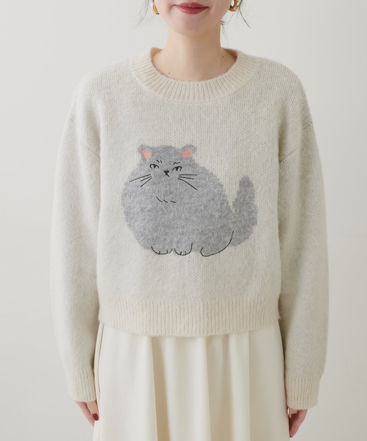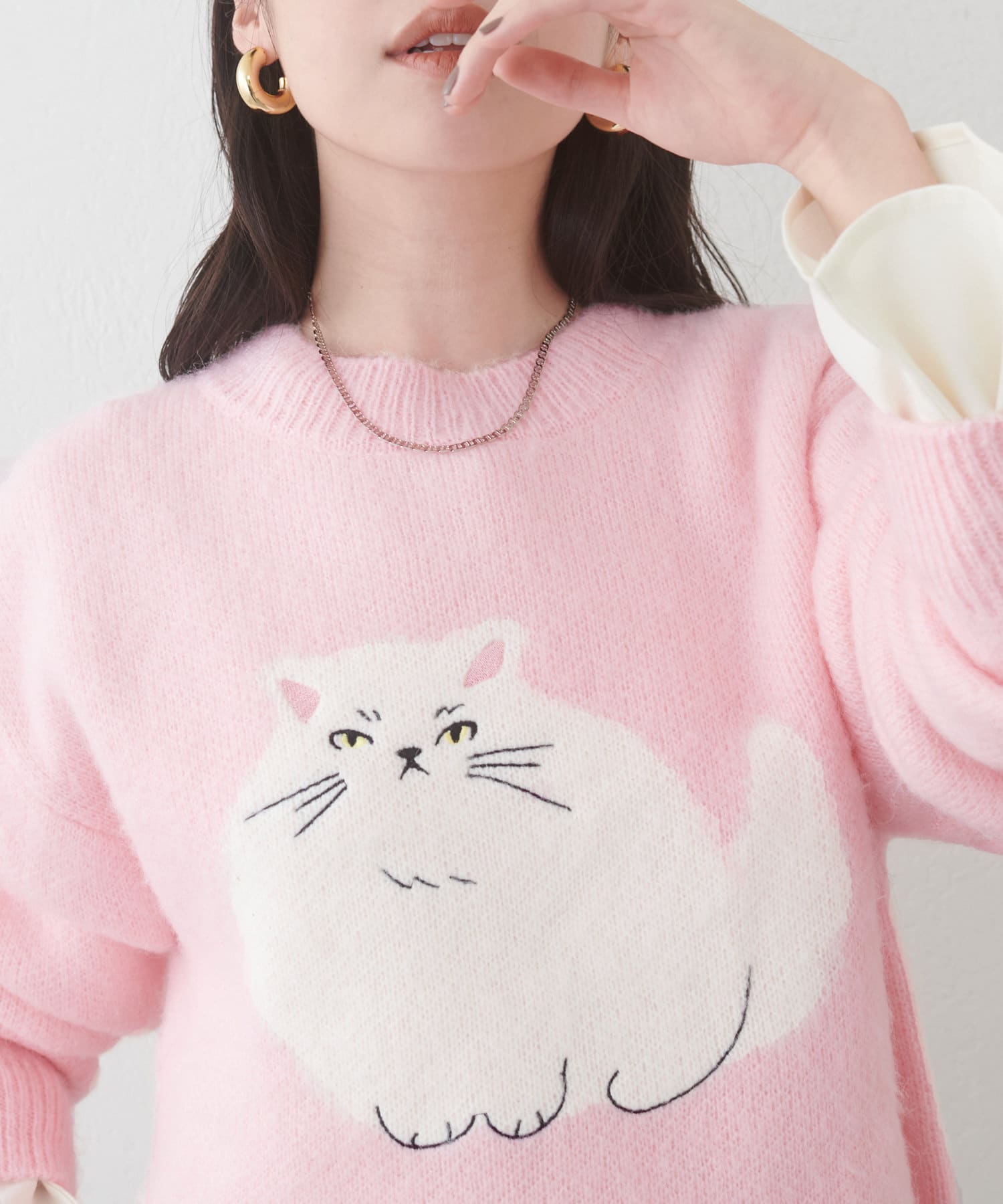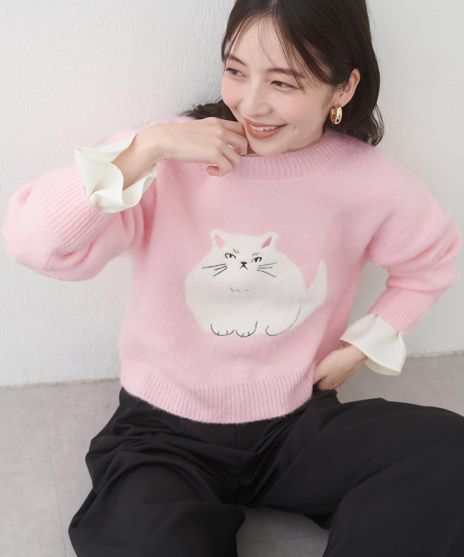 ねこモチーフが可愛いもちもちニット